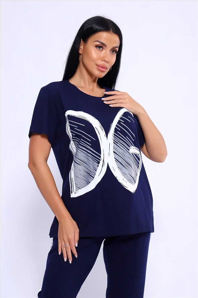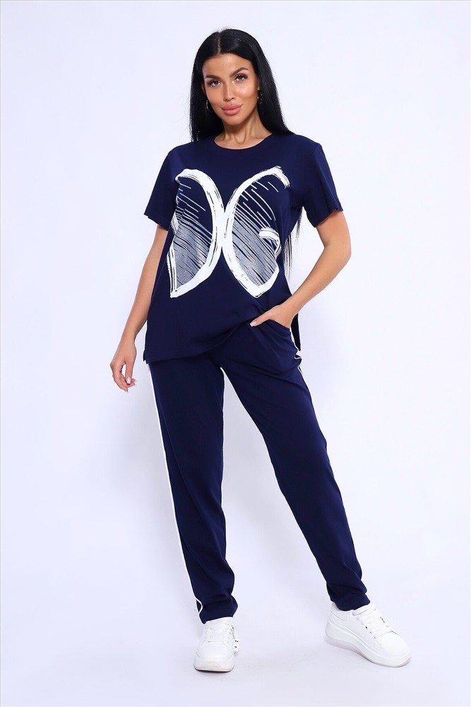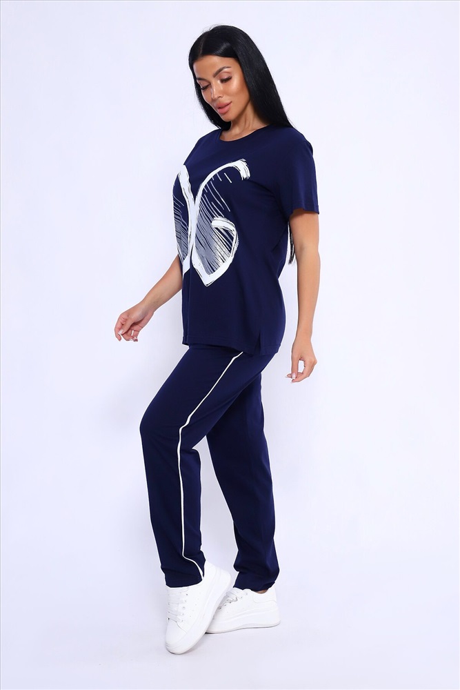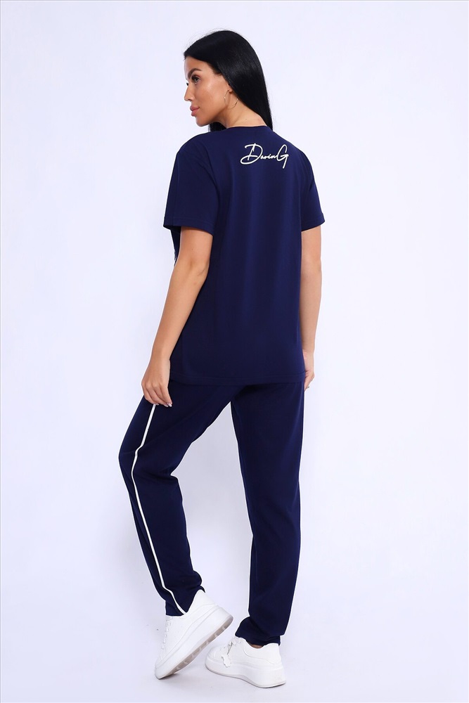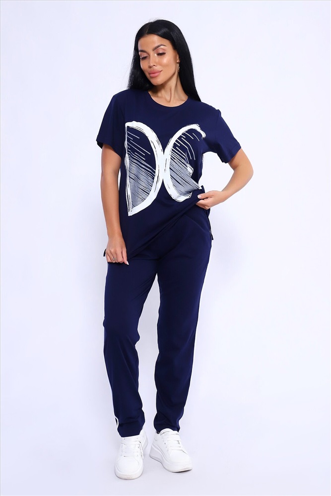 ID товара: 1026258 Состав: Хлопок 100% Сезон: Демисезон Основная ткань: Хлопок Стиль: Повседневный Вид ткани: Кулирка Страна бренда: Россия Страна производства: Россия Классический и удобный трикотажный костюм с брюками из 100%-го хлопка! В комплекте костюма представлены кофта свободного кроя и брюки c тонкими лампасами универсальной посадки. Кофта украшена ярким принтом, состоящим из крупных латинских букв, контрастирующими с общим фоном изделия. Кроме того, на спинке имеется неброский принт. Костюм - идеальный вариант домашней одежды для женщин, также прекрасно подойдет и для повседневной носки. Комментарии к товару