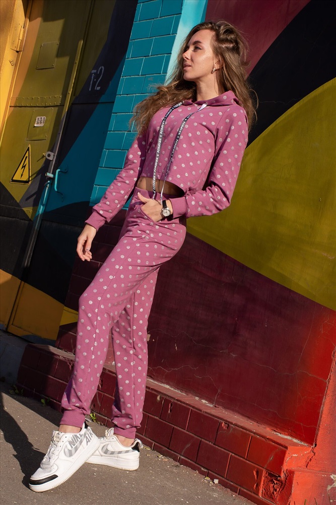 Молодежный костюм из футера толстовка + брюки. Толстовка укороченная, с капюшоном с длинными рукавами на манжетах из кашкорсе. Брюки с карманами, пояс и манжеты из кашкорсе