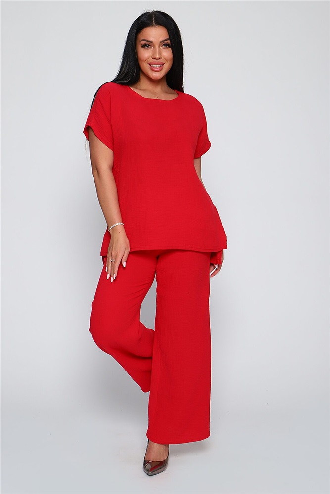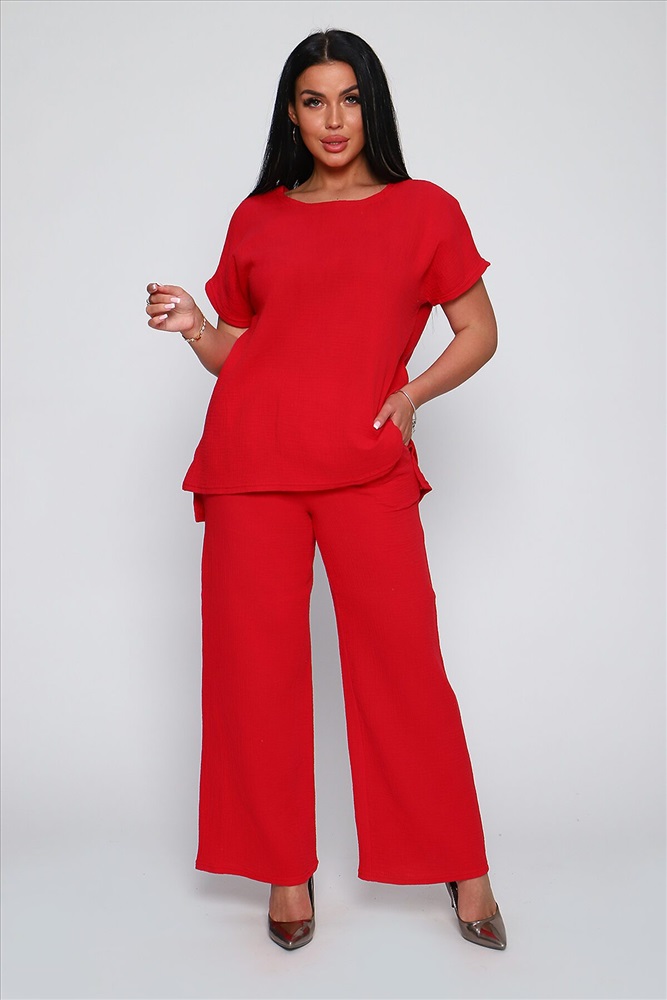 ID товара: 894182 Состав: Хлопок 100% Сезон: Весна/Лето Длина: Средняя Фасон: Свободный крой Рукав: короткие Крой брючин: Прямой Тип карманов: В боковом шве Основная ткань: Хлопок Стиль: Повседневный Вид ткани: Муслин Страна бренда: Россия Страна производства: Россия Костюм брючный из качественной, гипоаллергенной, дышащей ткани муслин двухслойный. Стильный комплект состоит из футболки и брюк - палаццо. Футболка в стиле оверсайз, горловина лодочка, спущенная пройма, цельнокройный короткий рукав, спинка чуть длиннее переда, по бокам небольшие разрезы. Брюки - палаццо с боковыми карманами, удобная посадка, широкий на резинке распошитый пояс. Комфортный, летний костюм необходимая вещь в женском гардеробе, подойдет на любую фигуру, скроет недостатки и подчеркнёт достоинства фигуры. Изделие из однотонной, хлопковой ткани муслин двухслойный не требует особого ухода, не дает усадку, не скатывается и не теряет форму после стирки. Костюм представлен в широкой палитре цветов, что позволит подобрать вещь на любой вкус и стиль, а также непременно подчеркнет женственность и романтичность вашего образа. Комментарии к товару
