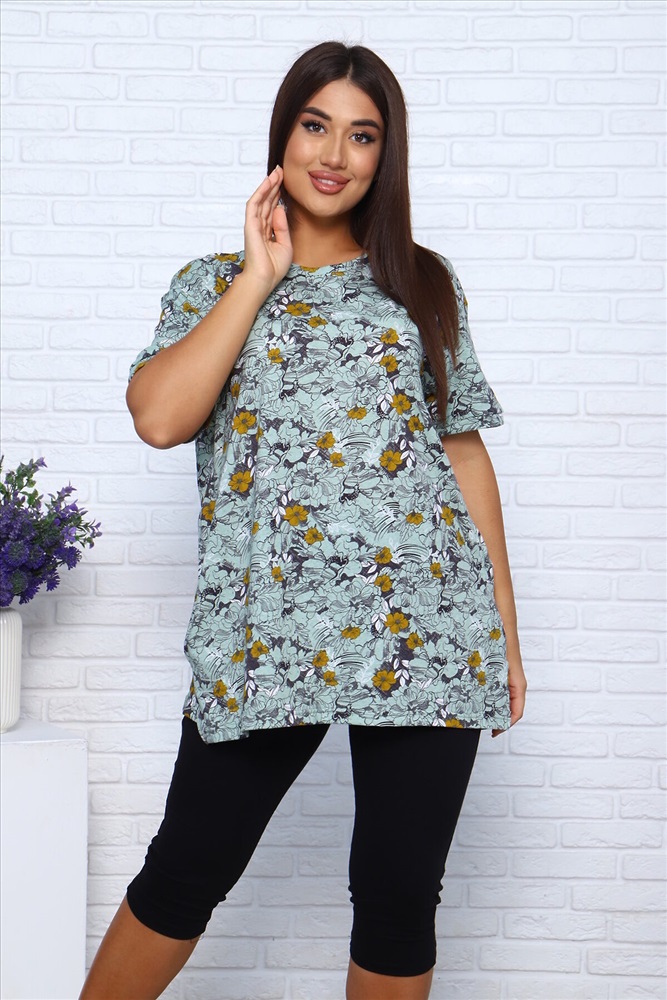 ID товара: 941467 Состав: Верх- 100% Хлопок; низ- 95% Хлопок; 5% Лайкра Сезон: Демисезон Длина: Средняя Фасон: Свободный крой Рукав: короткие Крой брючин: Облегающий Основная ткань: Хлопок Стиль: Повседневный Вид ткани: Кулирка Страна бренда: Россия Страна производства: Россия Костюм женский. Выполнен из трикотажного полотна кулирка Бриджи кулирка с лайкрой.Блуза свободного силуэта, с карманами по бокам . Бриджи выполнены из трикотажного полотна кулирка с лайкрой. Комментарии к товару