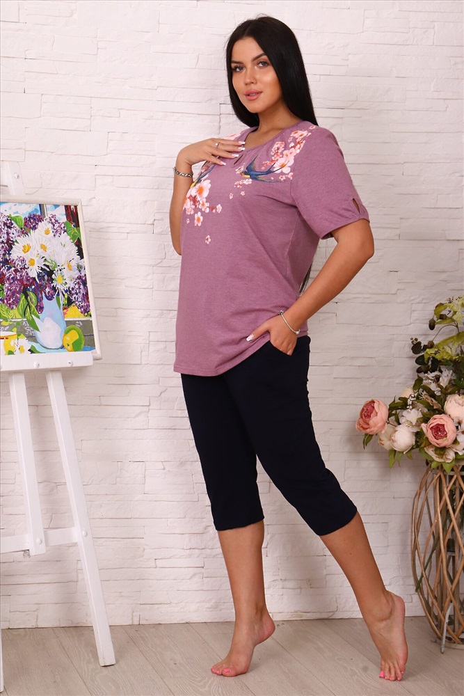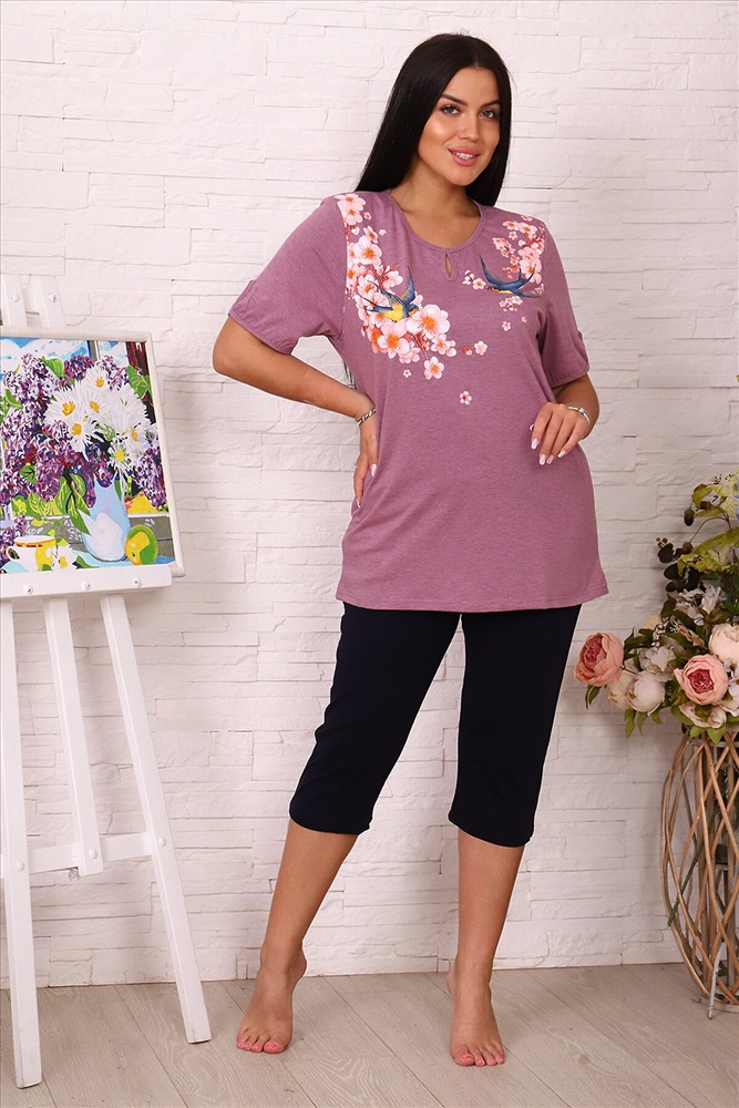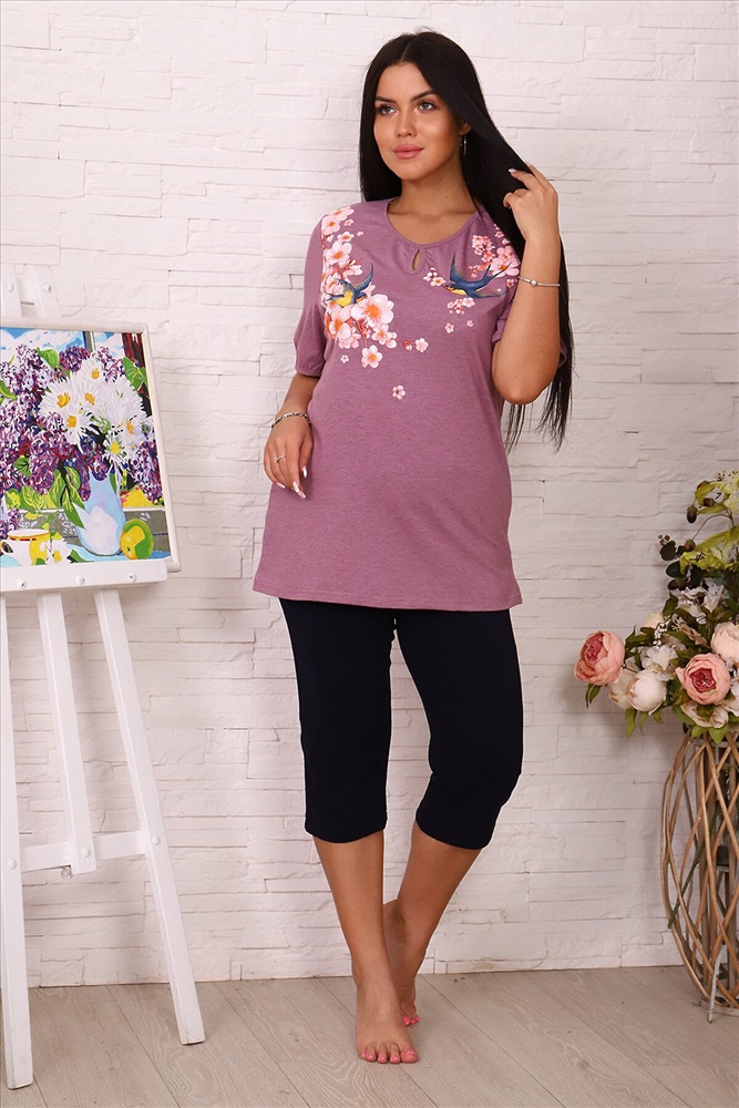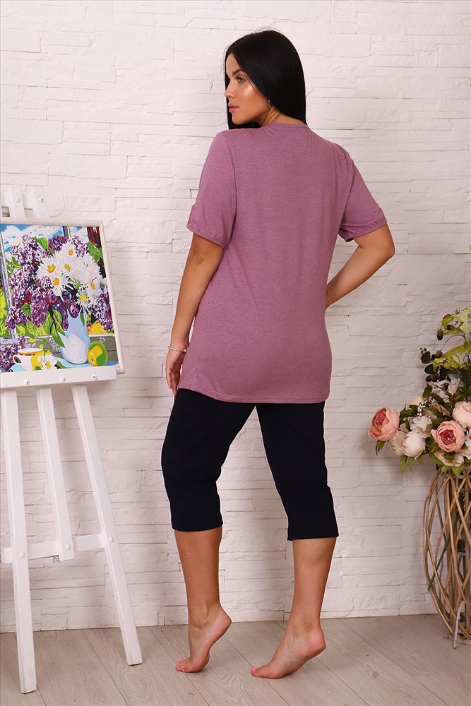 Страна производства: Россия Домашний костюм с бриджами. Блуза прямого силуэта с круглым вырезом горловина и рукава в виде капельки. Бриджи ниже колена с боковыми карманами. Костюм правильной посадки, комфортный в эксплуатации.