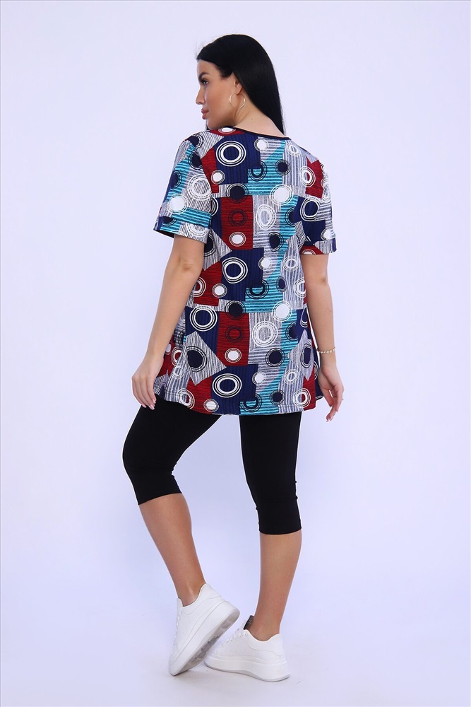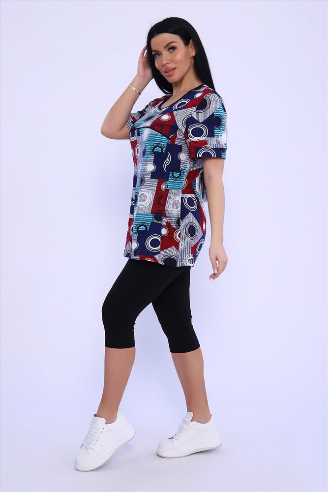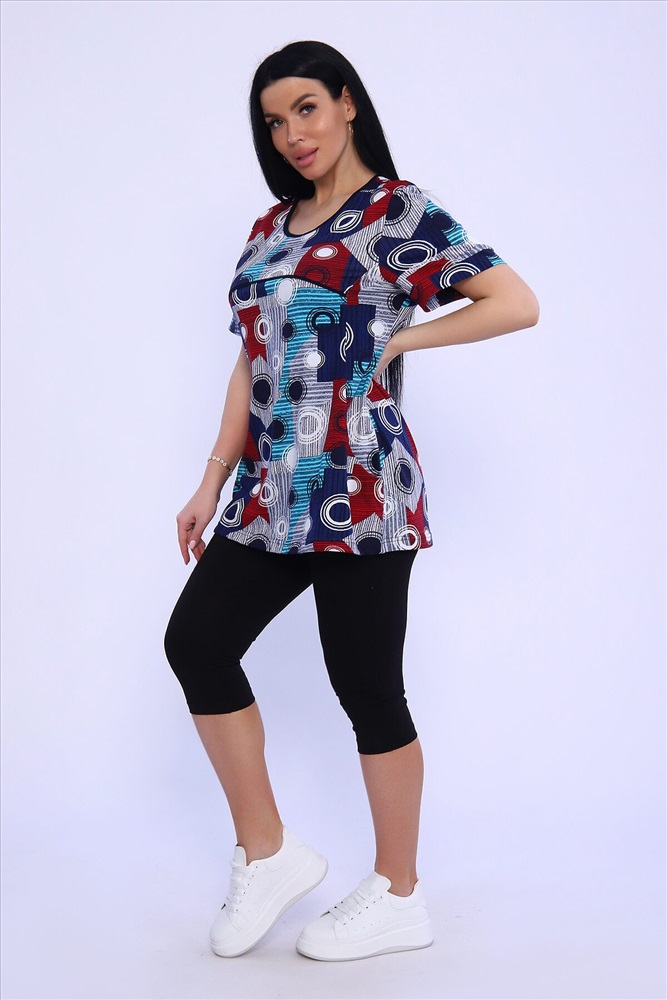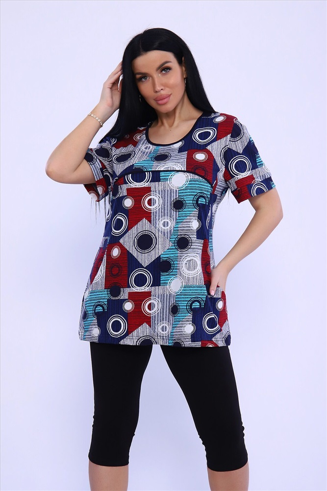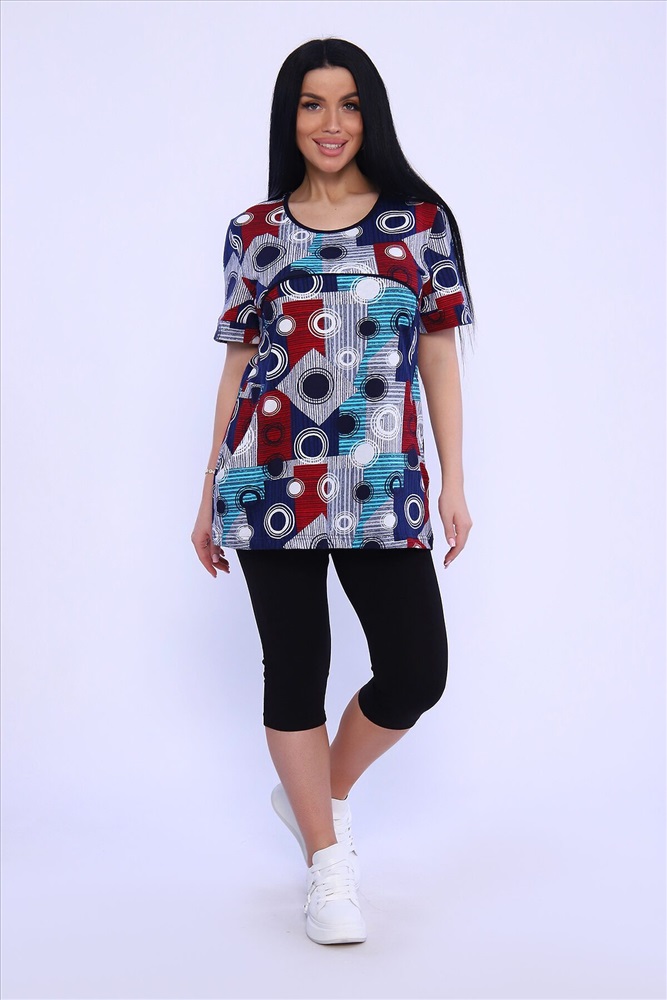 ID товара: 978840 Состав: Хлопок 100%; Хлопок 95%, Лайкра 5% Сезон: Весна/Лето Длина: Средняя Фасон: Полуприлегающий Рукав: короткие Крой брючин: Облегающий Рисунок: Абстракция Декоративные элементы: Принт Основная ткань: Хлопок Стиль: повседневный Вид ткани: Кулирка, кулирка с лайкрой Страна бренда: Россия Страна производства: Россия Женский комплект туника и бриджи. Туника из кулирки прямого силуэта длиной до бедер, с коротким рукавом. Бриджи из кулирки с лайкрой облегающего силуэта длиной ниже колен. Комментарии к товару