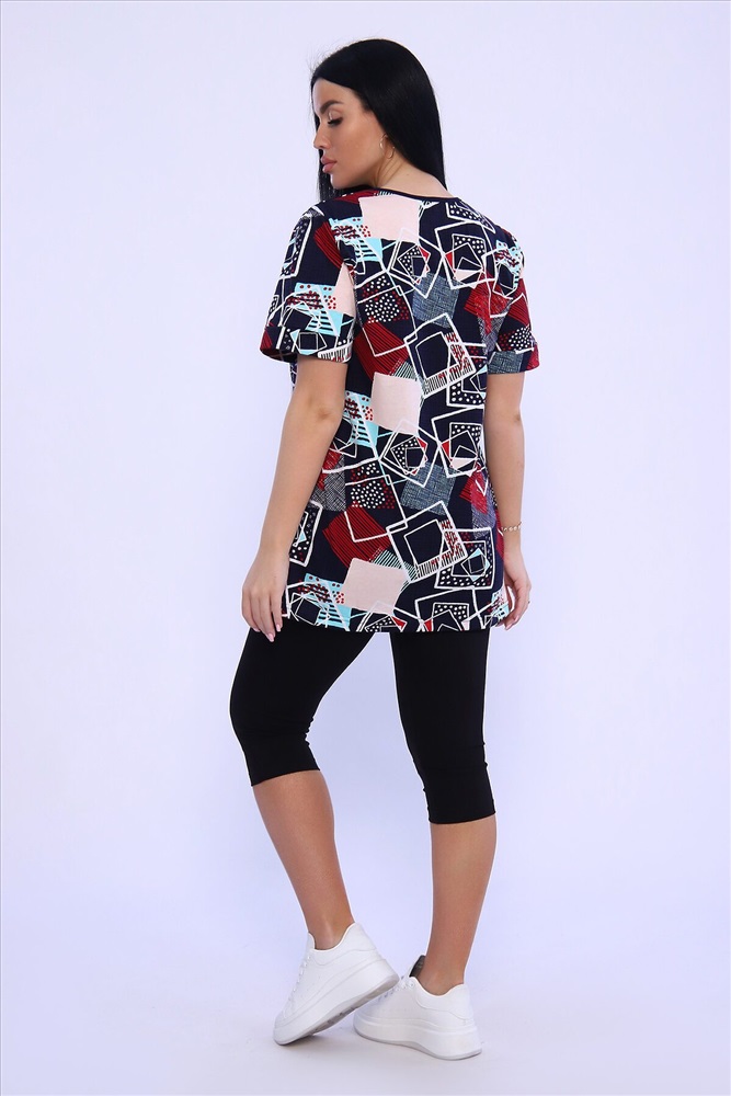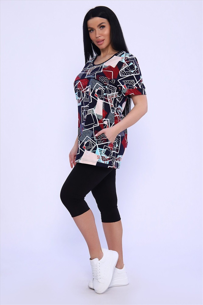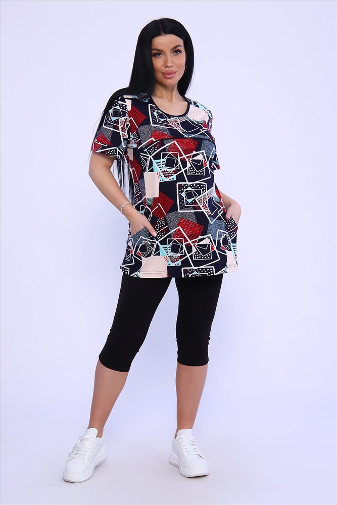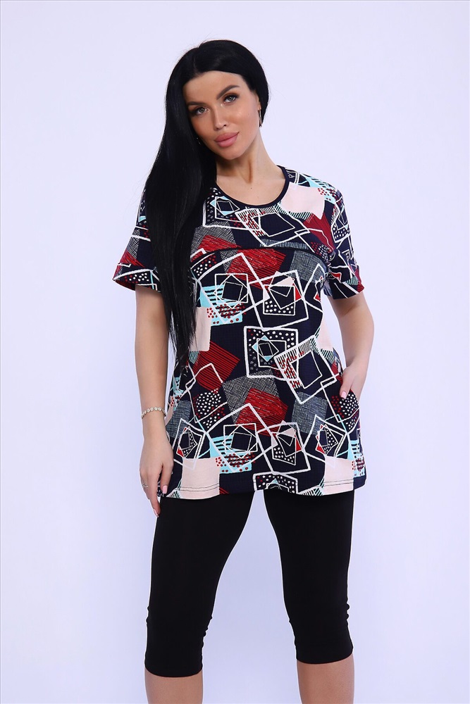 ID товара: 978611 Состав: Хлопок 100%; Хлопок 95%, Лайкра 5% Сезон: Весна/Лето Длина: Средняя Фасон: Полуприлегающий Рукав: короткие Крой брючин: Облегающий Рисунок: Геометрический Тип карманов: В шве Декоративные элементы: Принт Основная ткань: Хлопок Стиль: повседневный Вид ткани: Кулирка, кулирка с лайкрой Страна бренда: Россия Страна производства: Россия Женский комплект туника и бриджи. Туника из кулирки прямого силуэта длиной до бедер, с коротким рукавом. Бриджи из кулирки с лайкрой облегающего силуэта длиной ниже колен. Комментарии к товару