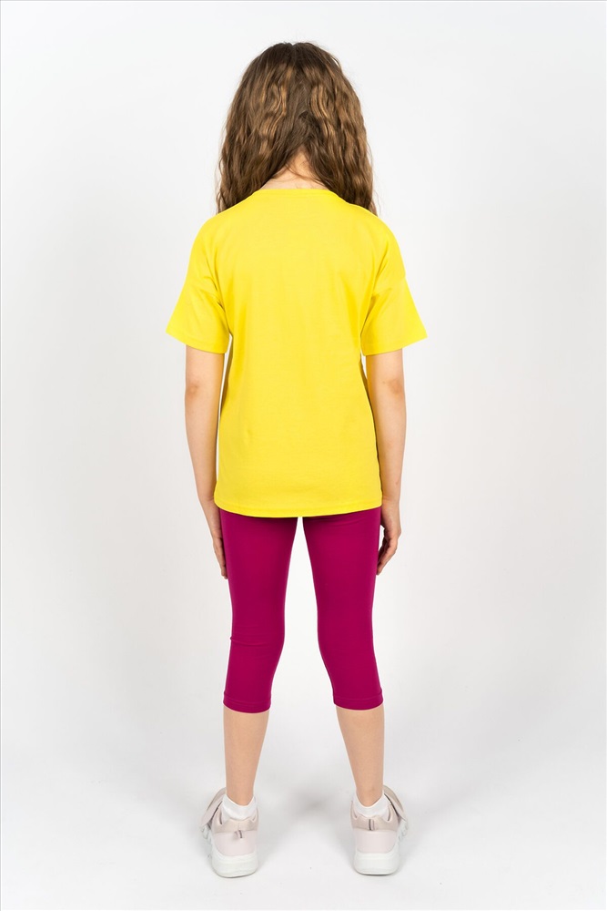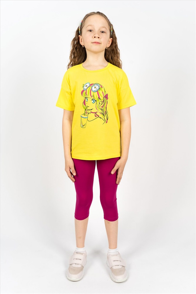 ID товара: 885486 Состав: 100% Хлопок Сезон: Весна/Лето Длина: Средняя Фасон: Прямой Рукав: Короткие Крой брючин: Облегающий Рисунок: Фантазийный Основная ткань: Хлопок | Кулирка Стиль: Повседневный Страна бренда: Россия Страна производства: Россия Солнечный комплект для девочки, состоящий из футболки и бридж. Яркие, сочные цвета футболки и бридж поднимут настроение - то, что нужно для хорошей прогулки летом! Футболка для девочки прямого силуэта со спущенным рукавом. Горловина круглая, обработана воротником из кулирки. Низ изделия и рукава обработан швом вподгибку. На полочке принт шелкография. Бриджи для девочки прилегающего силуэта из гладкокрашенного полотна. Пояс цельнокроенный, с эластичной тесьмой внутри. Низ бридж обработан швом в подгибку. Комментарии к товару