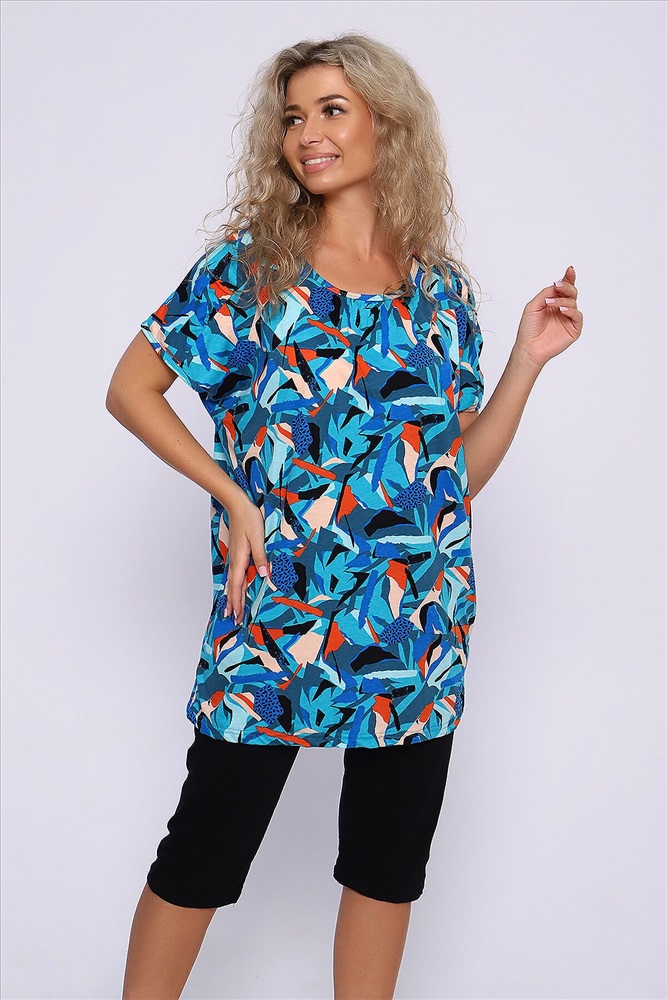 Страна производства: Россия Костюм состоит из туники и бридж. Бриджи с карманами длиной ниже колена. Туника с короткими рукавами. Неотъемлемый элемент домашнего гардероба.