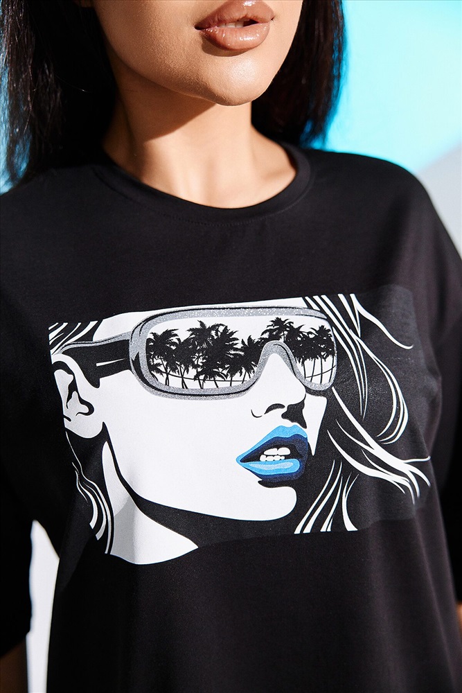 ID товара: 888212 Состав: Хлопок 92%, Лайкра 8% Сезон: Весна/Лето Длина: Средняя Фасон: Свободный крой Рукав: короткие Крой брючин: Облегающий Рисунок: Девушка Декоративные элементы: Печатный принт Основная ткань: Хлопок | Кулирка с лайкрой Стиль: Повседневный Страна бренда: Россия Страна производства: Россия Костюм женский - футболка свободного кроя и облегающие бриджи выполнен из хлопка с лайкрой. Спереди на футболке оригинальный принт. Горловина обработана бейкой, низ изделия и рукав подшиты. Костюм очень удобный и приятный к телу, идеально подойдет как для дома, так и для прогулок и отдыха. Комментарии к товару