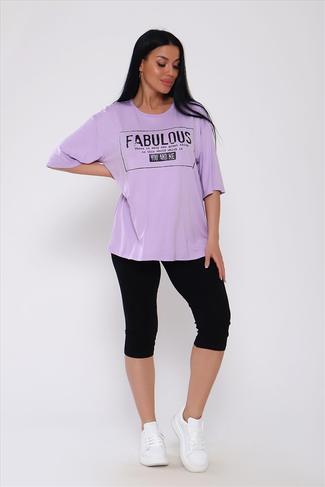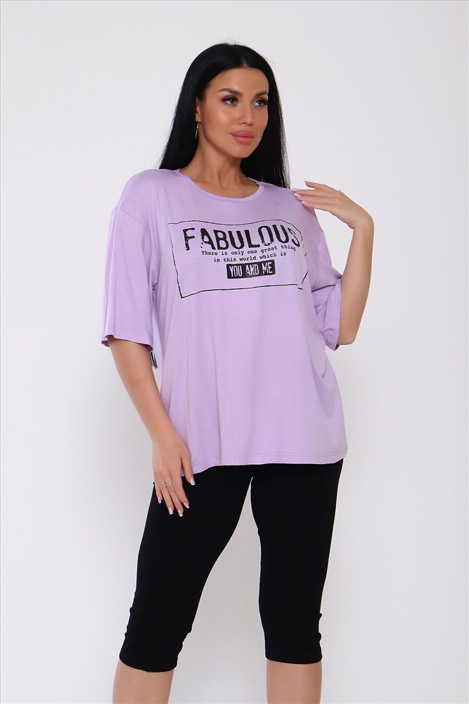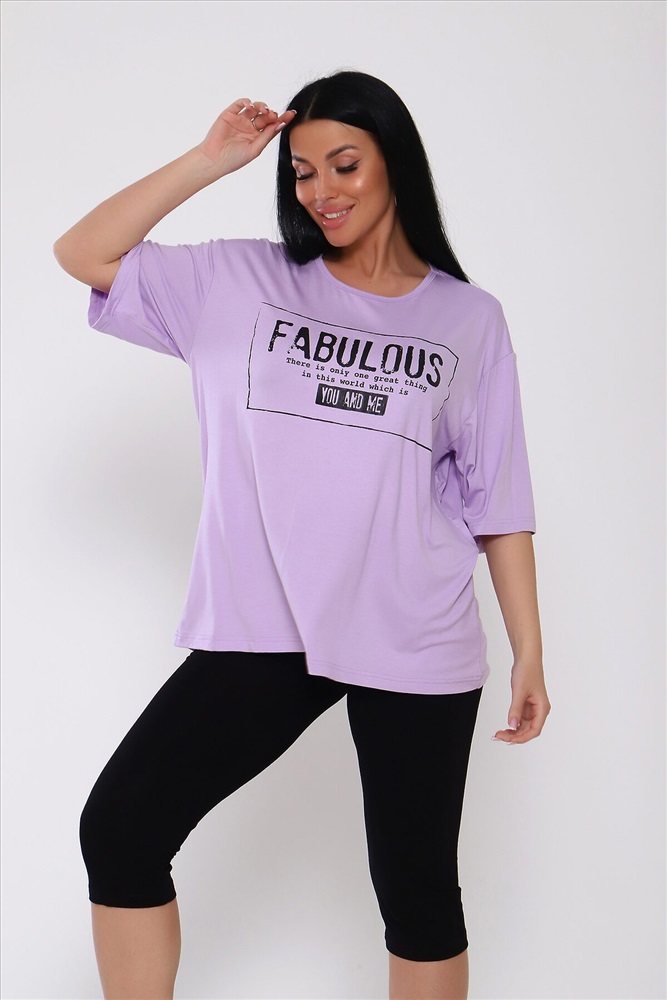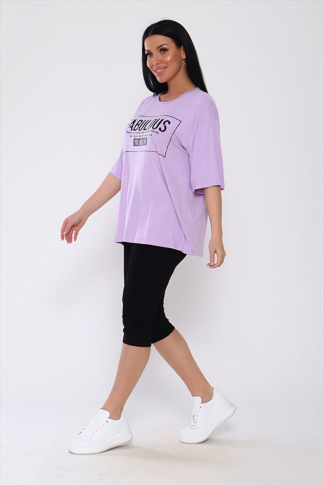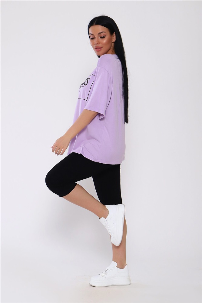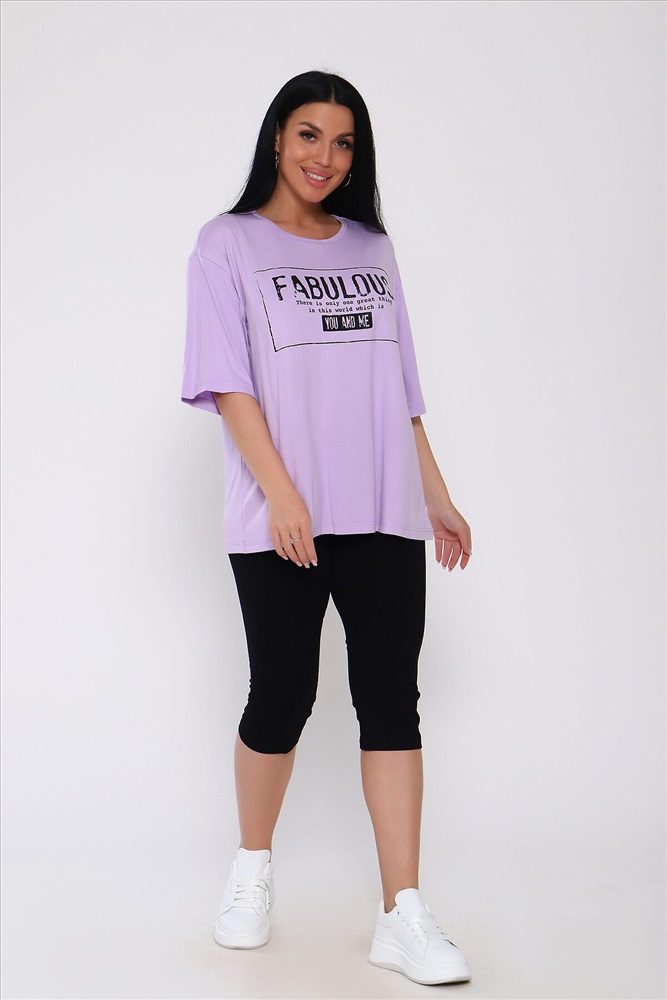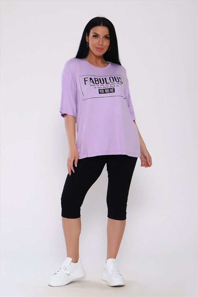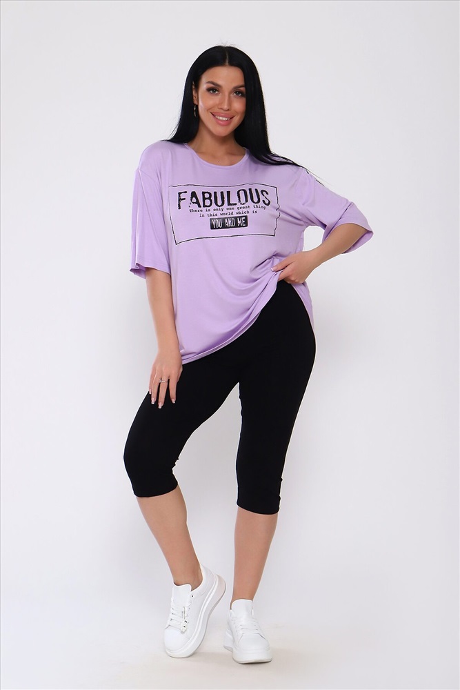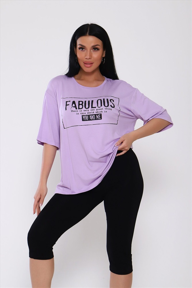 ID товара: 988240 Состав: Вискоза 95%, Лайкра 5% Сезон: Весна/Лето Длина: Средняя Фасон: Повседневный Рукав: короткие Крой брючин: Облегающий Рисунок: Надпись Декоративные элементы: Принт Стиль: повседневный Вид ткани: Вискоза Страна бренда: Россия Страна производства: Россия Костюм из вискозы .Футболка оверсайс с облегающими по ноге леггинсами .Футболка свободная с принтом по переду, рукав до локтя, длинна до середины бедра. Бриджи в обтяжку чуть ниже колена. На модели 50 размер . . Комментарии к товару
