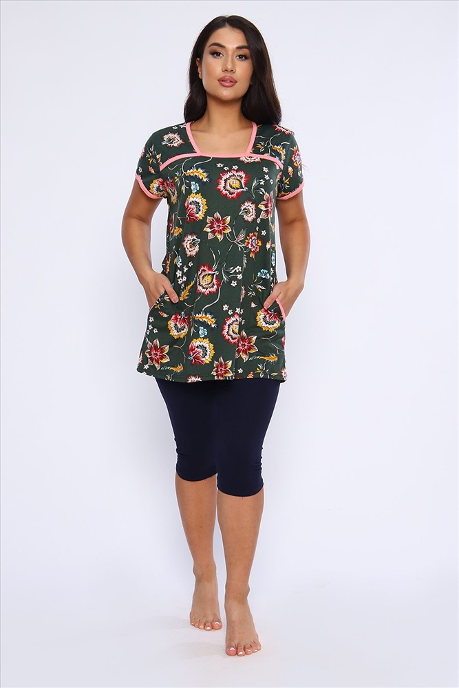 Страна производства: Россия Костюм для женщин любого возраста. Хорошо подойдет для дома, сада, в любое время года. Кофточка с окантовкой по горловине, кокетке и карману. Бриджи из ткани кулирка с лайкрой, очень долго носятся, не меняют форму и цвет. Костюмчик выглядит оригинально на любой фигуре.