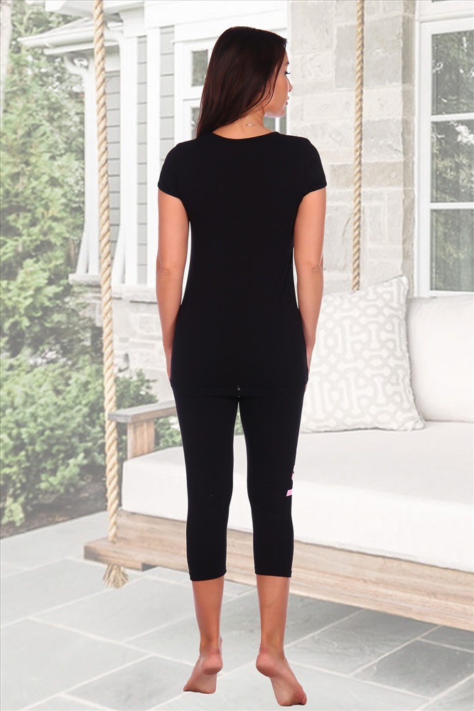 ID товара: 883643 Состав: Вискоза 95%, Лайкра 5% Сезон: Весна/Лето Длина: Средняя Фасон: Полуприлегающий Рукав: короткие Крой брючин: Облегающий Рисунок: натюрморт Основная ткань: Вискоза Стиль: Повседневный Страна бренда: Россия Страна производства: Россия Костюм из вискозы футболка+бриджи. Однотонная черная футболка с принтом, бриджи чуть ниже коленей Комментарии к товару