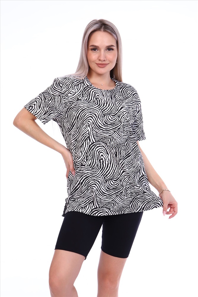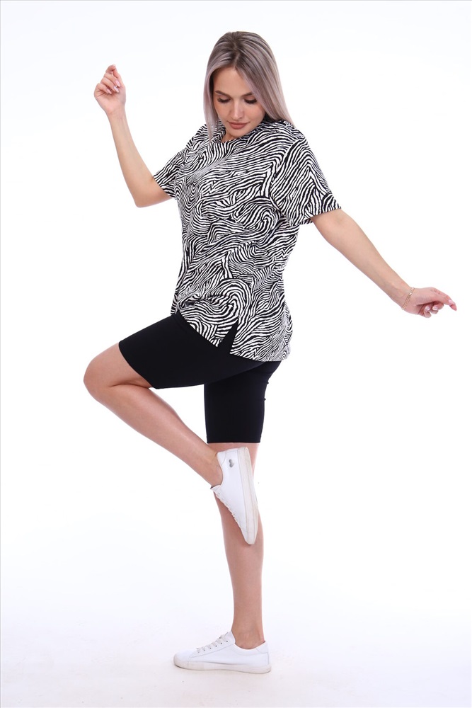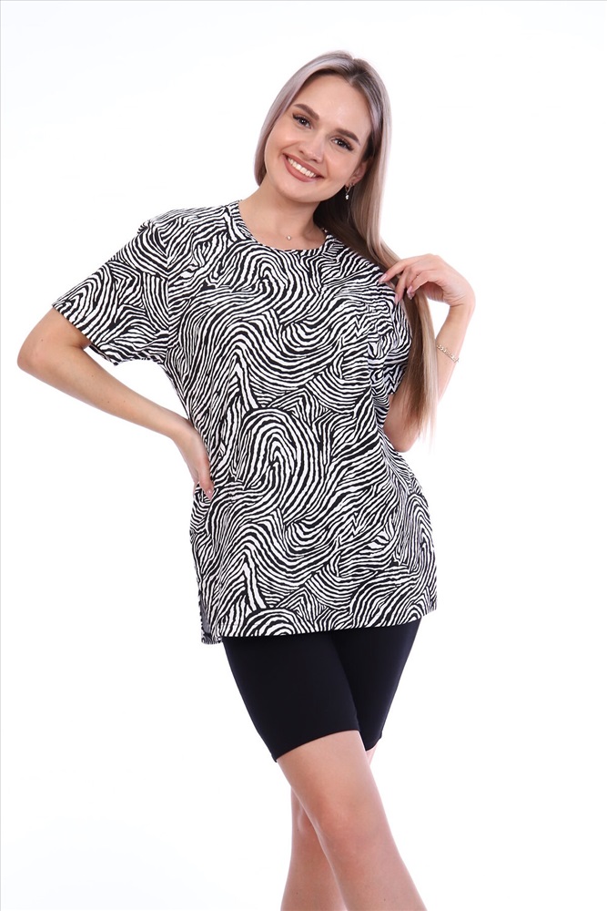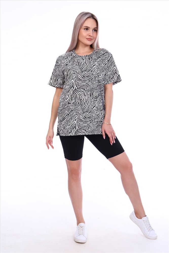 Страна производства: Россия Комплект состоит из футболки и бриджей. Свободная футболка. Бриджи плотно прилегающие. Футболка изготовлена из интерлока 100 % хлопок. Бриджи изготовлены из кулирки с лайкрой 95% хлопок, 5% лайкра. Комплект, подойдет на любой тип фигуры.
