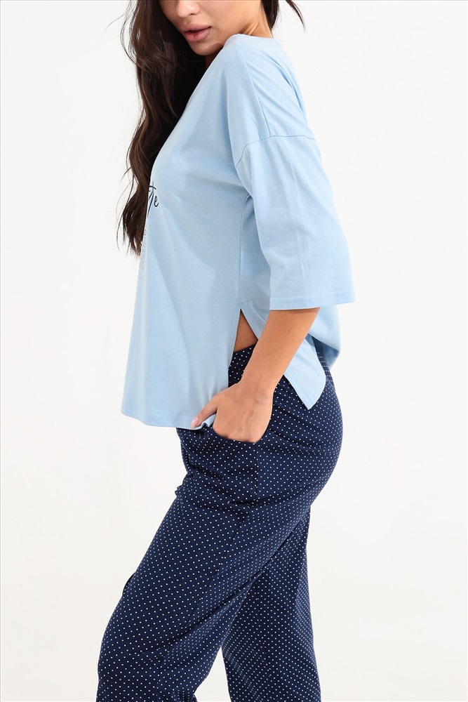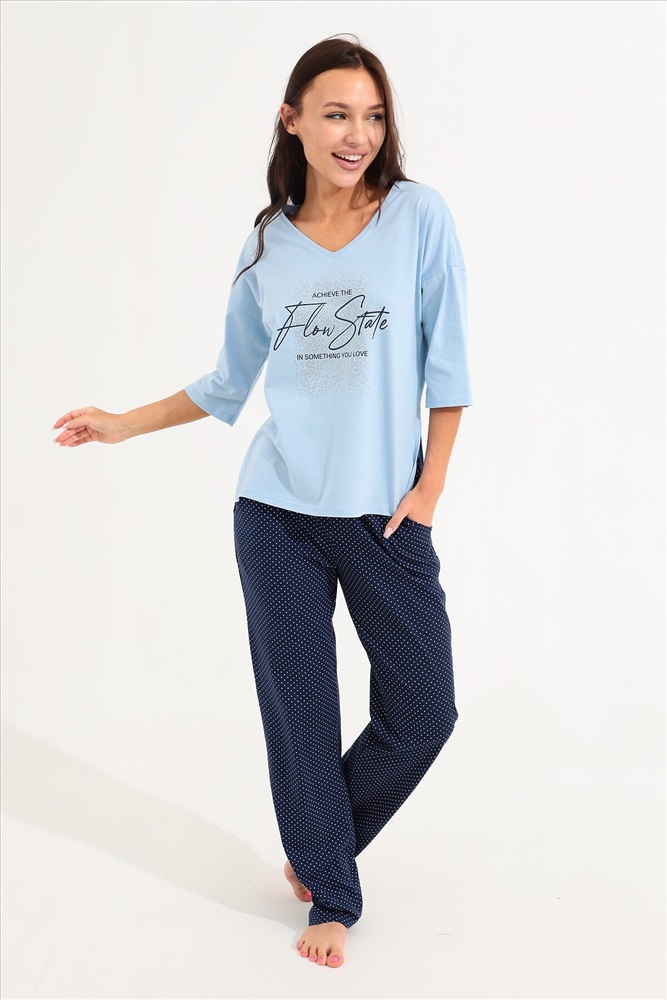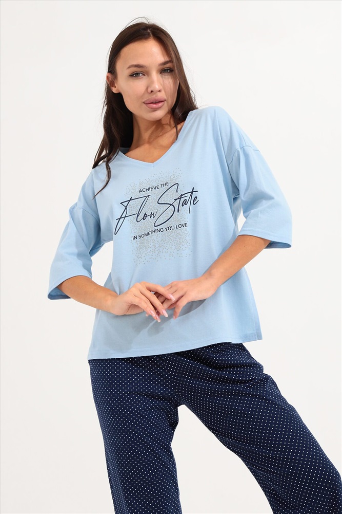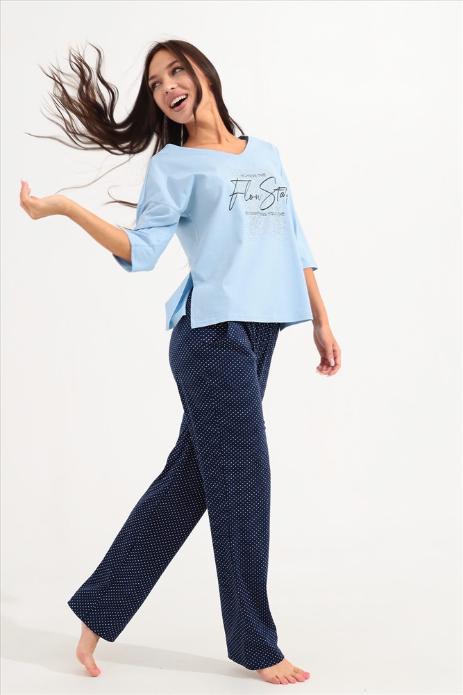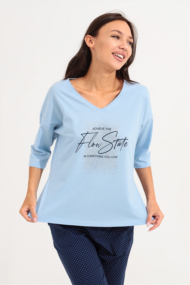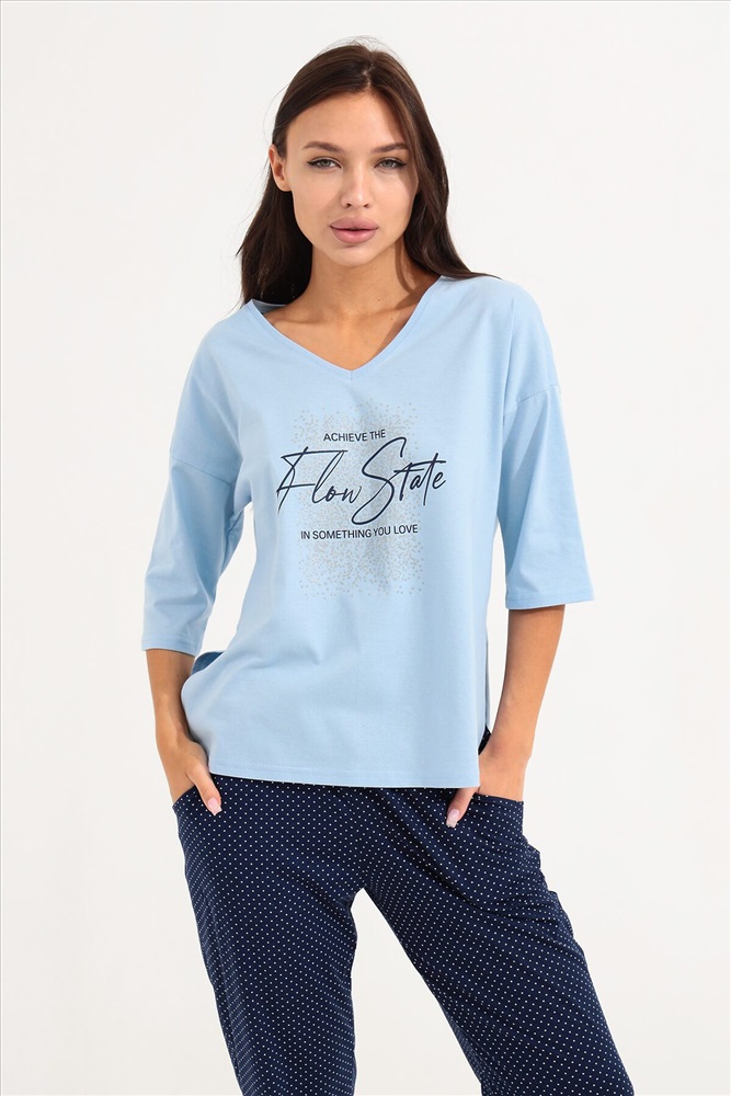 ID товара: 934473 Состав: 100% Хлопок Сезон: Весна/Лето Длина: Средняя Фасон: Прямой Рукав: 3/4 Крой брючин: Прямой Основная ткань: Хлопок Стиль: Повседневный Вид ткани: Кулирка Страна бренда: Россия Страна производства: Россия Костюм для девушек, женщин и девочек из хлопка на каждый день прекрасно подойдет для комфортного нахождения дома. Костюм идеален на лето, весну и осень, так же подойдет для зимней носки в комфортных условиях. Хлопковый трикотаж позволяет коже дышать. Хлопок не изнашивается, не теряет форму и цвет после стирки. Наш костюм создан для вашего уюта и комфорта, он так же идеально подойдет для подарка на любой праздник. Длина рукава измеряется по верхней части плеча и вниз по предлагаемой длины. Рост модели 164 см и размер 44. Комментарии к товару