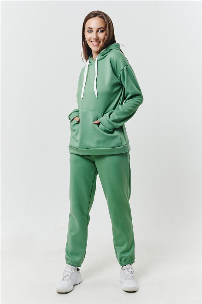 ID товара: 874426 Состав: 50% Вискоза, 45% Полиэстер, 5% Лайкра Сезон: Демисезон Длина: Средняя Фасон: Свободный крой Рукав: длинные Крой брючин: Прямой Тип карманов: Кенгуру Основная ткань: Трикотаж на меху Стиль: Повседневный Страна бренда: Россия Страна производства: Турция Стильный женский костюм состоит из худи с капюшоном и карманом кенгуру, удобные брюки внизу собраны на резинку в виде манжета. Поможет Вам быть в тренде этого сезона! Костюм из мягкой толстовки со спущенным рукавом и брюками прекрасно подойдет для вечерних и повседневных образов, для прогулок и занятий спортом, а также в качестве костюма для дома. Брюки из футера очень удобны в качестве повседневной одежды, не сковывают движения. Костюм двойка выполнен из трикотажа на меху, не теряет форму после многочисленных стирок, не скатывается. Костюм идеально походит для носки в осенне-зимнее время года. Комментарии к товару