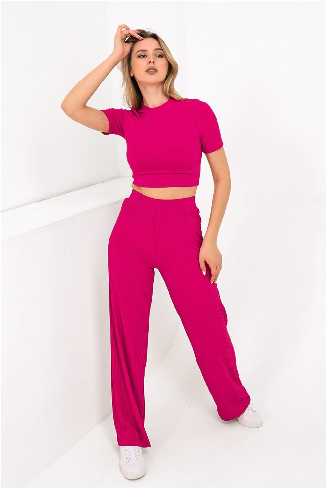 ID товара: 896730 Состав: 72% Полиэстер, 23% Вискоза, 5% Эластан Сезон: Весна/Лето Длина: Укороченная Фасон: Полуприлегающий Рукав: Короткий Крой брючин: Прямой Основная ткань: Полиэстер Стиль: Повседневный Вид ткани: Лапша Страна бренда: Россия Страна производства: Россия Стильный женский трикотажный костюм из ткани лапши. Отлично держит форму и приятен к телу. Женский комплект состоит из базового топа с коротким рукавом и брюк широкого кроя. Модель костюма для вечернего и повседневного образа, отлично сочетается как с кроссовками, так и с туфлями. Так же отдельно можно носить топик и брюки палаццо. Сочетайте разные образы, вечерние, спортивные или домашние. Укороченная модель кроп топа придаст индивидуальность, сочетаться с различными аксессуарами. Костюм отлично подходит для прогулки, выезда на природу или похода в ресторан. Удобный классический топ отличный вариант на лето, приятные к телу штаты удобны и практичны. Комментарии к товару