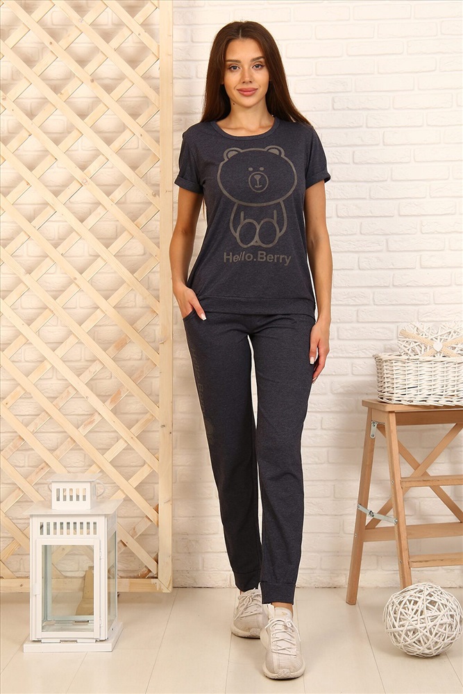 ID товара: 881592 Состав: 50% Хлопок, 50% Полиэстер Сезон: Демисезон Длина: Полная Фасон: Полуприлегающий Рукав: короткие Декоративные элементы: Принт Основная ткань: Кулирка Страна бренда: Россия Страна производства: Россия Костюм женский из кулирного полотна состоит из футболки и брюк. Футболка прямой силуэт, горловина круглая, рукав короткий, втачной, низ изделия на поясе. Брюки прямые, верх на поясе с резинкой, в боковых швах внутренние карманы, низ изделия на манжете. На полочке и брюках принт. Комментарии к товару