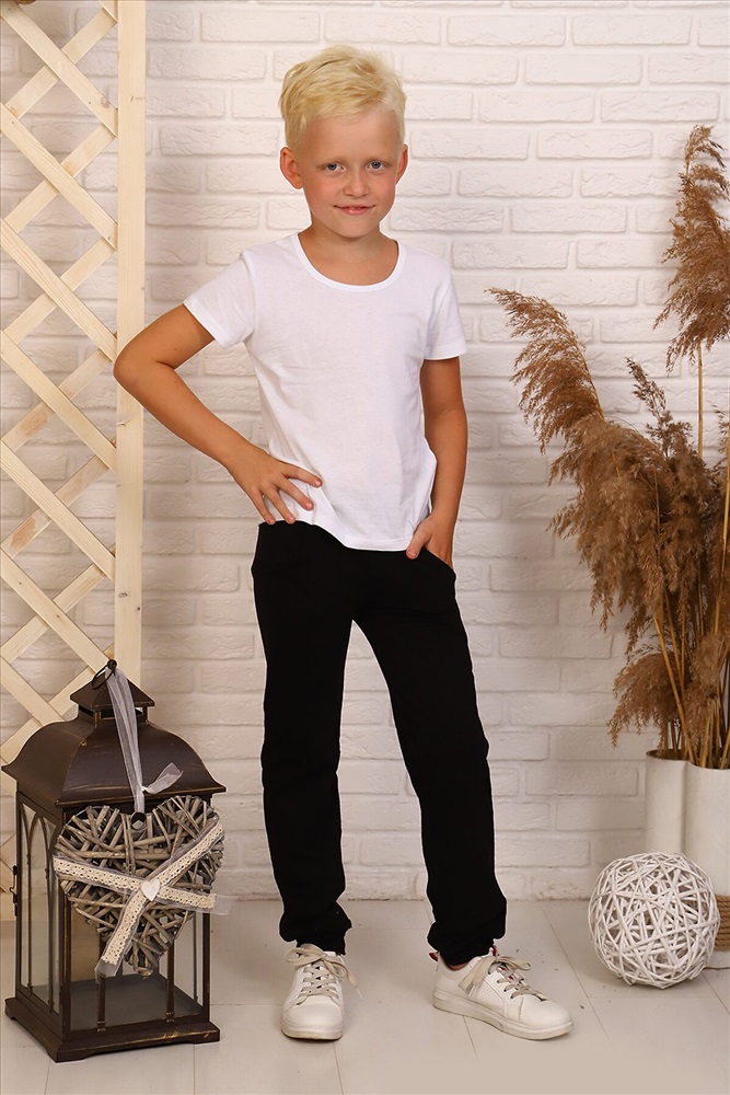ID товара: 881688 Состав: Верх 100% Хлопок; Низ 95% Хлопок, 5% Лайкра Сезон: Весна/Лето Длина: Средняя Фасон: Прямой Рукав: Короткий Крой брючин: Прямой Основная ткань: Кулирка, кулирка с лайкрой Стиль: Повседневный Страна бренда: Россия Страна производства: Россия Костюм детский для занятий в спортивных секциях и физкультурой для мальчика, футболка и брюки. Футболка полуприлегающего силуэта с коротким рукавом. Горловина округлой формы, обработана окантовкой. Низ изделия и рукавов подогнут. Брюки полуприлегающего силуэта с карманами формы хулиган и отрезным поясом, них изделия с отрезной манжетой. Комментарии к товару