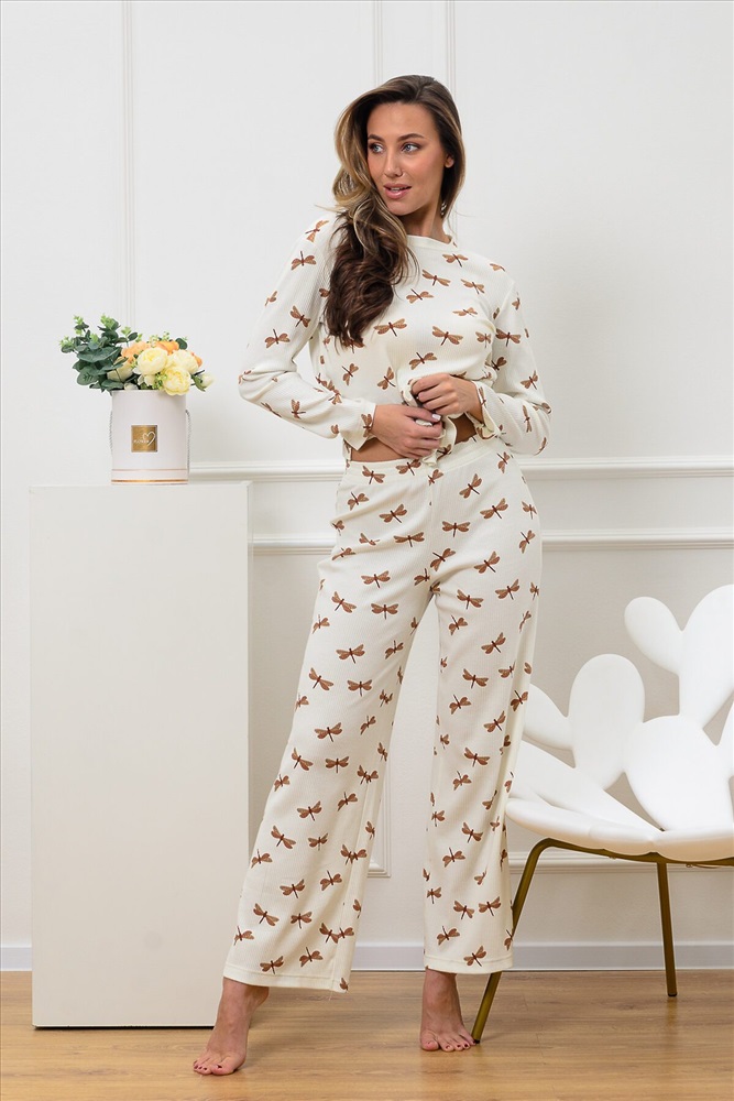 ID товара: 955934 Состав: 95% Хлопок; 5% Лайкра Сезон: Демисезон Длина: Средняя Фасон: Прямой Рукав: длинные Крой брючин: Широкий Основная ткань: Хлопок Стиль: Повседневный Вид ткани: Лапша Страна бренда: Россия Страна производства: Россия Красивый, стильный, уютный домашний костюм состоящий из брюк и кофты с длинным рукавом (лонгслив). Брюки свободные, широкие. Цельнокроеный пояс брюк с комфортной широкой резинкой имеет аккуратный вид за счёт обработки на многоигольной поясной машине. Лонгслив свободного кроя с разрезами по бокам (спинка длиннее переда) имеет полноценный длинный рукав; округлая горловина кофты обработана планкой и отстрочкой. Комплект выполнен из высококачественного хлопкового полотна (качество пенье) с плетением в рубчик, так называемым лапша, которая остаётся в тренде уже не первый сезон. Способ переплетения нитей и структура самих хлопковых волокон придают трикотажному полотну отличную впитываемость и хорошую воздухопроницаемость. Ткань отличается мягкостью при высокой плотности, вещи из неё нежные и приятные на ощупь и внешне привлекательны. Наличие лайкры прибавляет эластичности. Благодаря особенностям материала создаётся стильный вид. В таком ансамбле можно принимать внезапно пришедших гостей. Универсальный фасон, создающий модный образ, подойдёт как молодым девушкам, так и дамам солидного возраста. Комментарии к товару