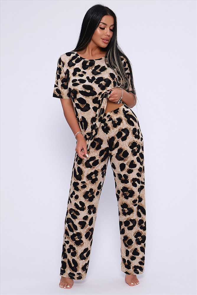 Страна производства: Россия Женский костюм выполнен из вискозы, 95% вискоза, 5% лайкра. Костюм с брюками отлично подойдет как для дома, так и для активного отдыха или прогулки. Футболка полуприлегающего силуэта, рукава втачные, округлый вырез горловины. Костюм имеет стильный принт, который придает изделию индивидуальность. Брюки широкие, на поясе без карманов. Модель для повседневной носки, Вы будете чувствовать себя комфортно и уютно. Рекомендованный режим стирки t 30