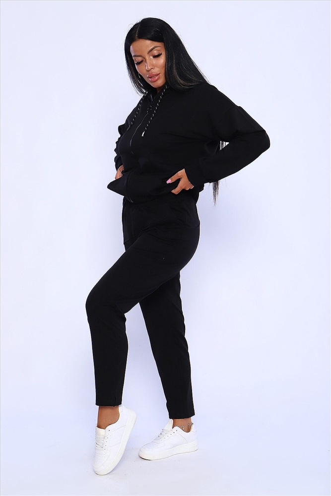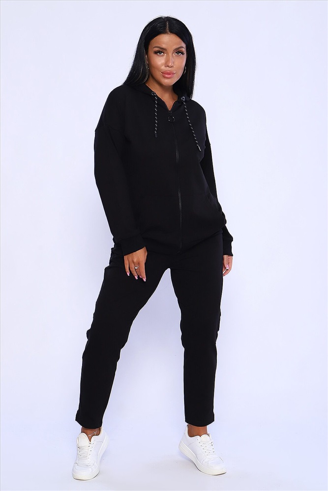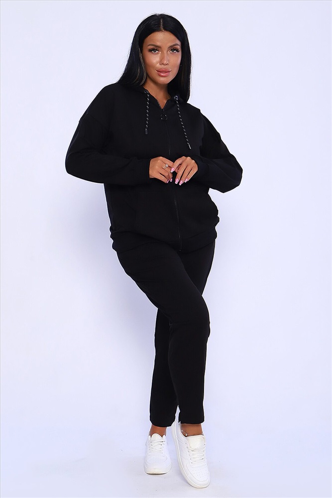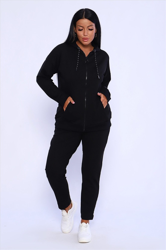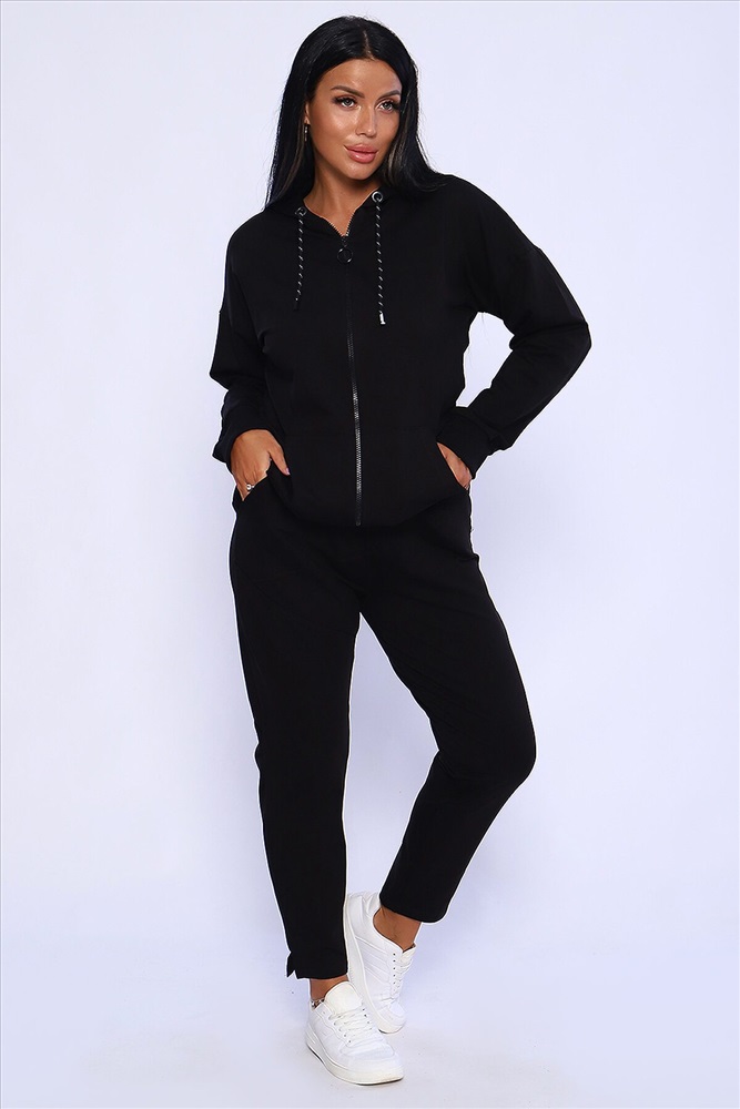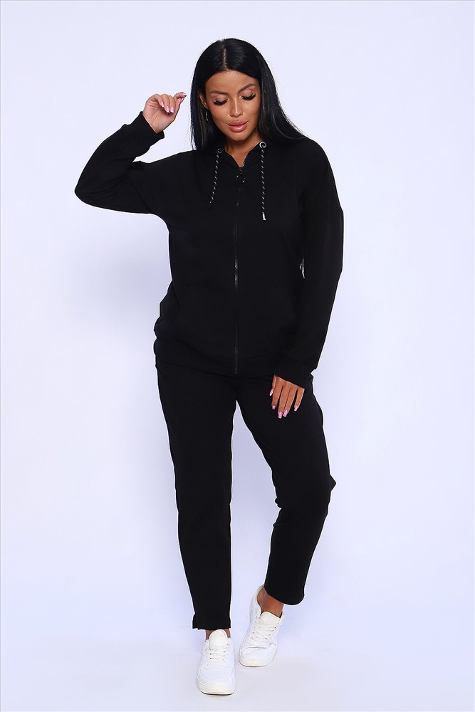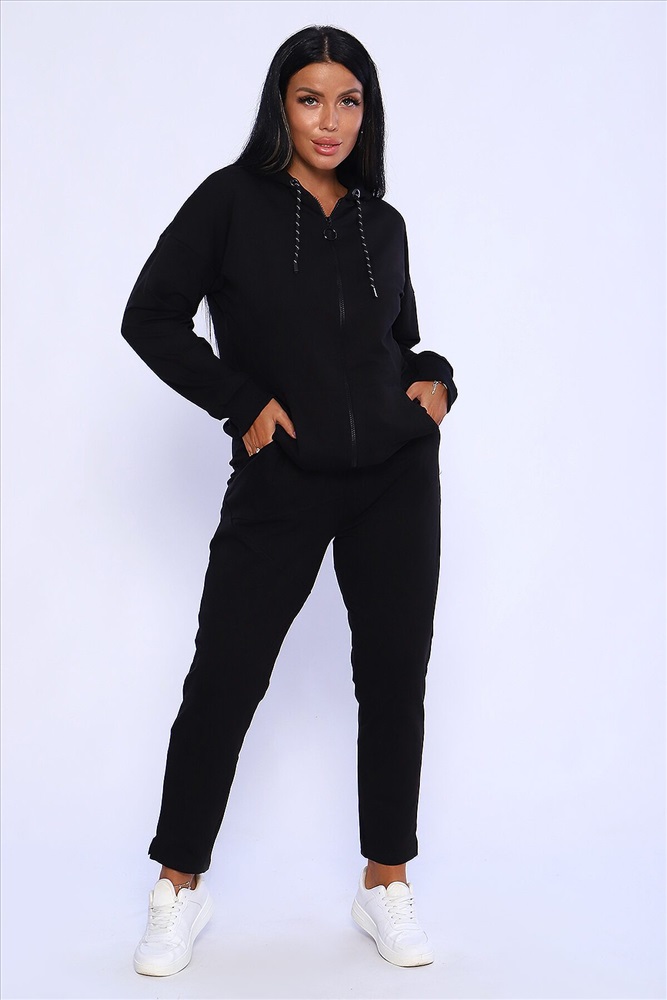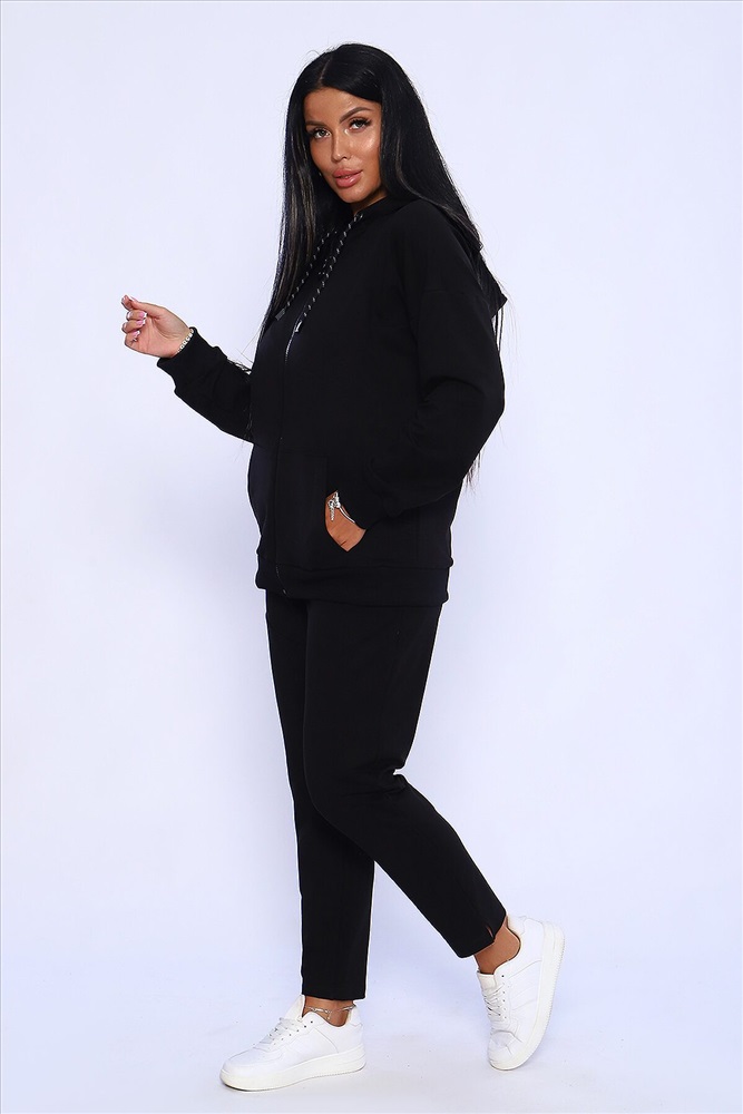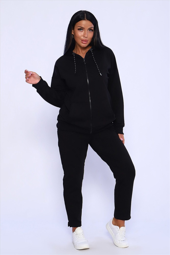 ID товара: 928420 Состав: Хлопок 95%; Лайкра 5% Сезон: Весна/Лето Длина: Средняя Фасон: Свободный крой Рукав: длинные Крой брючин: Зауженный Тип карманов: С отрезным бочком Основная ткань: Хлопок Стиль: Спортивный Вид ткани: Футер 2-х нитка Страна бренда: Россия Страна производства: Россия Костюм выполнен из трикотажного полотна футер 2-х нитка. Толстовка свободного силуэта, имеет капюшон с люверсами и шнурком. Линия плеча спущена (в измерениях длина рукава указана от шва втачивания рукава), толстовка с центральной бортовой застежкой на молнии, в нижней части полочек расположены два кармана. Манжеты рукавов и пояс толстовки изготовлены из эластичного трикотажного полотна кашкорсе. Брюки полуприлегающего силуэта, передние половинки выполнены ассиметрично из нескольких деталей, задние половинки брюк с кокеткой, по бокам расположено два кармана, низ обработан подгибкой и имеет разрезы в боковых швах, пояс брюк притачной. Ткань Костюма плотная, теплая, приятная к телу, согревающая в прохладную погоду, данная модель не обтягивает фигуру, скрывает мелкие огрехи силуэта, костюм уместен для носки в любых повседневных ситуациях и подходит для любого типа фигуры. На модели представлен костюм 46 размера. Рекомендуемый режим стирки 30 t. Комментарии к товару