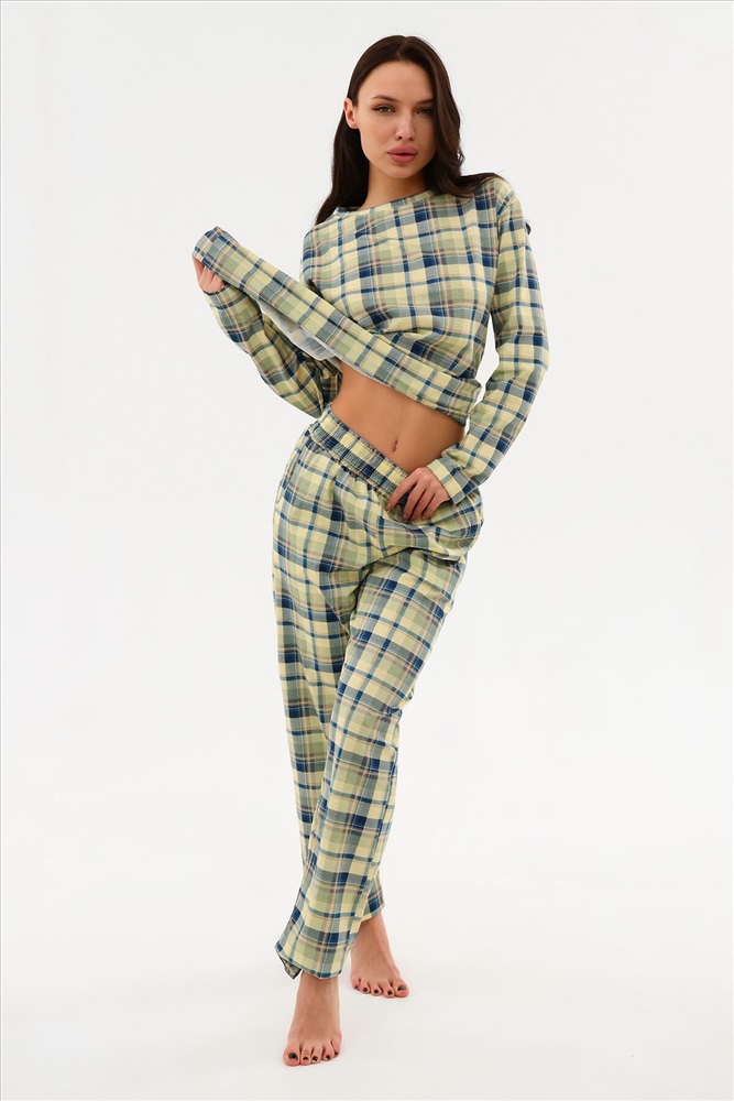 ID товара: 955560 Состав: Хлопок 100%. Сезон: Демисезон Длина: Средняя Фасон: Прямой Рукав: длинные Крой брючин: Прямой Рисунок: Клетка Основная ткань: Хлопок Стиль: Повседневный Вид ткани: Кулирка Страна бренда: Россия Страна производства: Россия Уютный удобный костюм из натурального хлопка. Удлинённый лонгслив свободного кроя. Брюки с высокой посадкой свободного кроя с внутренними карманами. Пояс обработан на поясной машине, поэтому резинка не скручивается при эксплуатации. В измерении обхвата талии указан размер резинки, которая без проблем растягивается до стандартных значений фигуры. В этом костюме комфортно находиться в домашней обстановке. Носите с удовольствием ! Комментарии к товару
