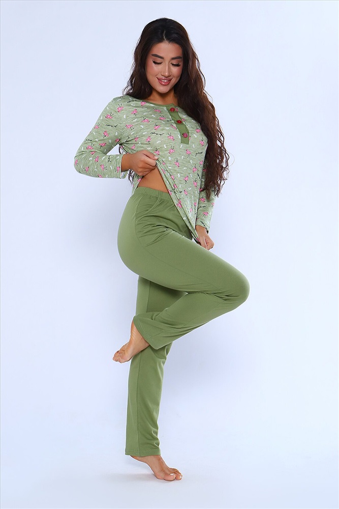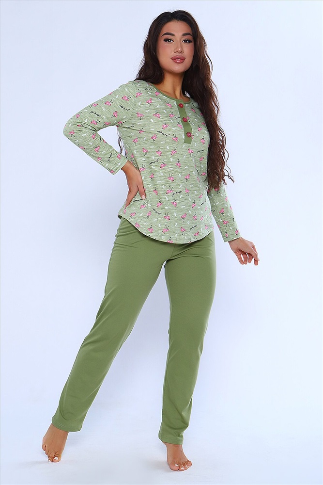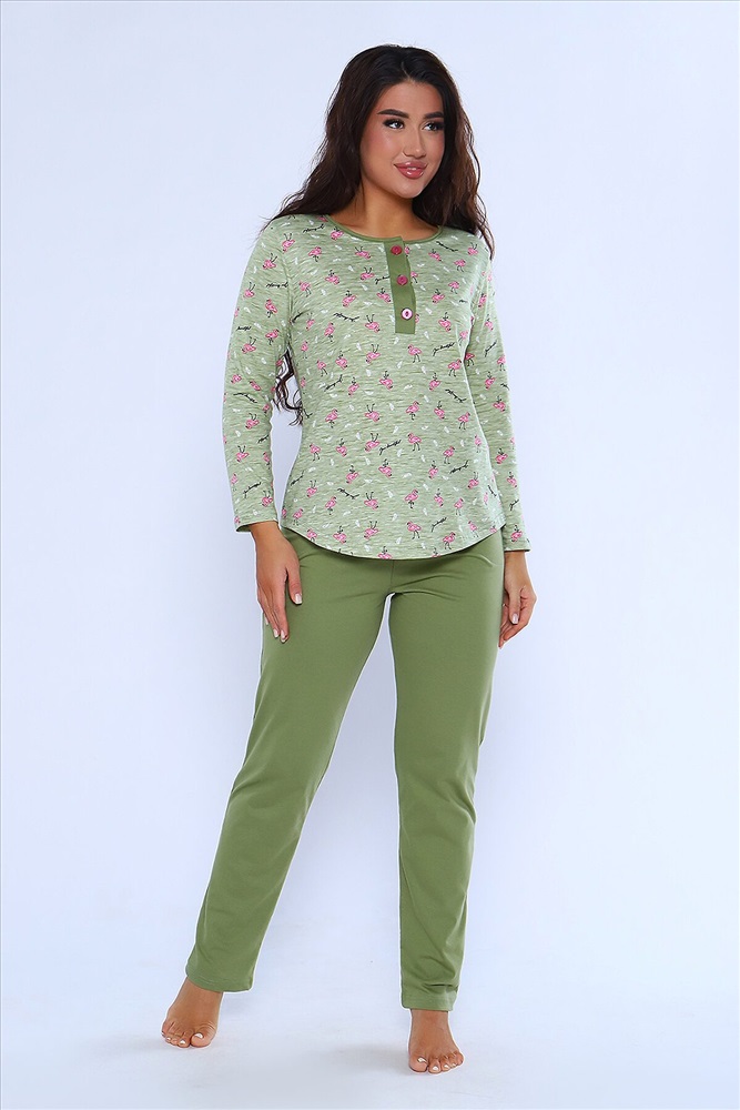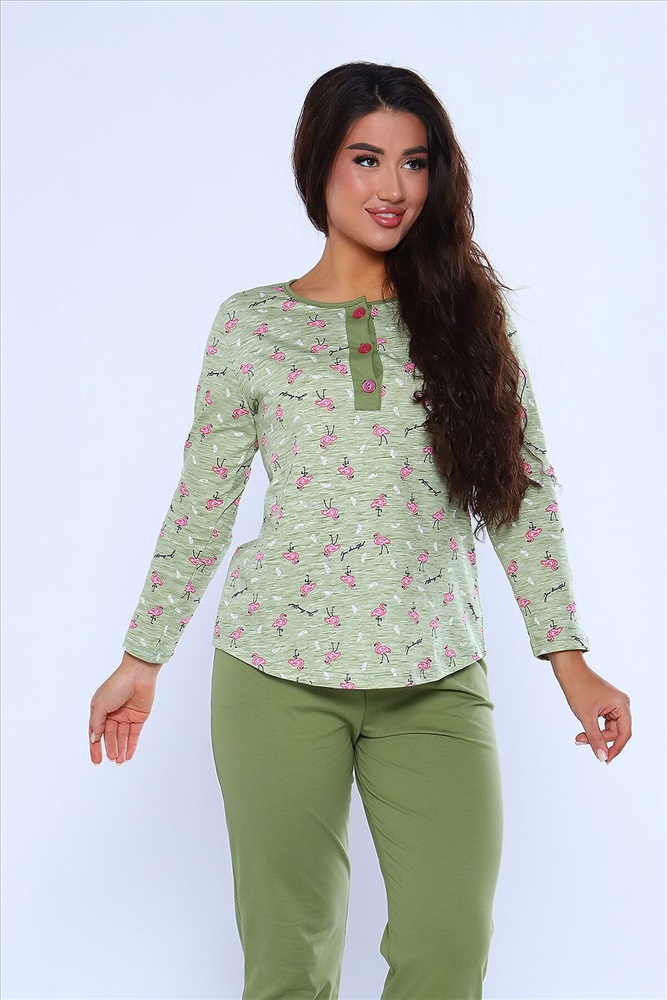 ID товара: 957491 Состав: 100% Хлопок Сезон: Демисезон Длина: Средняя Фасон: Прямой Рукав: длинные Крой брючин: Прямой Основная ткань: Хлопок Стиль: Повседневный Вид ткани: Кулирка Страна бренда: Россия Страна производства: Россия Женский костюм из 100% хлопка модного цвета. Свободный силуэт дарит свободу движений, а яркий принт поднимает настроение. Лонгслив с длинным рукавом, вырез поло с растягивающимися пуговицами. На брюках пижамы два кармана, резинка на поясе не врезается в кожу. В одежде для дома все должно быть продумано до мелочей, ведь именно здесь так хочется расслабиться и не думать ни о чем. Комментарии к товару