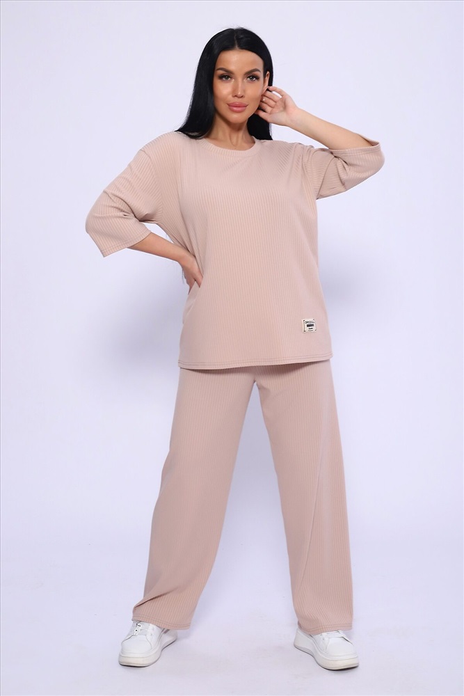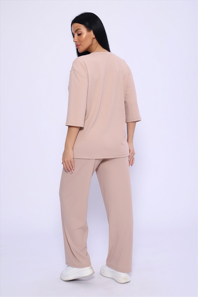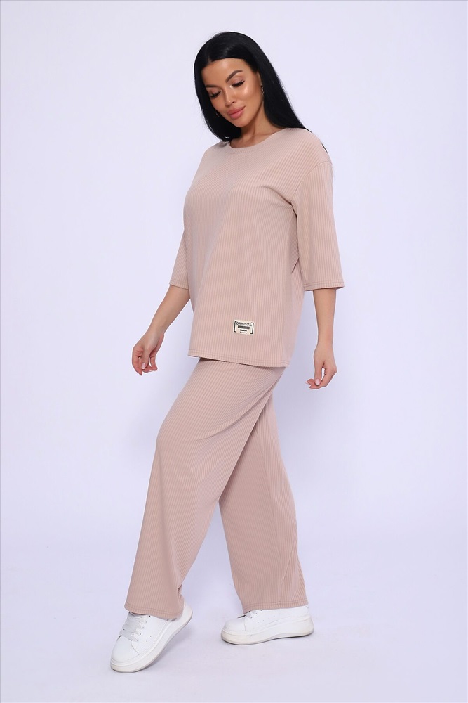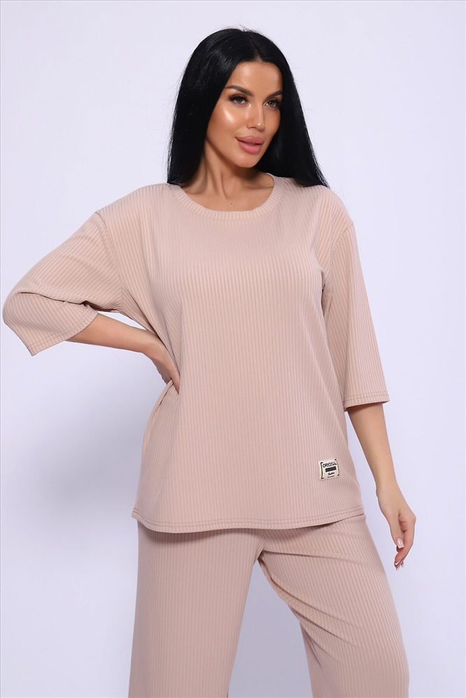 ID товара: 989297 Состав: 70% Полиэстер, 25% Вискоза, 5% Лайкра Сезон: Весна/Лето Длина: Полная Фасон: Свободный Рукав: 3/4 Крой брючин: Широкий Основная ткань: Полиэстер Стиль: повседневный Вид ткани: Лапша Страна бренда: Россия Страна производства: Россия Модель свободного силуэта состоит из джемпера с рукавом 3\4 и брюк палаццо. Костюм изготовлен из модной трикотажной ткани лапша, она плотная, хорошо тянется и очень красиво струится при движении, не мнётся и эффектно смотрится с любым вашим образом. Этот костюмчик будет уместен и дома, и на прогулках, и в поездках на отдых. В замерах длина рукава указана от начала горловины Комментарии к товару