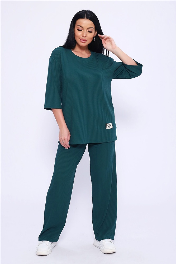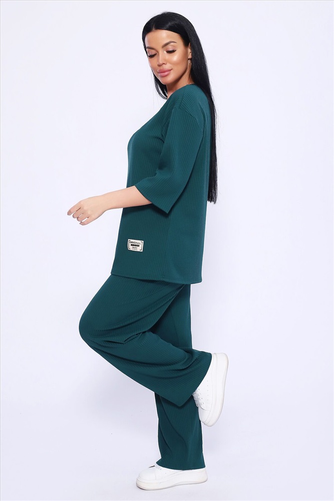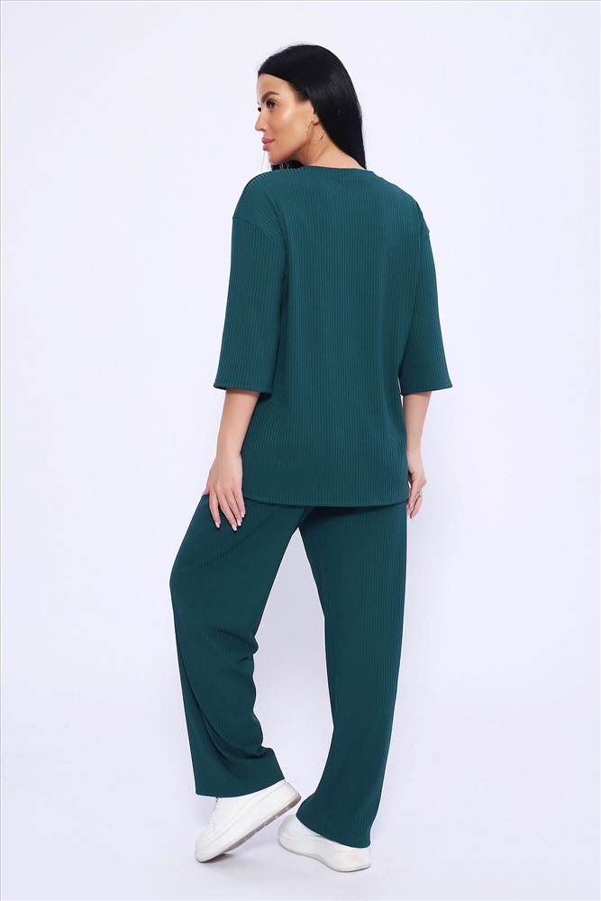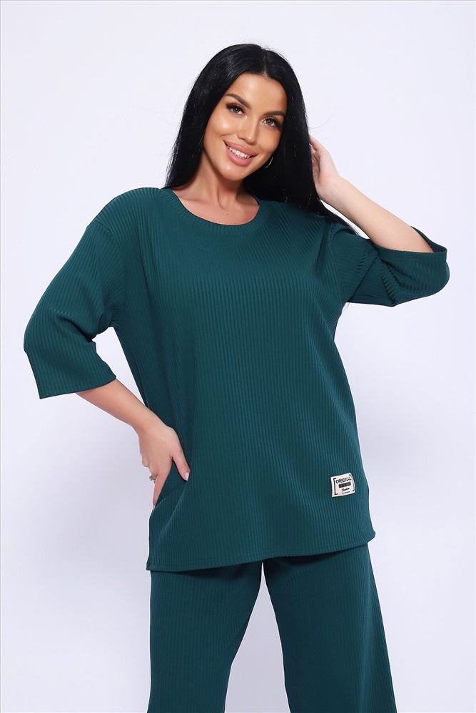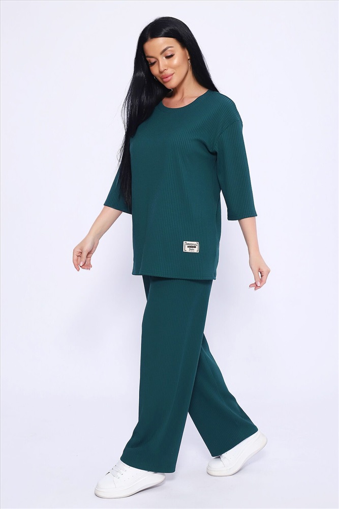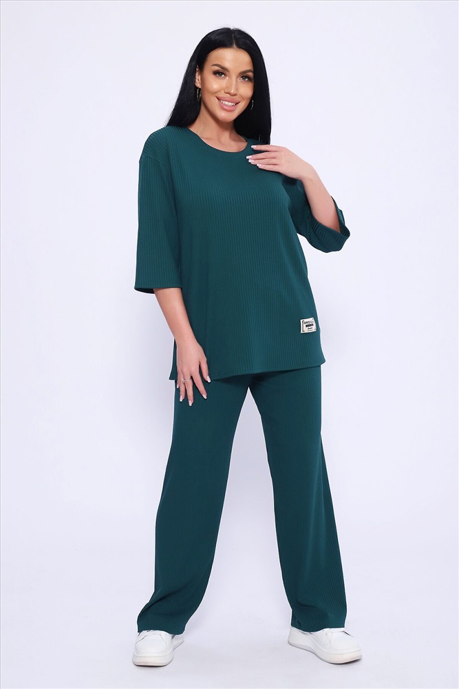 ID товара: 989298 Состав: 70% Полиэстер, 25% Вискоза, 5% Лайкра Сезон: Весна/Лето Длина: Полная Фасон: Свободный Рукав: 3/4 Крой брючин: Широкий Основная ткань: Полиэстер Стиль: повседневный Вид ткани: Лапша Страна бренда: Россия Страна производства: Россия Модель свободного силуэта состоит из джемпера с рукавом 3\4 и брюк палаццо. Костюм изготовлен из модной трикотажной ткани лапша, она плотная, хорошо тянется и очень красиво струится при движении, не мнётся и эффектно смотрится с любым вашим образом. Этот костюмчик будет уместен и дома, и на прогулках, и в поездках на отдых. В замерах длина рукава указана от начала горловины Комментарии к товару