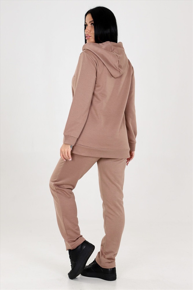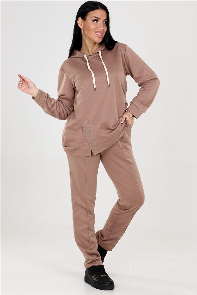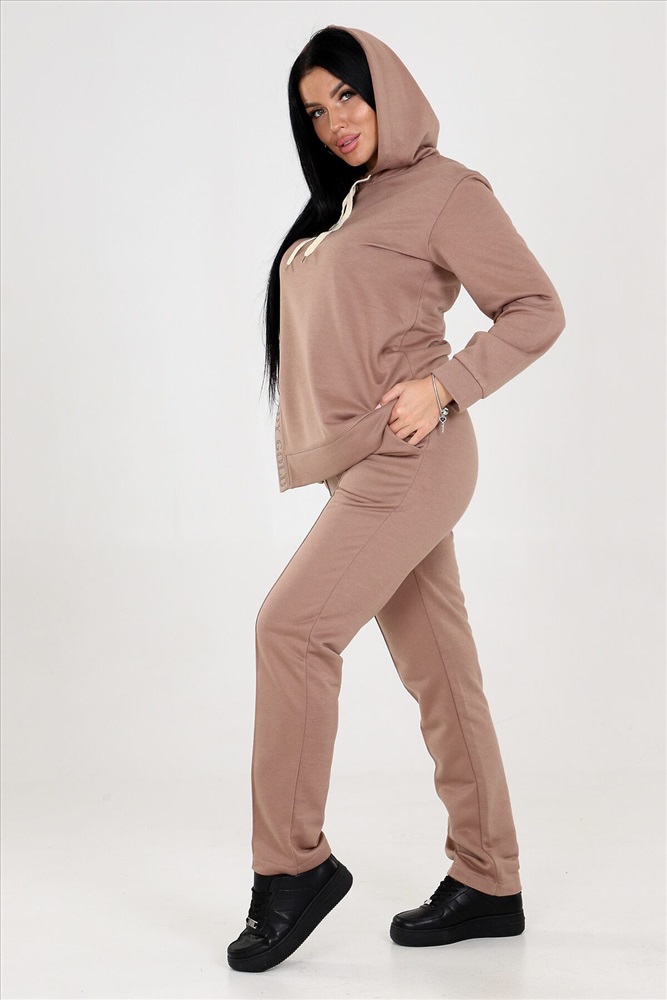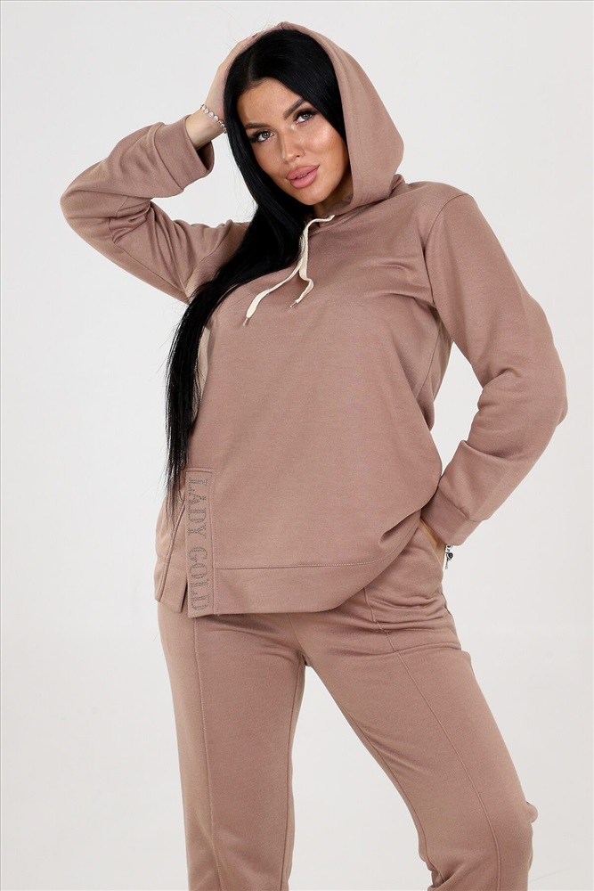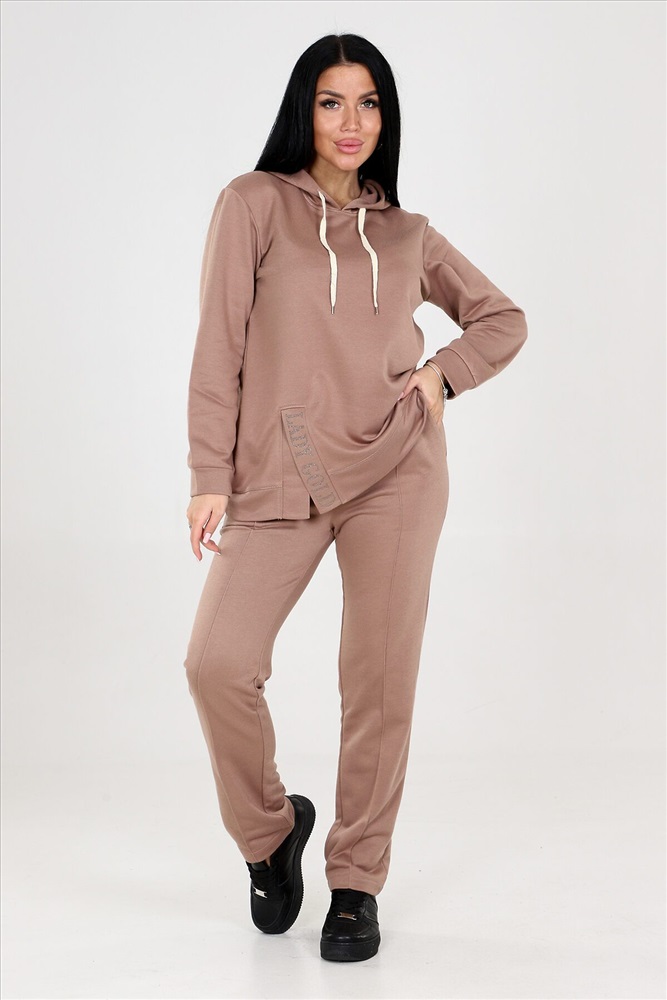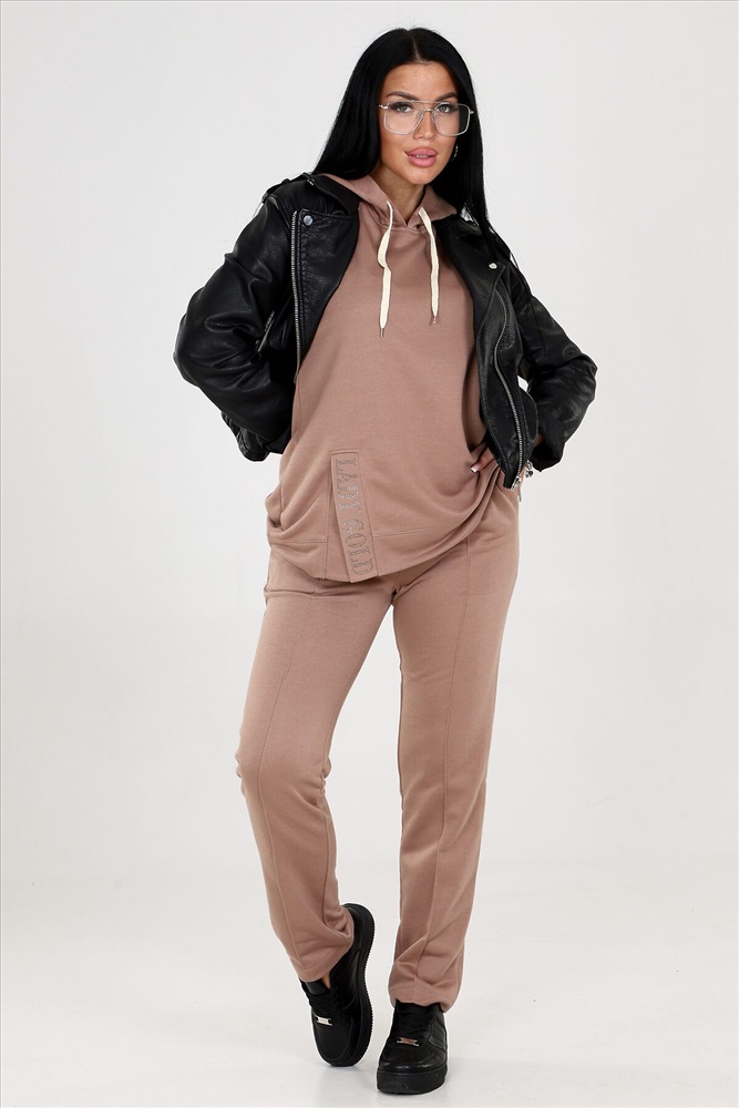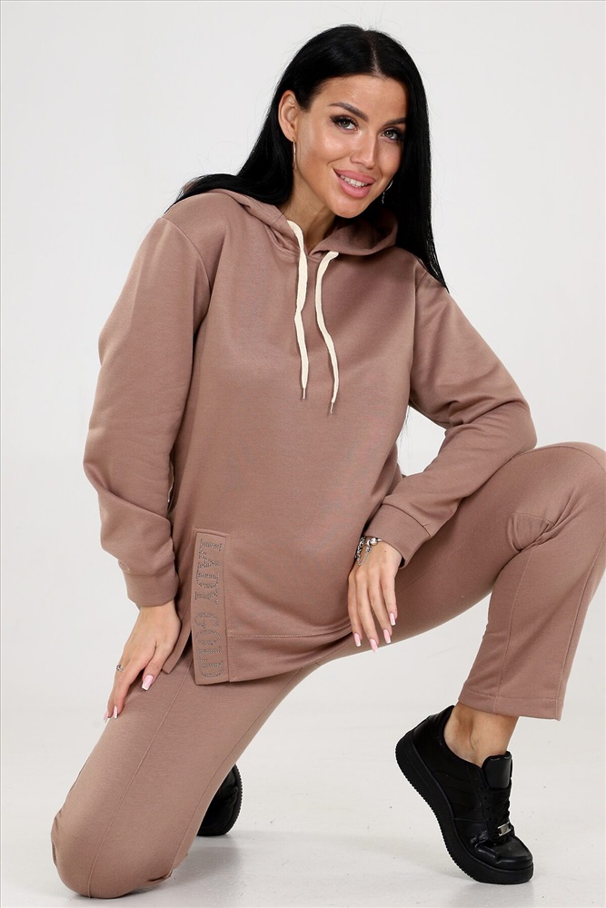 Женский костюм двойка с брюками выполнен из ткани футер 3-х нитка. Представлен в двух расцветках коричневом и бирюзовом, чтобы соответствовать различным предпочтениям наших клиентов. Этот костюм идеально подходит для женщин, которые ценят комфорт и стиль. Костюм имеет широкий размерный ряд с 46 по 60, чтобы обеспечить максимальную возможность выбора и подходить к каждой фигуре. Туника с капюшоном. Разрез туники оформлен стразами, придающими блеск и привлекательность. Это прекрасная деталь, которая подчеркнет вашу индивидуальность и притянет взгляды окружающих. Брюки этого костюма оснащены резинкой, что обеспечивает идеальную посадку и комфорт в носке. Вы будете ощущать себя уверенно и свободно, благодаря оптимальной посадке брюк.