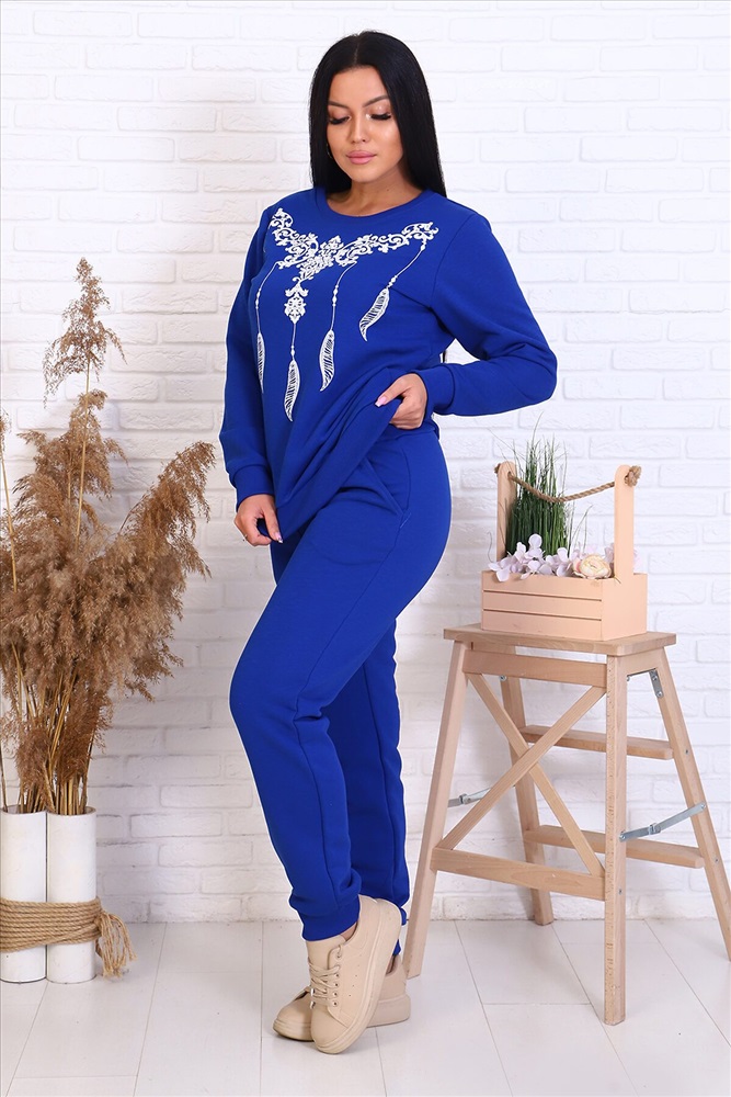 ID товара: 880979 Состав: 65% Хлопок, 35% Полиэстер Сезон: Демисезон Длина: Полная Фасон: Полуприлегающий Рукав: длинные Крой брючин: Зауженный Рисунок: Фантазийный Тип карманов: В шве Декоративные элементы: Принт Основная ткань: Футер 3-х нитка Стиль: повседневный Страна бренда: Россия Страна производства: Россия Костюм из теплого футера с нежным принтом на толстовке. Манжет и горловина из кашкорсе. Брюки с карманами Комментарии к товару