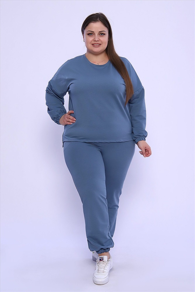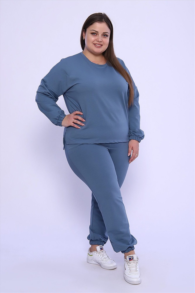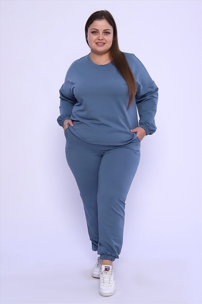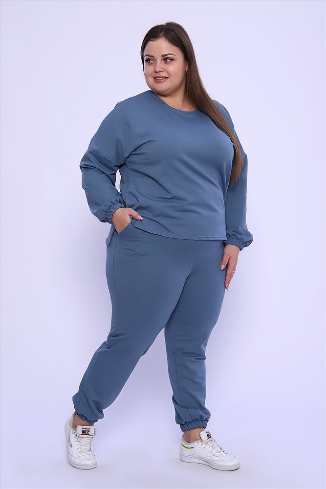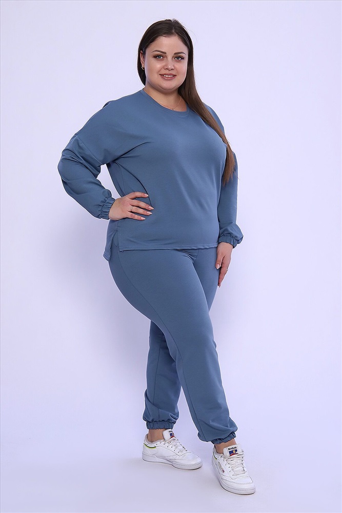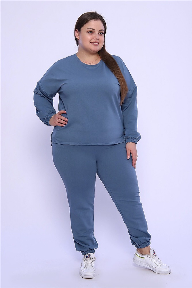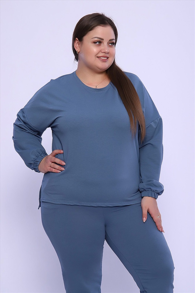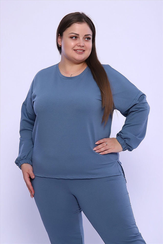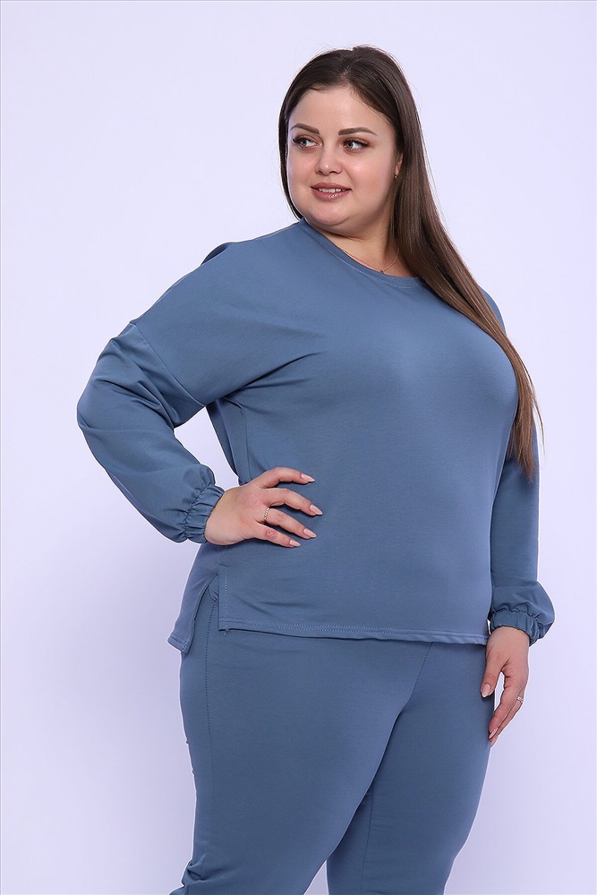 Повседневный наряд для шикарных женщин, толстовка с длинным рукавом на резинке, разрезы по бокам, брюки с карманами, резинка внизу, пояс обработан на поясной машине.