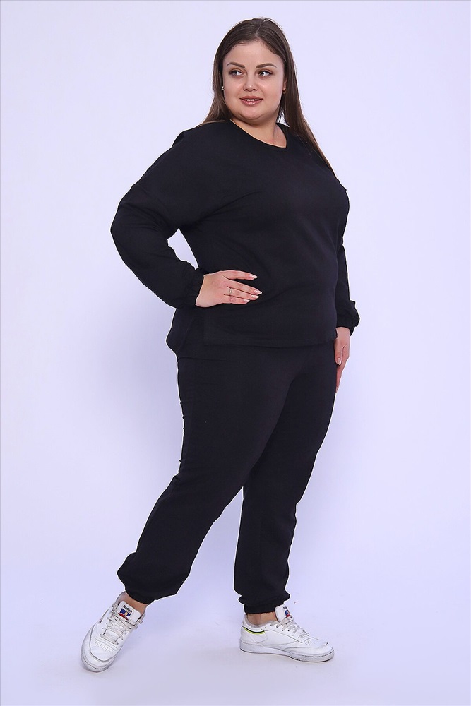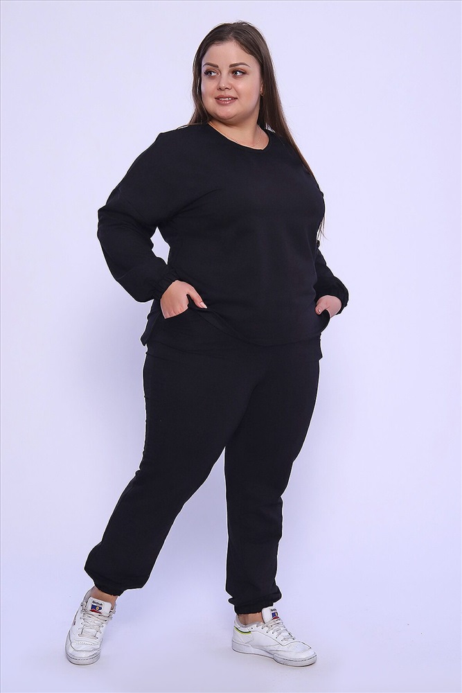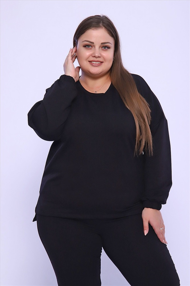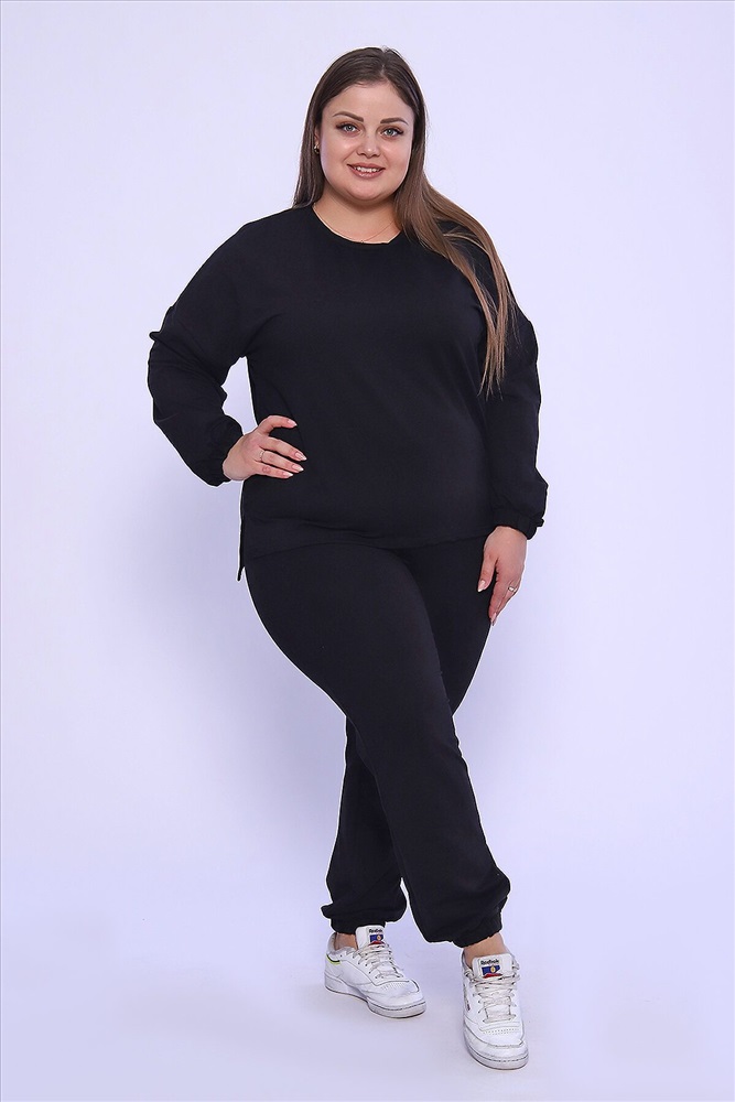 Страна производства: Россия Повседневный наряд для шикарных женщин, толстовка с длинным рукавом на резинке, разрезы по бокам, брюки с карманами, резинка внизу, пояс обработан на поясной машине.