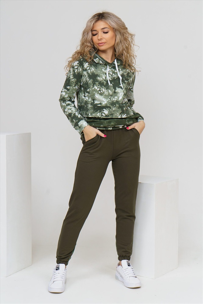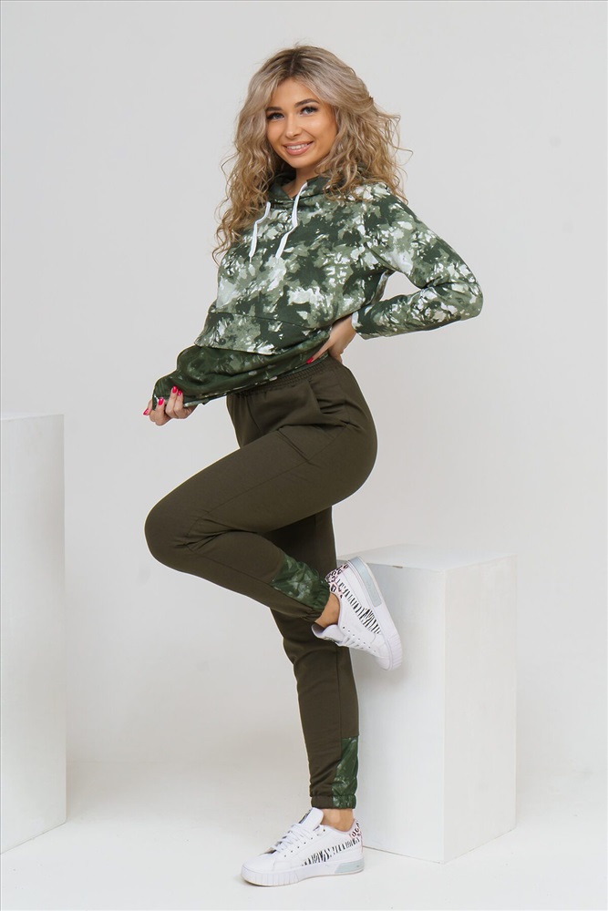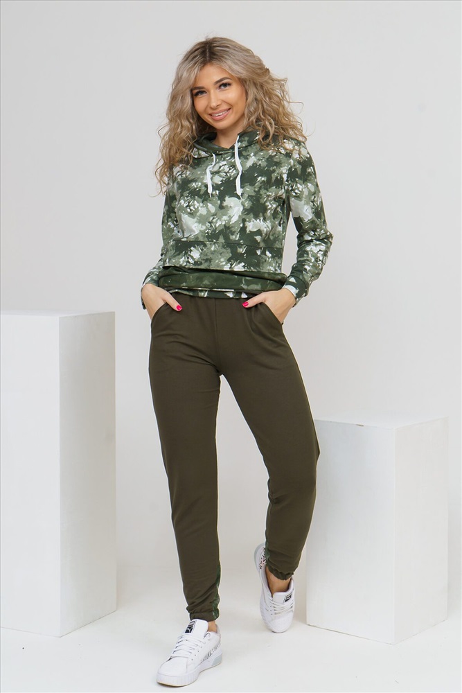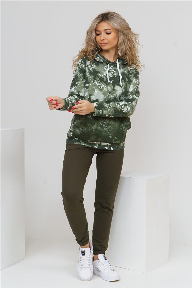 ID товара: 881482 Состав: 95% Хлопок, 5% Полиэстер Сезон: Демисезон Длина: Полная Фасон: Полуприлегающий Рукав: длинные Крой брючин: Зауженный Рисунок: Абстракция Тип карманов: В шве Декоративные элементы: Принт Основная ткань: Футер 2-х нитка Стиль: Спортивный Страна бренда: Россия Страна производства: Россия Женский костюм из футера и сетки состоит из толстовки и брюк. Толстовка с дизайном тай - дай, капюшоном, накладным карманом с клапаном и печатью на спинке, сочетается с модными брюками, создавая модный сет в стиле стритстайл. Комментарии к товару