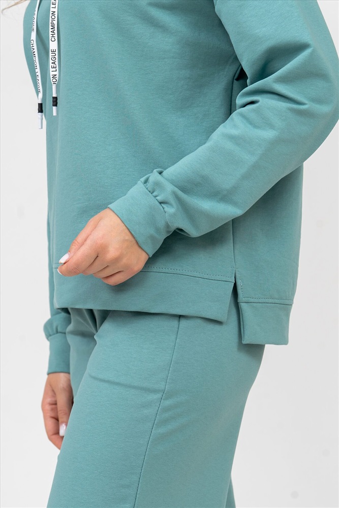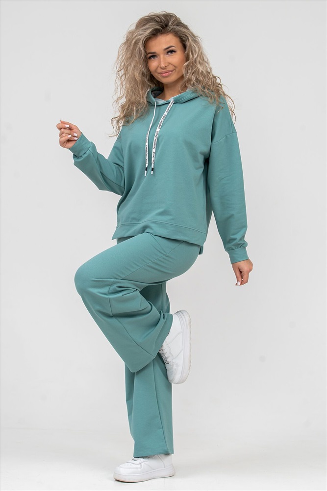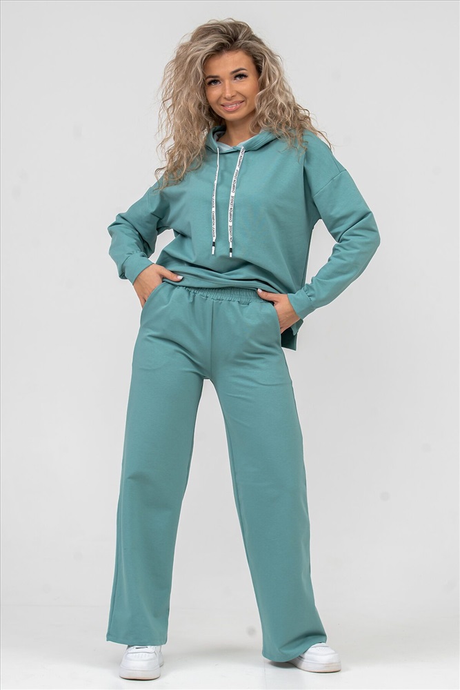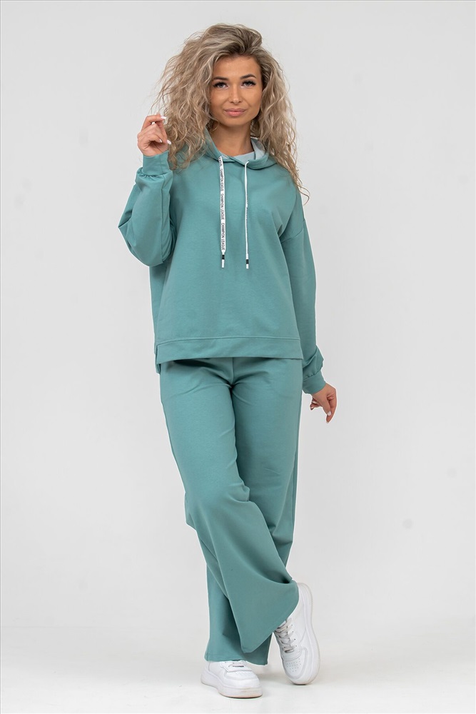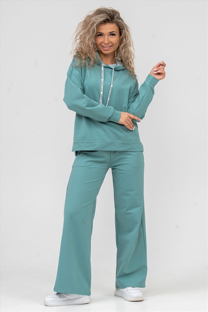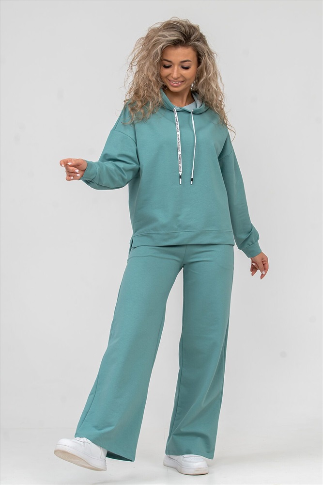 ID товара: 898660 Состав: 72% Хлопок, 20% Полиэстер, 8% Лайкра Сезон: Весна/Лето Длина: Средняя Фасон: Свободный крой Рукав: длинные Крой брючин: Широкий Тип карманов: есть Основная ткань: Хлопок Стиль: Спортивный Вид ткани: Футер 2-х нитка Страна бренда: Россия Страна производства: Россия Женский костюм 2-ка выполнен из футера высокого качества с хлопком и небольшим добавлением полиэстера и лайкры, что позволяет изделию не скатываться и оставлять идеальный внешний вид на долгое время. Костюм состоит из толстовки и брюк. Изделие выполнено в стиле умеренный oversize, модном и излюбленном тренде современности. Линия плеча спущена, а рукав и низ толстовки дополнены манжетами. Брюки палаццо с высокой посадкой, боковыми карманами, и поясом обработанным на специализированной поясной машине, делают их более удобными и комфортными. Свободный крой прекрасно будет смотреться на дамах с любой фигурой. Костюм модных расцветок - это удачный выбор для поездок в отпуск, занятия спортом, на пикник, для активного отдыха и прогулок по городу. А также гармонично сочетаться как с кроссовками, так и с туфлями, балетками или босоножками. Костюм такого плана - это то, что выделяет Вас среди других, придавая изюминку и непосредственность новомодным аутфитам. Ориентируясь по таблице замеров, обратите внимание, что замеры длины рукава проводились от точки основания шеи. Комментарии к товару