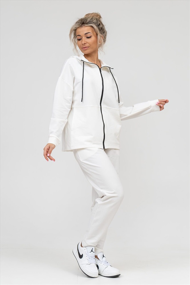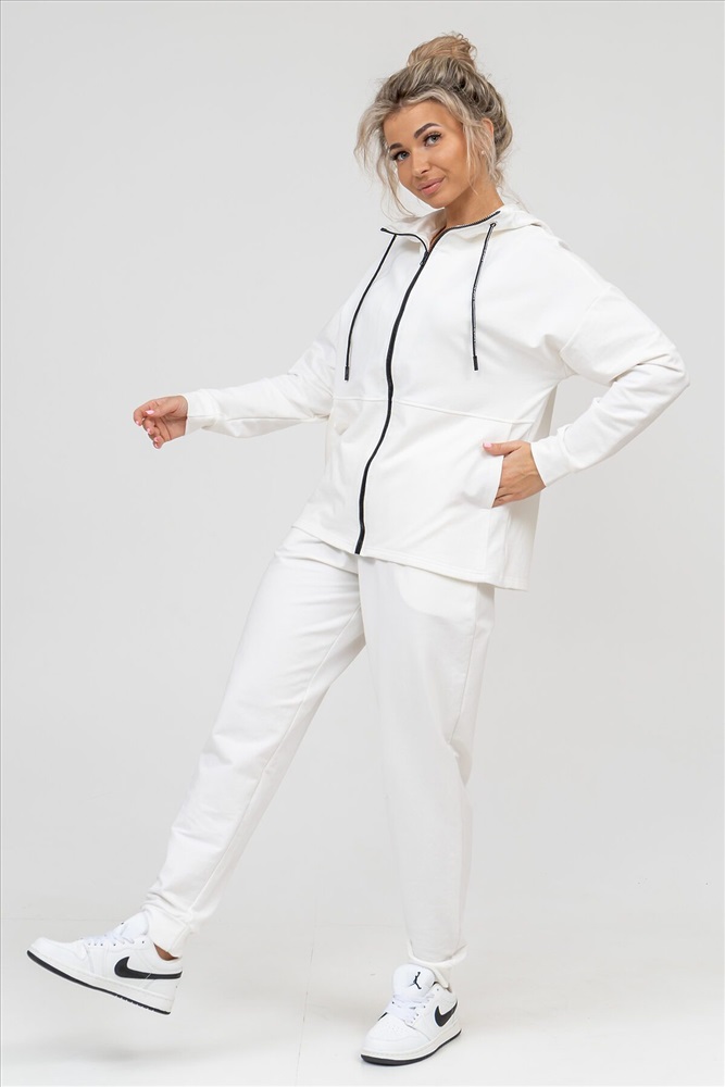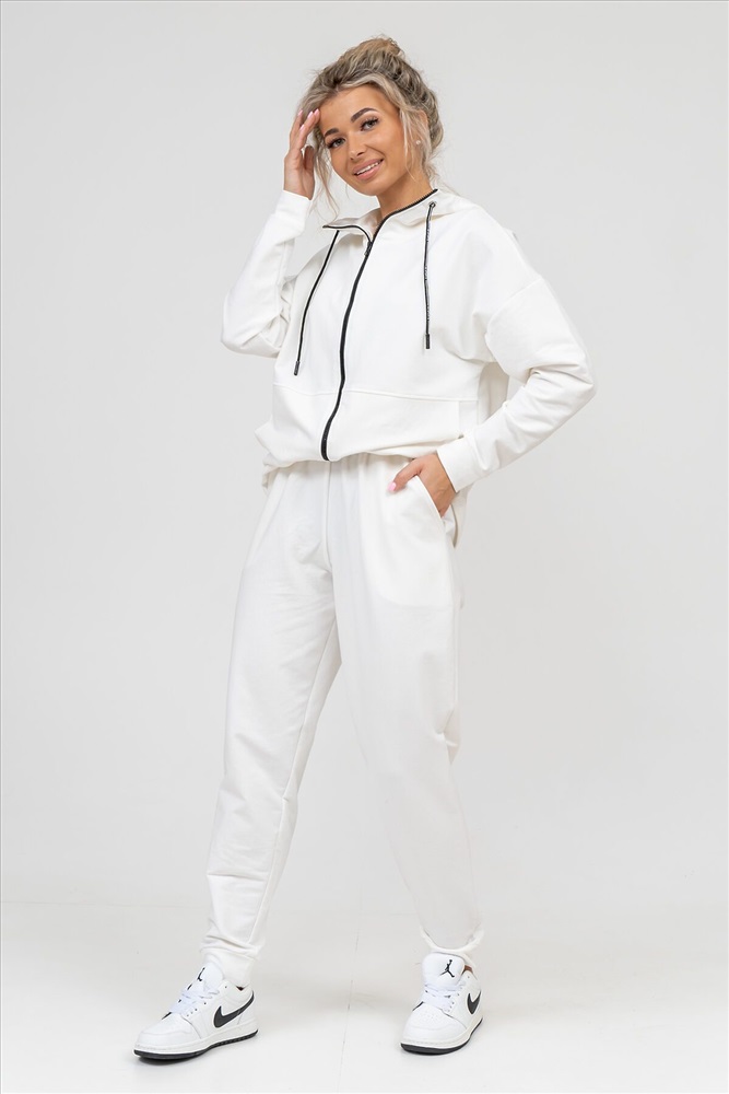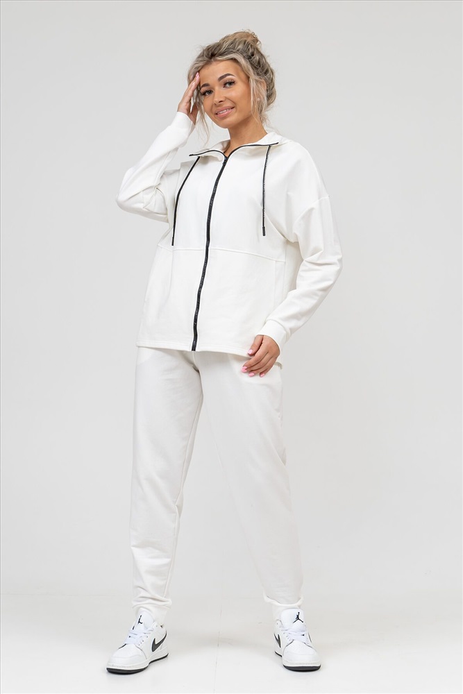 ID товара: 939847 Состав: 72% Хлопок; 20% Полиэстер; 8% Лайкра Сезон: Весна/Лето Длина: Средняя Фасон: Свободный крой Рукав: длинные Вид застежки: Молния Крой брючин: Зауженный Основная ткань: Хлопок Стиль: Спортивный Вид ткани: Футер 2-х нитка Страна бренда: Россия Страна производства: Россия Женский костюм выполнен из футера 2-х нитки высокого качества с хлопком и небольшим добавлением полиэстера и лайкры, что позволяет изделию не скатываться и оставлять идеальный внешний вид на долгое время. Костюм состоит из толстовки и брюк. Толстовка прямая, на молнии, с двойным капюшоном - стойкой и двумя накладными вместительными карманами. Манжеты брюк и толстовки выполнены из основного материала, а пояс на специализированной поясной машине, что делает швы крепкими, ровными и качественными. Костюм такого плана представлен в широкой размерной сетке, что позволяет выбрать его как девушке, так и женщине. Однотонный костюм модных расцветок будет удачным выбором для поездок в отпуск, на пикник, для школы, для активного отдыха и прогулок по городу. Костюм с брюками - это настоящая находка для тех, кто ценит свою индивидуальность. Ориентируясь по таблице замеров, обратите внимание, что замеры длины рукава проводились от точки основания шеи. Комментарии к товару