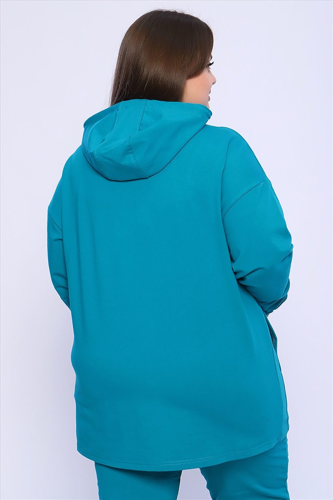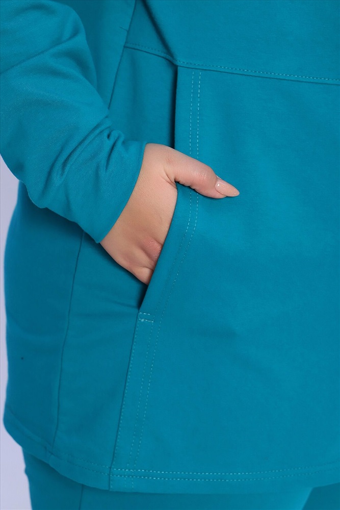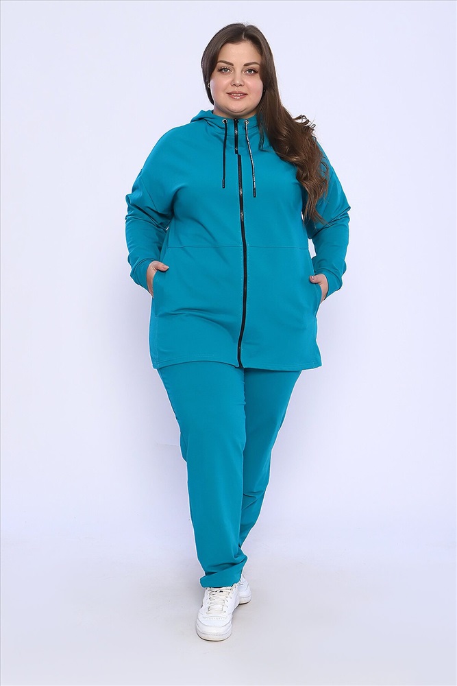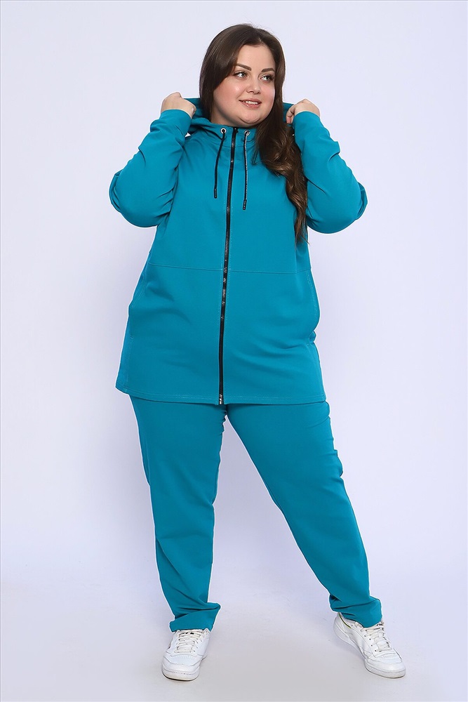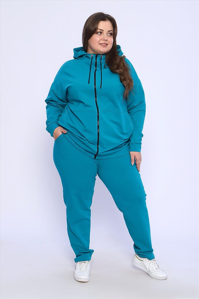 Женский костюм выполнен из футера 2-х нитки высокого качества с хлопком и небольшим добавлением полиэстера и лайкры, что позволяет изделию не скатываться и оставлять идеальный внешний вид на долгое время. Костюм состоит из толстовки и брюк. Толстовка прямая, на молнии, с двойным капюшоном - стойкой и двумя накладными вместительными карманами. Манжеты толстовки из основного материала. Брюки прямые, а пояс выполнен на специализированной поясной машине, что делает швы крепкими, ровными и качественными. Костюм такого плана представлен в широкой размерной сетке, что позволяет выбрать его как девушкам, так и женщинам корпулентных форм. Однотонный костюм модных расцветок будет удачным выбором для поездок в отпуск, на пикник, для активного отдыха и прогулок по городу. Костюм с брюками - это настоящая находка для тех, кто ценит свою индивидуальность, удобство и комфорт. Милые дамы, если Вам понравился костюм, но вы не можете найти свой размер в этой размерной сетке, то в модели 36660 вы обязательно его найдёте! Носите с удовольствием! Ориентируясь по таблице замеров, обратите внимание, что замеры длины рукава проводились от точки основания шеи.
