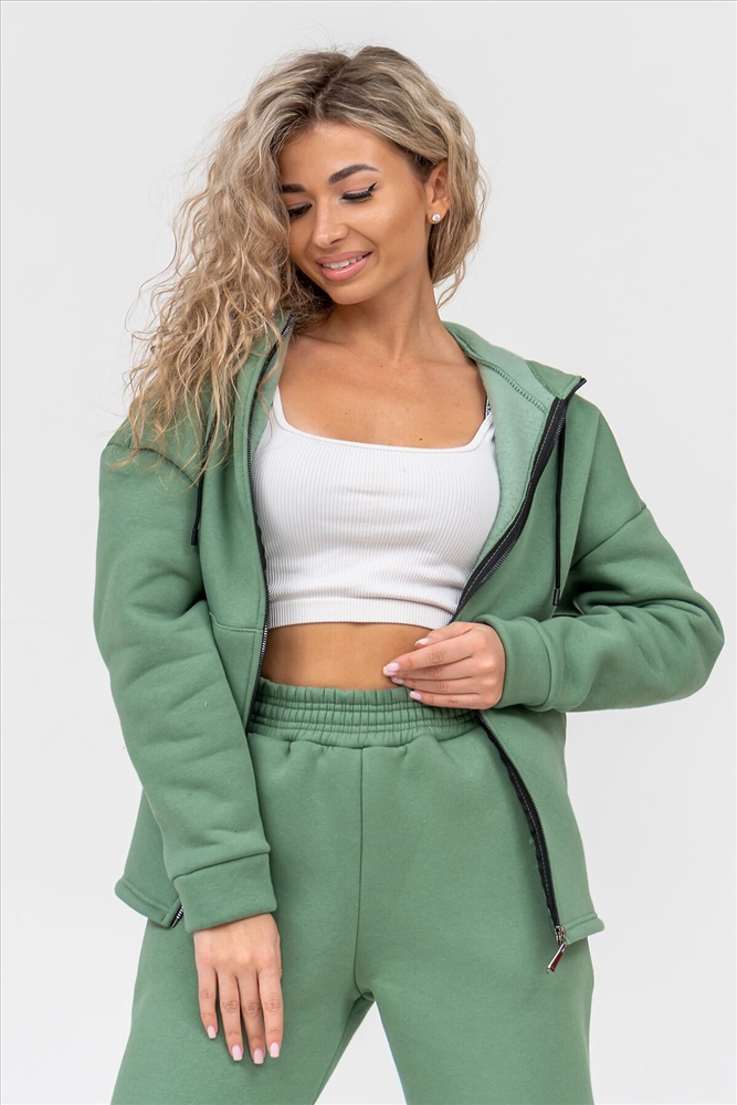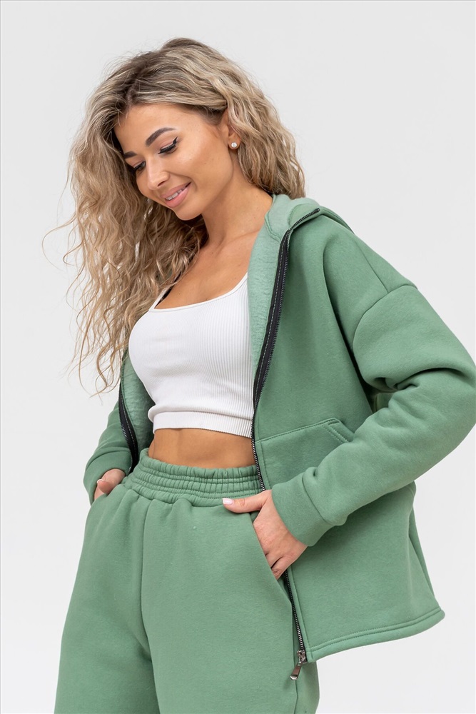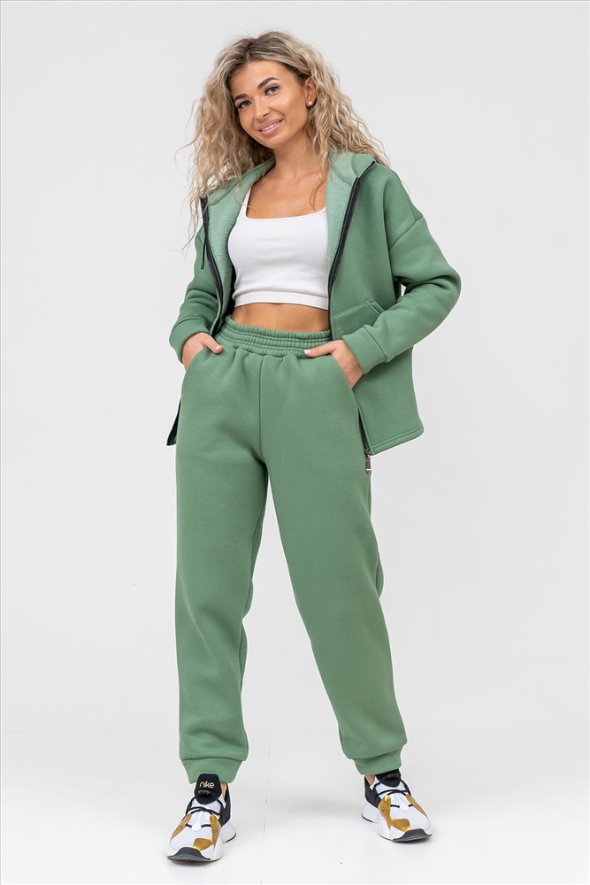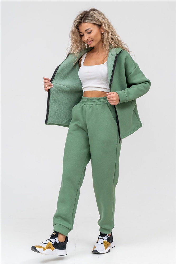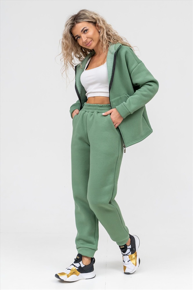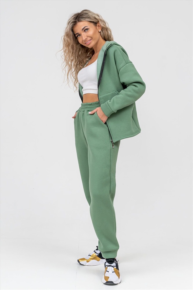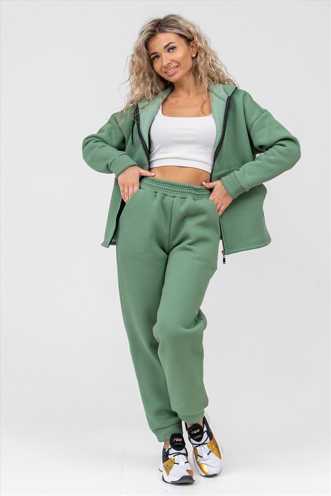 Модный женский костюм выполнен из качественного футера 3-нитки с начёсом, который обладает необыкновенной мягкостью, натуральностью, гипоаллергенностью и формоустойчивостью (при правильном уходе и стирке 30-40 С), и обеспечивает максимальное удобство и комфорт при носке. Костюм состоит из современной zip hoodi свободного силуэта, которую дополняет: рукав с актуальной сейчас спущенной линией плеча, удобные карманы кенгуру и манжеты из основной ткани. Молния выполнена из качественных пластиковых зубьев закрепленных на прочной тесьме, что обеспечивает плавное скольжение бегунка. А также удобные брюки, которые дополнены вместительными боковыми карманами, манжетами и поясом выполненным на специализированной поясной машине. Длина рукава указана от точки основания шеи. Костюм двойка прекрасно подходит для вечерних и повседневных образов, для прогулок, а также в качестве женского костюма для дома. Костюм такого плана не сковывает движения, поэтому идеально подойдёт для зимнего вида спорта: лыжи, сноуборд, коньки... Наши костюмы согреют Вас на прогулке и сделают комфортным путешествие. А большой и тёплый капюшон защитит Вас от непогоды. Внимание!!! При носке плотный начёс костюма приминается и может оставлять следы на одежде, это проходит после 1-2 стирки.