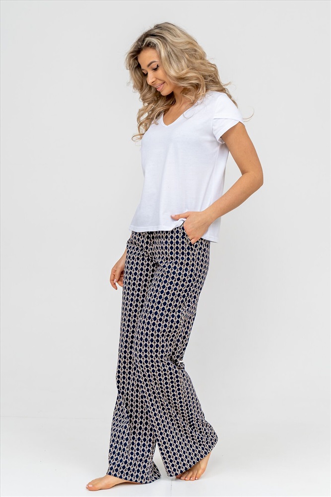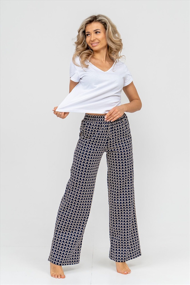 Производитель: НАТАЛИ ID товара: 987527 Состав: 100% Хлопок Сезон: Весна/Лето Длина: Полная Фасон: Свободный Рукав: короткие Крой брючин: Широкий Рисунок: Узор Тип карманов: С отрезным бочком Декоративные элементы: Принт Основная ткань: Хлопок Стиль: повседневный Вид ткани: Кулирка Страна бренда: Россия Страна производства: Россия