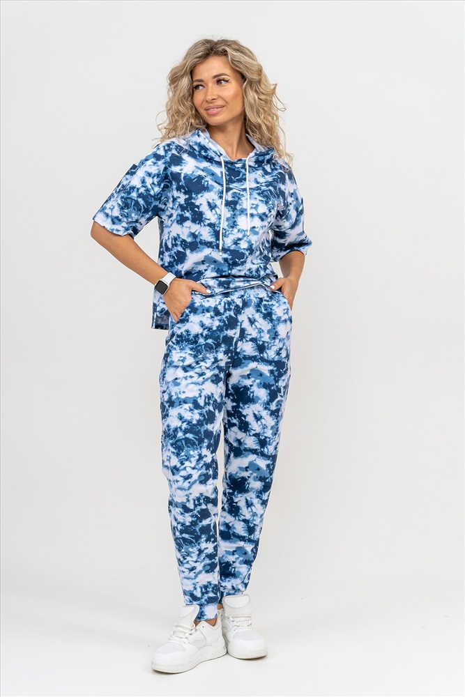 Страна производства: Россия Женский костюм выполнен из футера высокого качества с хлопком и небольшим добавлением полиэстера и лайкры, что позволяет изделию не скатываться и оставлять идеальный внешний вид на долгое время. Костюм состоит из толстовки и брюк. Толстовка с капюшоном и шнурком. Линия плеча спущена, рукав укороченный, по бокам имеются небольшие разрезы. Брюки представлены с вместительными боковыми карманами. Манжеты брюк выполнены из основного материала, а пояс на специализированной поясной машине, что делает швы ровными и качественными. Свободный крой прекрасно будет смотреться на дамах с любыми формами. Костюм такого плана представлен в широкой размерной сетке, что позволяет выбрать его как девушке, так и женщине. Однотонный костюм модных расцветок будет удачным выбором для поездок в отпуск, на пикник, для школы, для активного отдыха и прогулок по городу. Будет гармонично сочетаться как с кроссовками, так и с туфлями, балетками или босоножками. Используя эту модель в качестве домашнего костюма, Вы поймёте, что это именно тот самый идеальный вариант, в котором будете себя чувствовать удобно, комфортно и современно. Костюм с брюками - это настоящая находка для тех, кто ценит свою индивидуальность! Ориентируясь по таблице замеров, обратите внимание, что замеры длины рукава проводились от точки основания шеи.