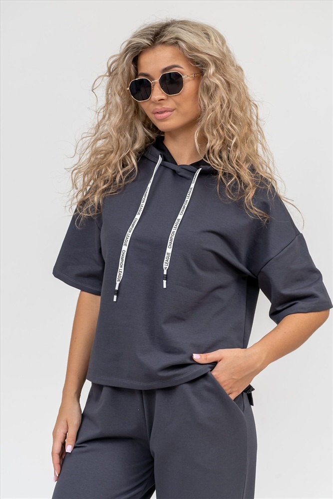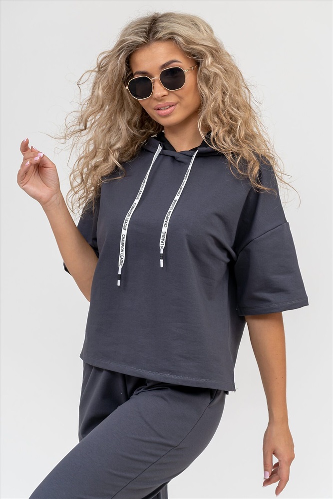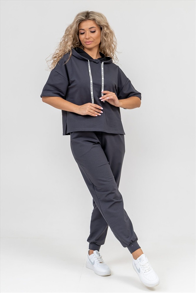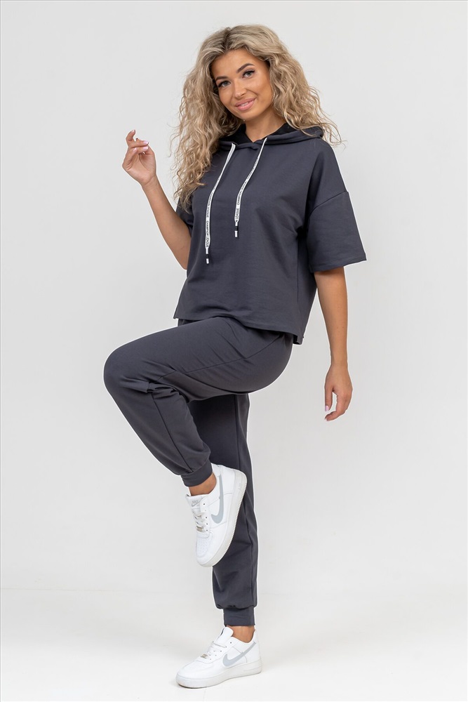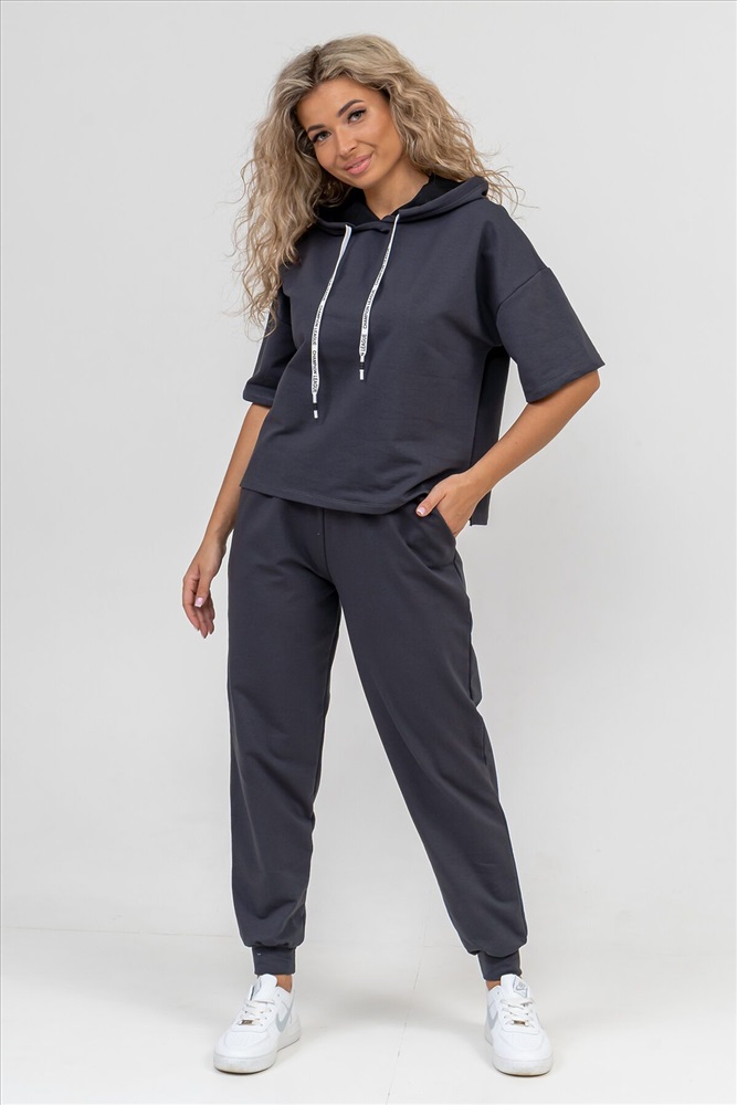 Женский костюм выполнен из футера высокого качества с хлопком и небольшим добавлением полиэстера и лайкры, что позволяет изделию не скатываться и оставлять идеальный внешний вид на долгое время. Костюм состоит из толстовки и брюк. Толстовка с капюшоном и шнурком. Линия плеча спущена, рукав укороченный, по бокам имеются небольшие разрезы. Брюки представлены с вместительными боковыми карманами. Манжеты брюк выполнены из основного материала, а пояс на специализированной поясной машине, что делает швы ровными и качественными. Свободный крой прекрасно будет смотреться на дамах с любыми формами. Костюм такого плана представлен в широкой размерной сетке, что позволяет выбрать его как девушке, так и женщине. Однотонный костюм модных расцветок будет удачным выбором для поездок в отпуск, на пикник, для школы, для активного отдыха и прогулок по городу. Будет гармонично сочетаться как с кроссовками, так и с туфлями, балетками или босоножками. Используя эту модель в качестве домашнего костюма, Вы поймёте, что это именно тот самый идеальный вариант, в котором будете себя чувствовать удобно, комфортно и современно. Костюм с брюками - это настоящая находка для тех, кто ценит свою индивидуальность! Фурнитура данного изделия (шнурок) может отличаться от фото! Ориентируясь по таблице замеров, обратите внимание, что замеры длины рукава проводились от точки основания шеи.