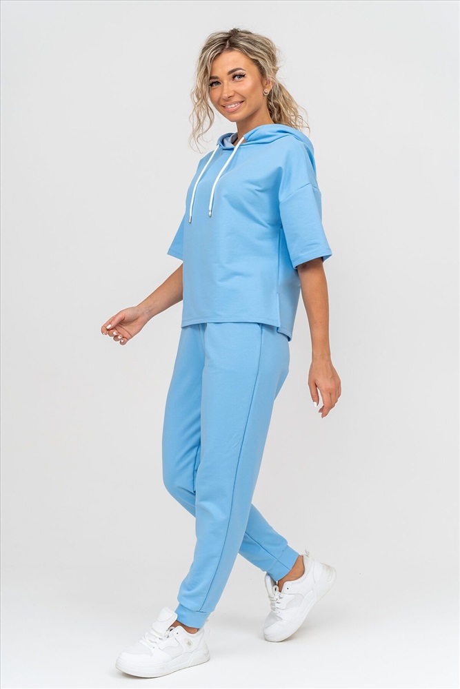 Страна производства: Россия Женский костюм выполнен из футера высокого качества с хлопком и небольшим добавлением полиэстера и лайкры, что позволяет изделию не скатываться и оставлять идеальный внешний вид на долгое время. Костюм состоит из толстовки и брюк. Толстовка с капюшоном и шнурком. Линия плеча спущена, рукав укороченный, по бокам имеются небольшие разрезы. Брюки представлен с вместительными боковыми карманами. Манжеты брюк выполнены из основного материала, а пояс на специализированной поясной машине, что делает швы ровными и качественными. Свободный крой прекрасно будет смотреться на дамах с любыми формами. Костюм такого плана представлен в широкой размерной сетке, что позволяет выбрать его как девушке, так и женщине. Однотонный костюм модных расцветок будет удачным выбором для поездок в отпуск, на пикник, для школы, для активного отдыха и прогулок по городу. Будет гармонично сочетаться как с кроссовками, так и с туфлями, балетками или босоножками. Используя эту модель в качестве домашнего костюма, Вы поймёте, что это именно тот самый идеальный вариант, в котором будете себя чувствовать удобно, комфортно и современно. Костюм с брюками - это настоящая находка для тех, кто ценит свою индивидуальность! Ориентируясь по таблице замеров, обратите внимание, что замеры длины рукава проводились от точки основания шеи.