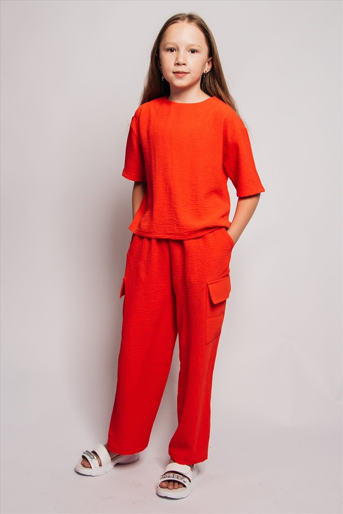 ID товара: 901126 Состав: 80% Хлопок, 15% Вискоза, 5% Эластан Сезон: Весна/Лето Длина: Средняя Фасон: Прямой Рукав: короткие Крой брючин: Прямой Тип карманов: Накладные Основная ткань: Хлопок Стиль: Повседневный Вид ткани: Сингапур Страна бренда: Россия Страна производства: Россия Костюм для девочки летний - это настоящая находка для модных детей подростков, состоящий из футболки и брюк! Он выполнен из легкой и дышащей ткани - что обеспечивает комфорт даже в самые жаркие дни. Изделие не требует специального ухода: достаточно машинной стирки на деликатном режиме при 40 градусах. Этот стильный, яркий комплект станет самой любимой вещью в гардеробе вашего ребенка. Штанишки можно сочетать с красивой футболкой, широкой толстовкой на молнии, спортивной блузой и удобной обувью, в этом прогулочном костюме ребенку будет комфортно, уютно и тепло в любую погоду. Футболка для девочки прямого силуэта со спущеным коротким рукавом. Горловина круглая обработана обтачкой из основного полотна. Низ изделия и рукавов обработан швом в подгибку. Брюки широкие с завышенной линией талии, силуэт расширяется сразу же от пояса и дальше остается прямым. На боковых швах брюк выполнен накладной карман с клапаном из основного материала. Комментарии к товару