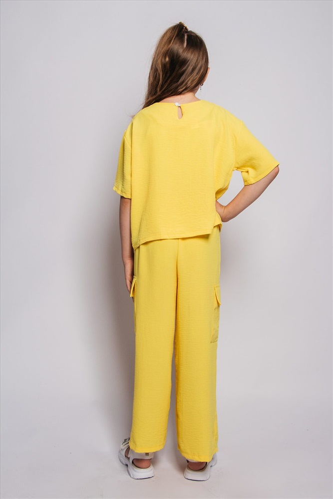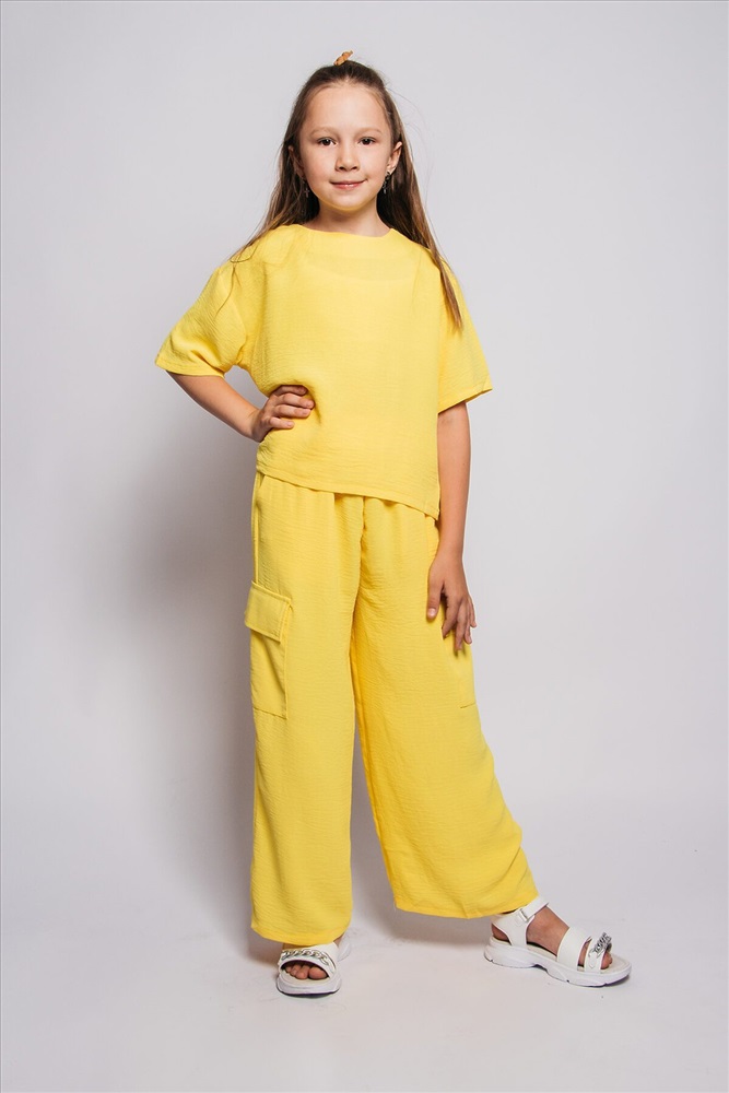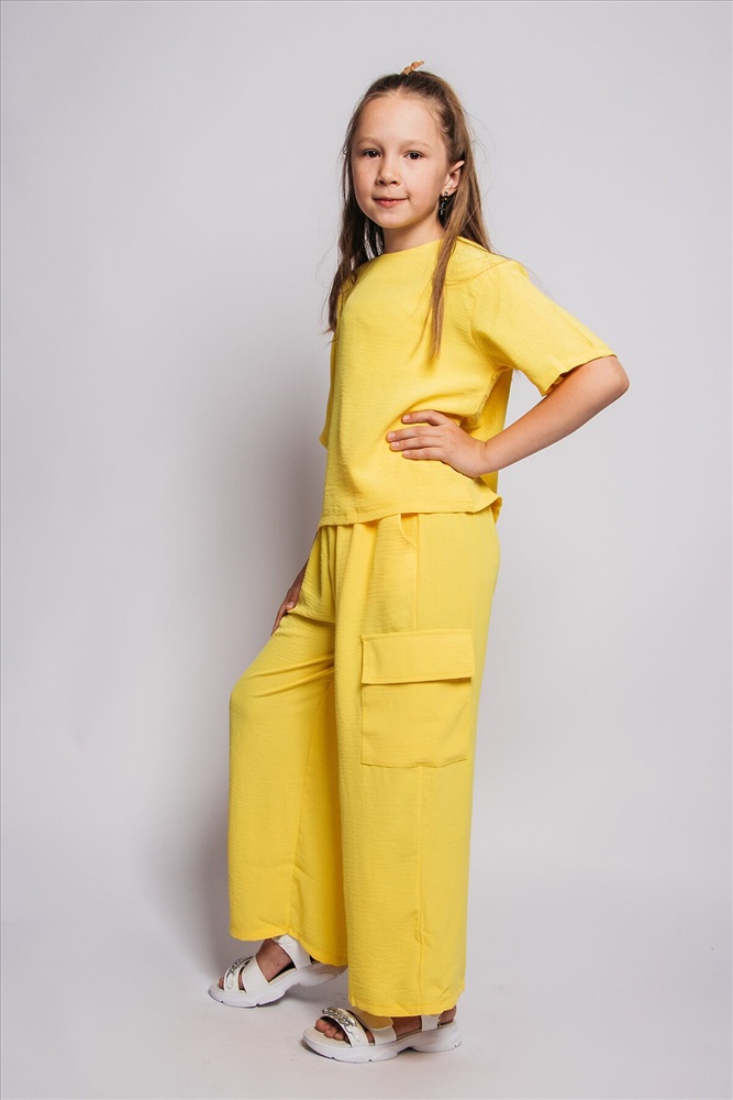 ID товара: 901127 Состав: 80% Хлопок, 15% Вискоза, 5% Эластан Сезон: Весна/Лето Длина: Средняя Фасон: Свободный крой Рукав: Короткий Крой брючин: Широкий Тип карманов: Накладные Основная ткань: Хлопок Стиль: Повседневный Вид ткани: Сингапур Страна бренда: Россия Страна производства: Россия Костюм для девочки летний - это настоящая находка для модных детей подростков, состоящий из футболки и брюк! Он выполнен из легкой и дышащей ткани - что обеспечивает комфорт даже в самые жаркие дни. Изделие не требует специального ухода: достаточно машинной стирки на деликатном режиме при 40 градусах. Этот стильный, яркий комплект станет самой любимой вещью в гардеробе вашего ребенка. Штанишки можно сочетать с красивой футболкой, широкой толстовкой на молнии, спортивной блузой и удобной обувью, в этом прогулочном костюме ребенку будет комфортно, уютно и тепло в любую погоду. Футболка для девочки прямого силуэта со спущеным коротким рукавом. Горловина круглая обработана обтачкой из основного полотна. Низ изделия и рукавов обработан швом в подгибку. Брюки широкие с завышенной линией талии, силуэт расширяется сразу же от пояса и дальше остается прямым. На боковых швах брюк выполнен накладной карман с клапаном из основного материала. Комментарии к товару