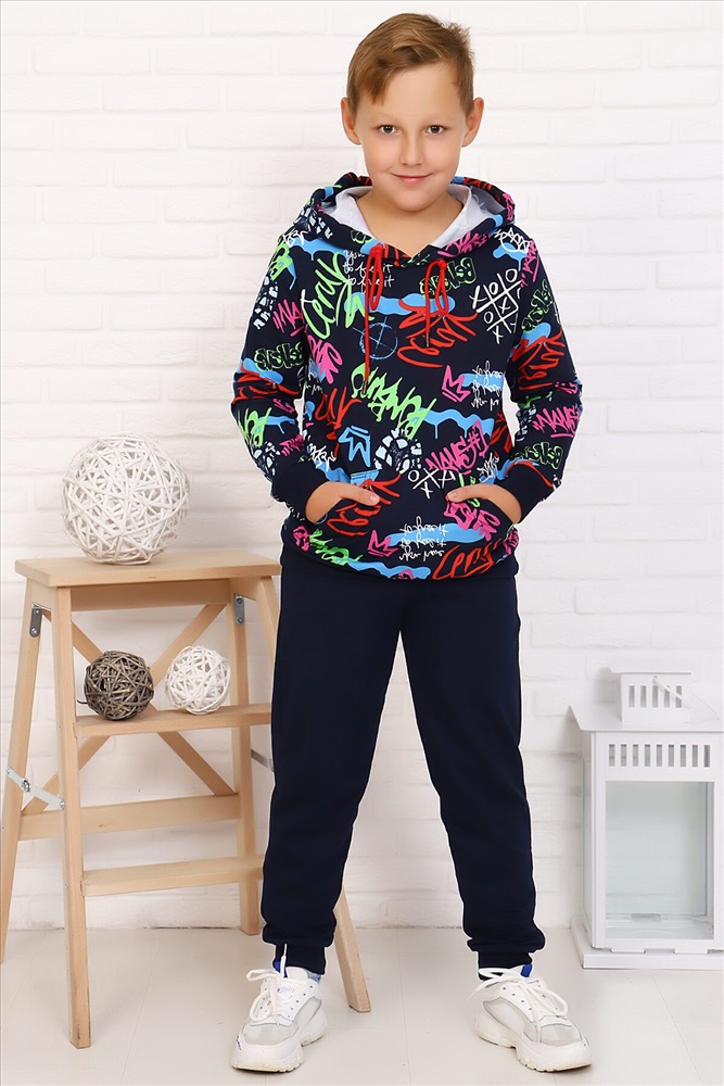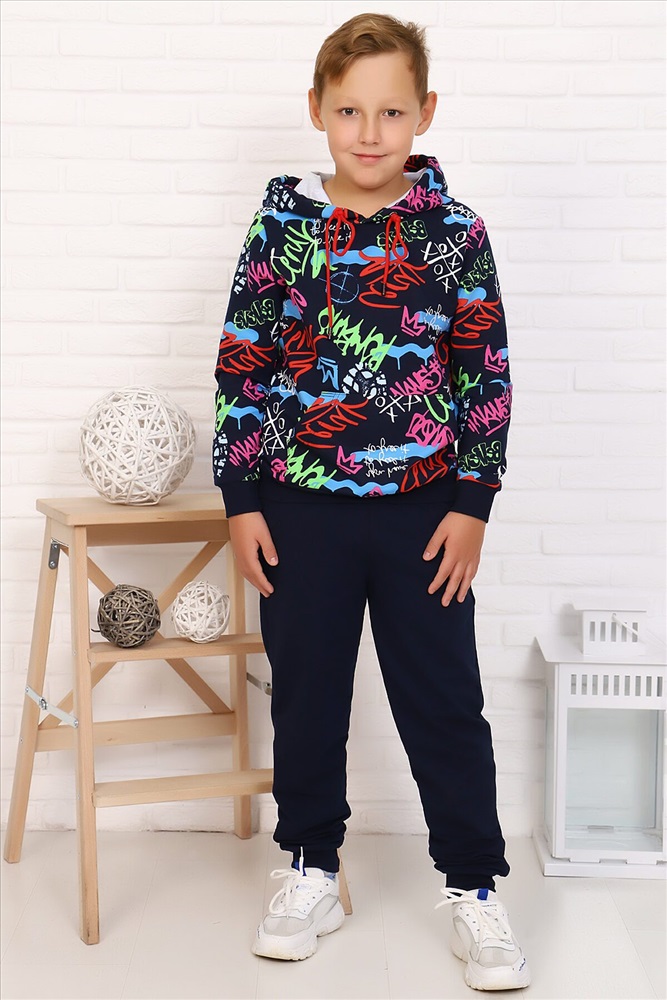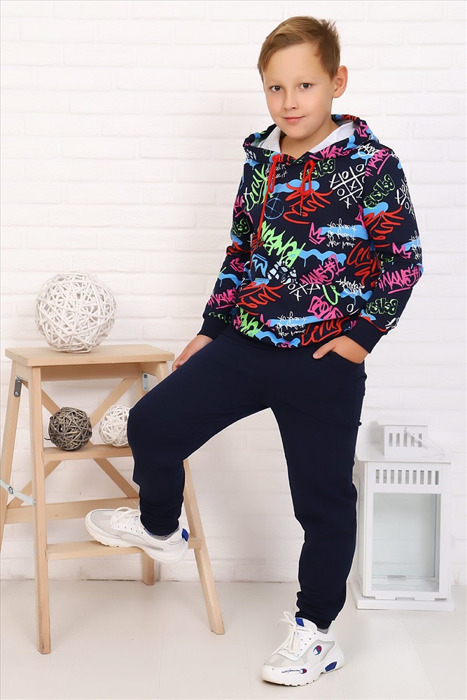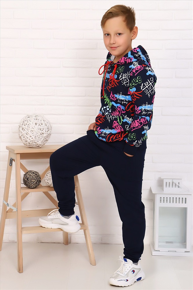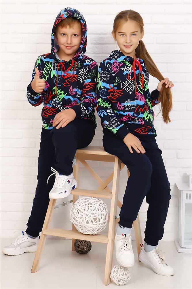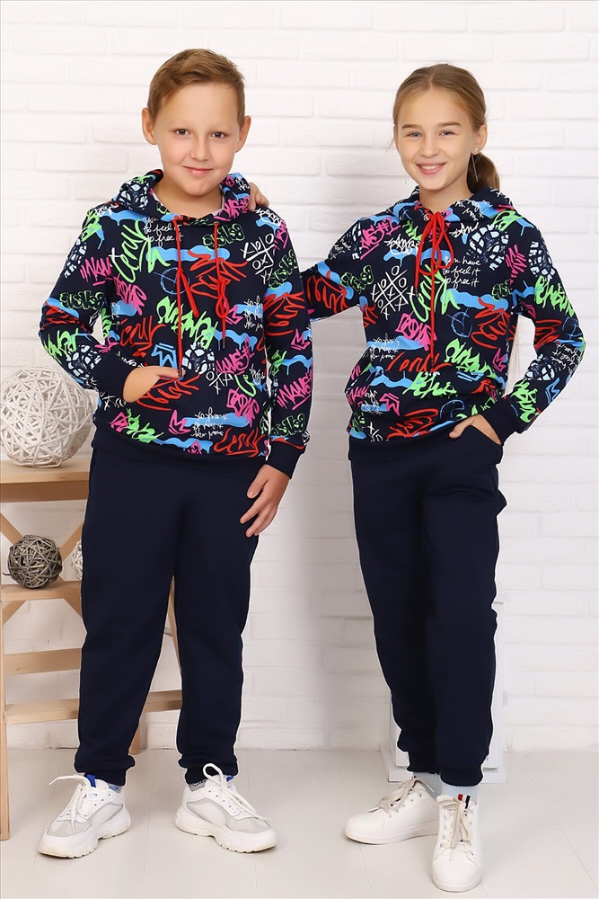 ID товара: 883107 Состав: Хлопок 72%, Полиэстер 20%, Лайкра 8% Сезон: Осень/Зима Длина: Полная Фасон: Свободный крой Рукав: длинные Крой брючин: Зауженный Рисунок: Надпись Тип карманов: В шве Декоративные элементы: С капюшоном Основная ткань: Футер с лайкрой 2-х нитка Стиль: Спортивный Страна бренда: Россия Страна производства: Россия Легкий спортивный костюм для подростков. Свободная толстовка с капюшоном, на полочке расположен карман-кенгуру. Рукав и низ на манжете. Брюки с карманами, на манжете. Подходит как для девочек, так и для мальчиков. Комментарии к товару