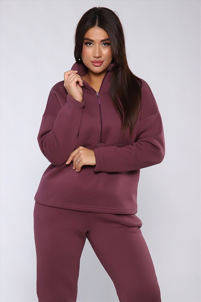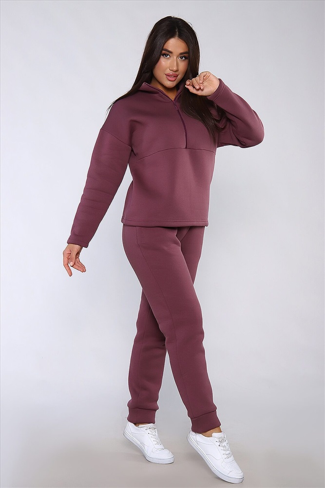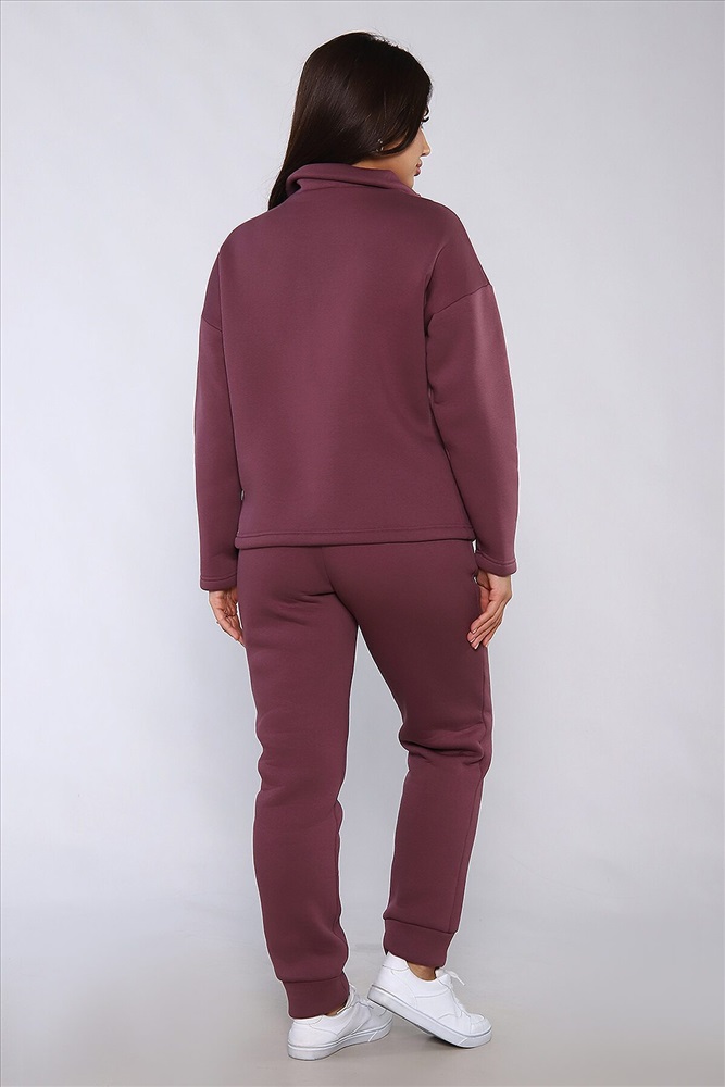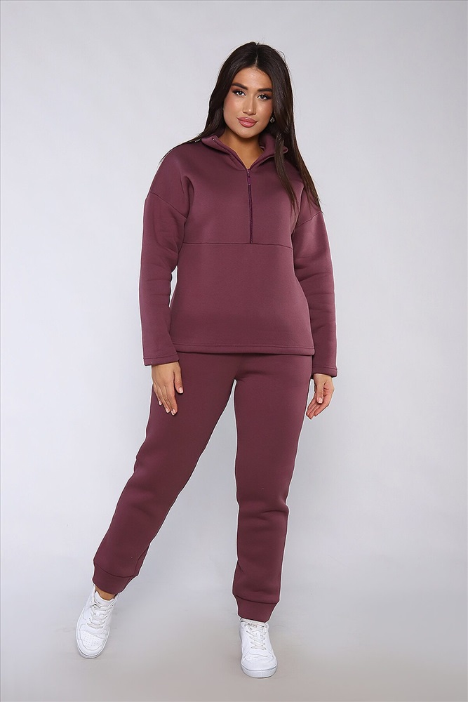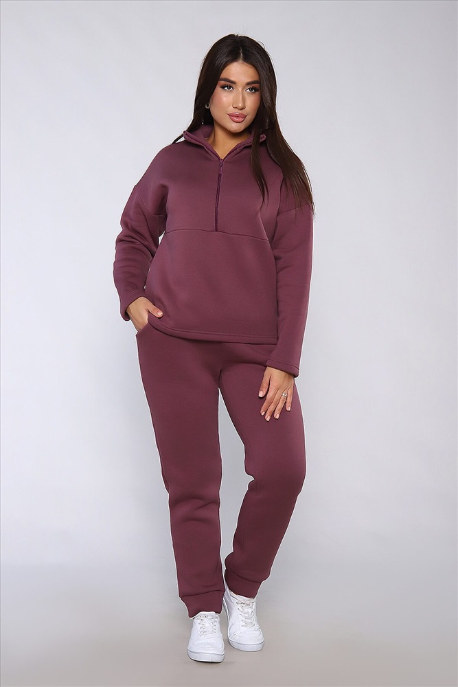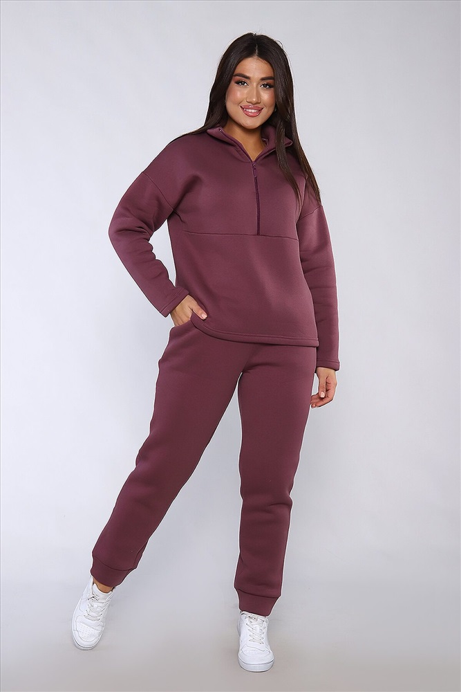ID товара: 940355 Состав: 65% Хлопок; 35% Полиэстер Сезон: Весна/Лето Длина: Средняя Фасон: Свободный крой Рукав: длинные Крой брючин: Зауженный Тип карманов: С отрезным бочком Основная ткань: Хлопок Стиль: Спортивный Вид ткани: Футер 3-х нитка Страна бренда: Россия Страна производства: Россия Костюм женский из футера 3-х нитки с начесом, толстовка прямого силуэта, полочка отрезная с короткой молнией, воротник стойка, длинный рукав. Брюки прямого покроя на манжете с карманами. Комментарии к товару