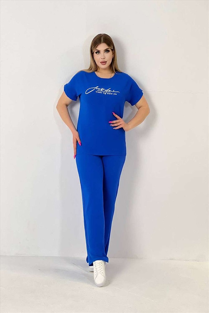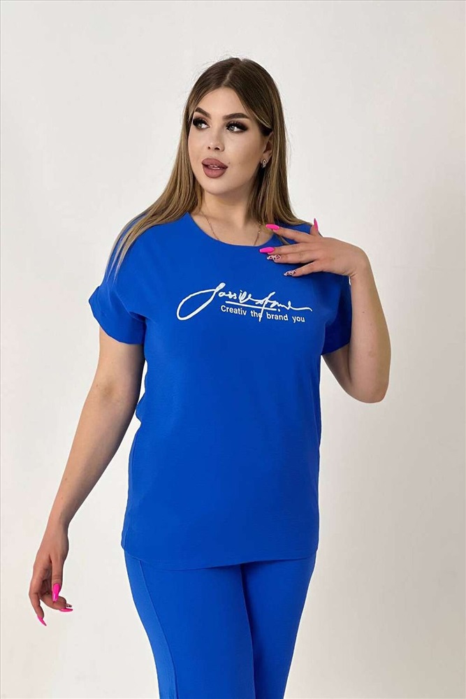 ID товара: 1003194 Состав: 100 % Полиэстер Сезон: Весна/Лето Фасон: Полуприлегающий Рукав: Короткие Крой брючин: Прямой Рисунок: Надпись Вид ткани: Сингапур Страна бренда: Россия Страна производства: Россия Женская двойка прямого кроя. Футболка костюма с коротким цельнокроеным рукавом, округлой горловиной и принтом на передней полочке, брюки с поясом на резинке (4 см) и карманами. Комплект достаточно свободный, поэтому подойдет для повседневной носки, как и для дома, так и на прогулку. Костюм представлен в двух приятных расцветках, выполнен из легкой ткани - сингапур, что идеально подойдет для жаркой погоды, красивый, но при этом простой и удобный. Комментарии к товару