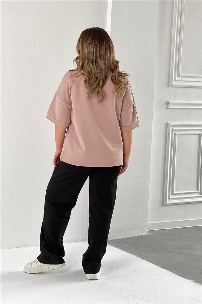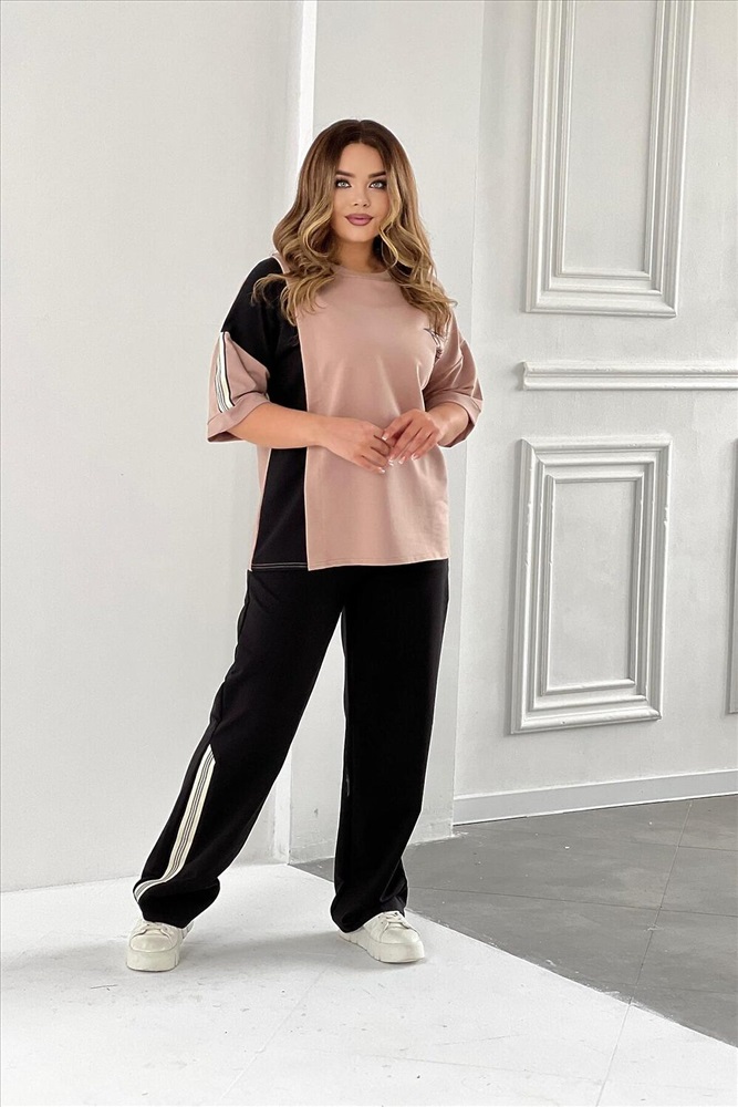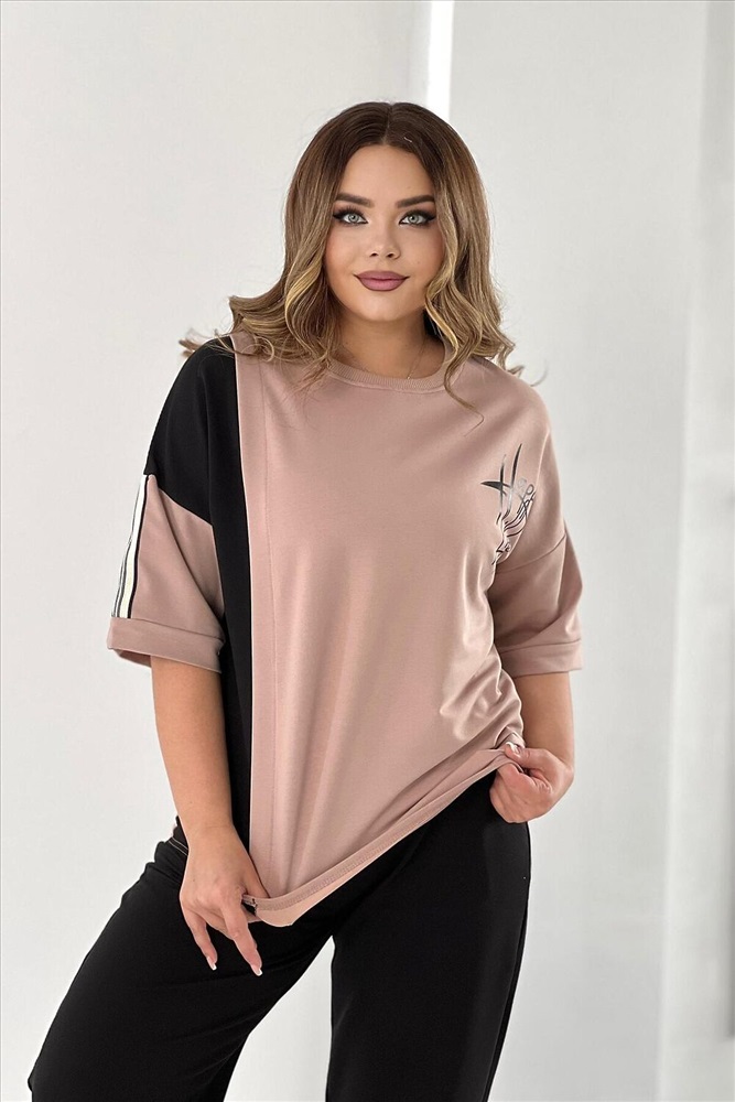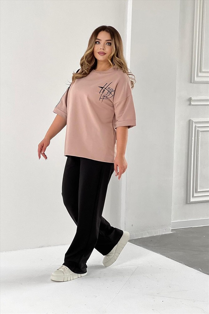 ID товара: 988882 Состав: 85% Хлопок; 15% Лайкра Сезон: Весна/Лето Длина: Полная Фасон: Свободный Рукав: короткие Крой брючин: Широкий Рисунок: Надпись Тип карманов: В шве Декоративные элементы: Принт Основная ткань: Хлопок Стиль: повседневный Вид ткани: Футер с лайкрой 2-х нитка Страна бренда: Россия Страна производства: Россия Стильный и модный костюм из футера двунитки - идеальный выбор для летних прогулок. Этот костюм состоит из футболки и брюк, декорирован вшивной лентой на рукаве и снизу штанов. Легкий и свободный крой делает его идеальным для повседневного использования. Вы будете выглядеть стильно и молодежно, независимо от вашего возраста. Футер - это тонкий трикотажный материал, который отлично подходит для демисезонного периода. Он приятен к телу, не сковывает движения и обеспечивает комфорт в течение всего дня. Спортивный костюм представлен в нескольких цветовых вариантах с модным принтом, который придаст вашему образу шик и оригинальность. Этот комплект подойдет как для отдыха на природе, так и для дома. Комментарии к товару
