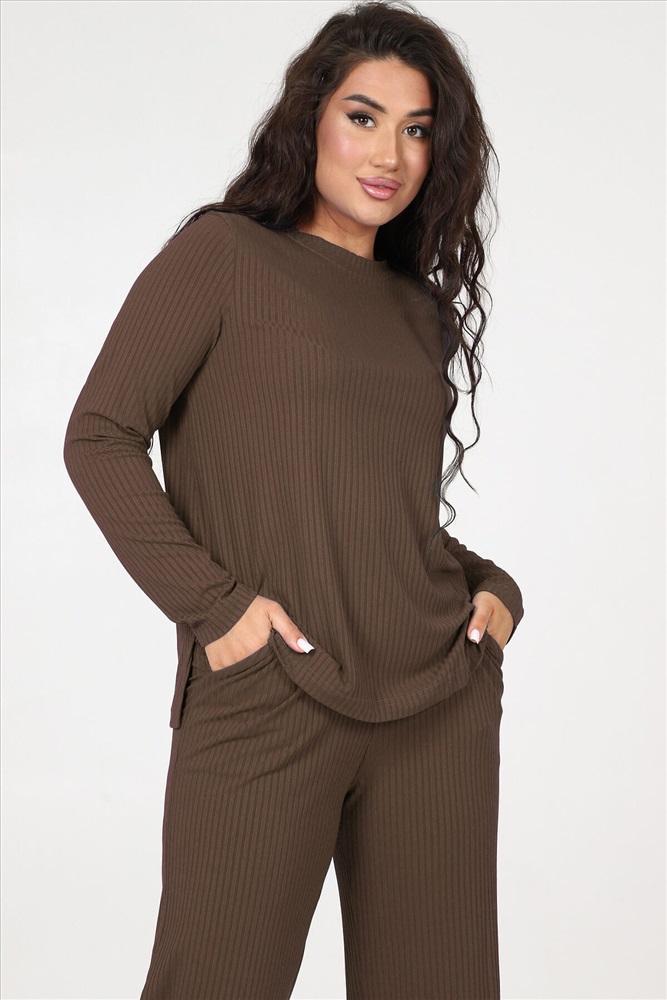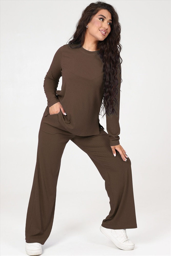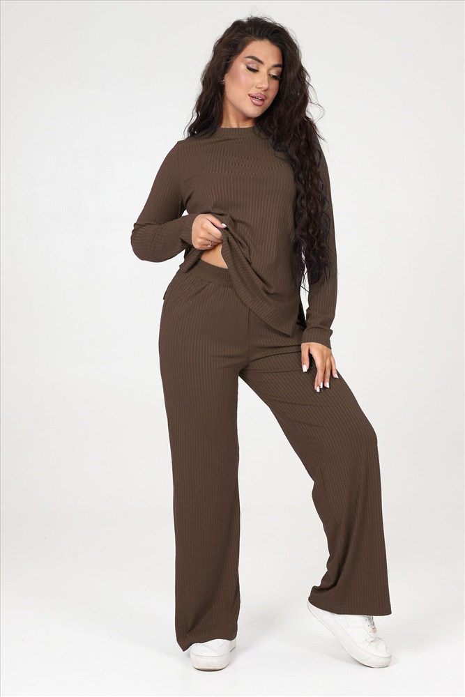 Страна производства: Россия Стильный женский трикотажный костюм из ткани лапши. Комплект состоит из кофты с длинным рукавом и разрезами снизу по бокам и брюк широкого кроя с поясом на резинке и карманами по бокам. Модель подойдет для вечернего и повседневного образа, отлично сочетается как с кроссовками, так и с туфлями. Костюм отлично подходит для прогулки, выезда на природу или похода в ресторан. Удобный свободный вверх отличный вариант на лето, приятные к телу штаты удобны и практичны.