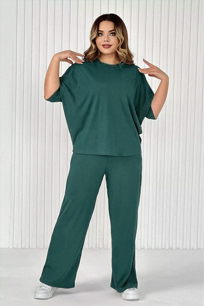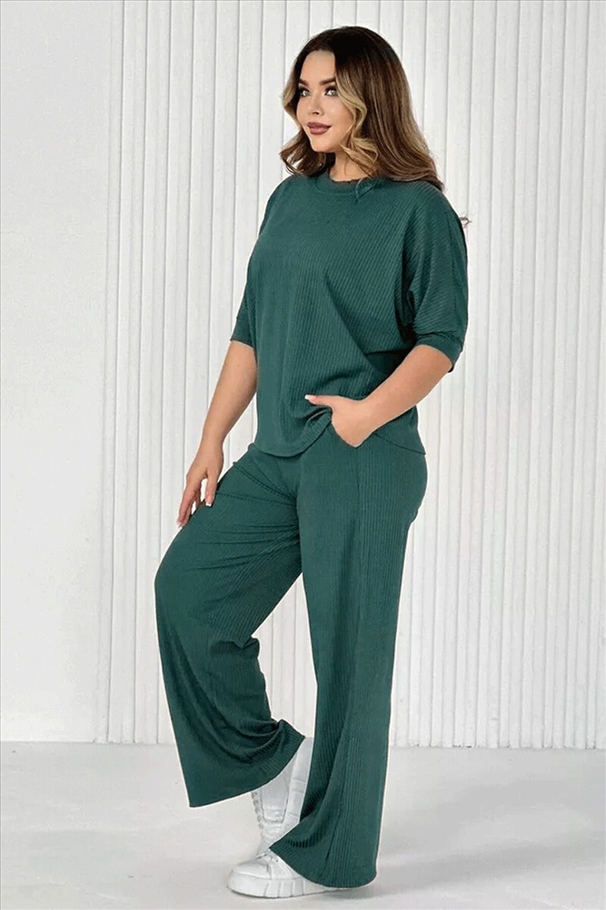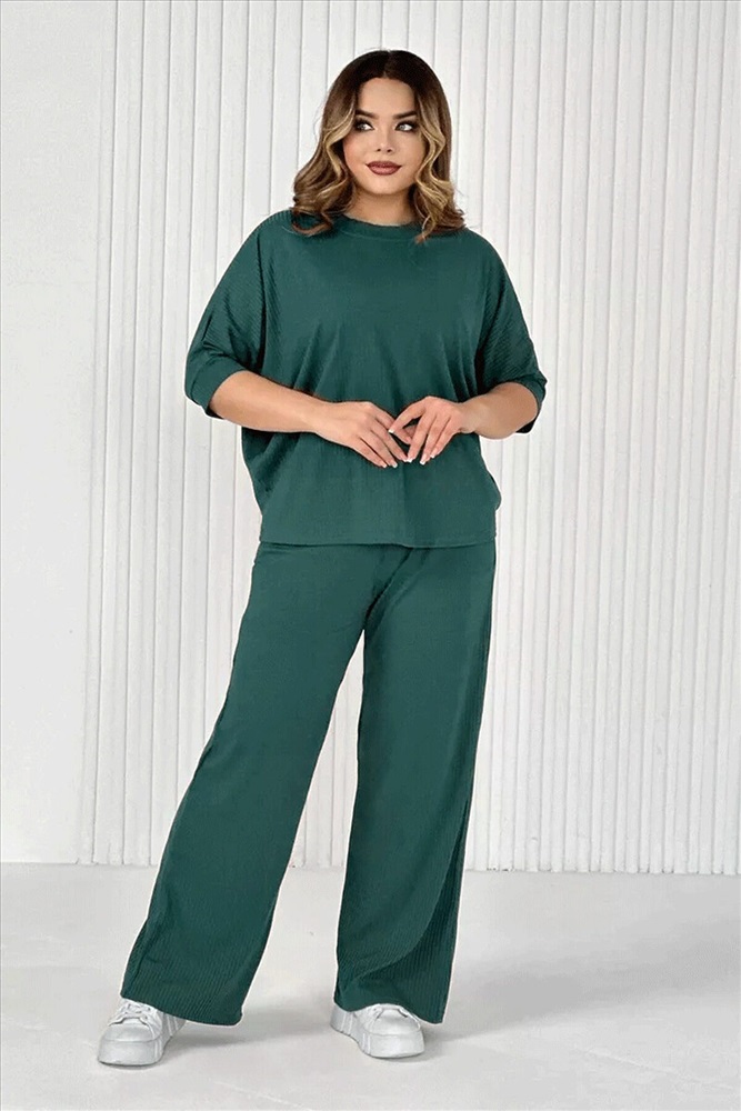 Стильный женский трикотажный костюм из ткани лапши. Комплект состоит из футболки - летучая мышь и брюк широкого кроя с поясом на резинке и карманами по бокам. Модель подойдет для вечернего и повседневного образа, отлично сочетается как с кроссовками, так и с туфлями. Костюм отлично подходит для прогулки, выезда на природу или похода в ресторан. Удобный свободный вверх отличный вариант на лето, приятные к телу штаты удобны и практичны. Длина рукава указана от горловины, а футболка костюма достаточно свободная, поэтому подойдет на любую фигуру. Важно! Подбирая для себя нужный размер, смотрите на замеры брюк.