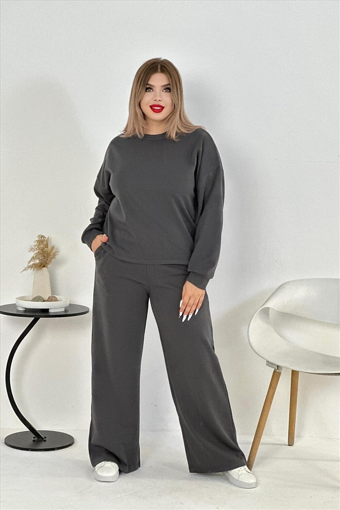 Страна производства: Россия Костюм спортивный женский двойка штаны + кофта выполнен из плотной ткани без начеса. Брюки с карманами и поясом на резинке, у кофты округлый воротник и длинный рукав на манжете. Комплект прямого свободного силуэта, Идеального подходит для повседневной носки.