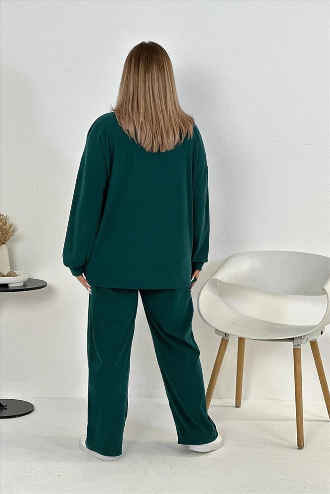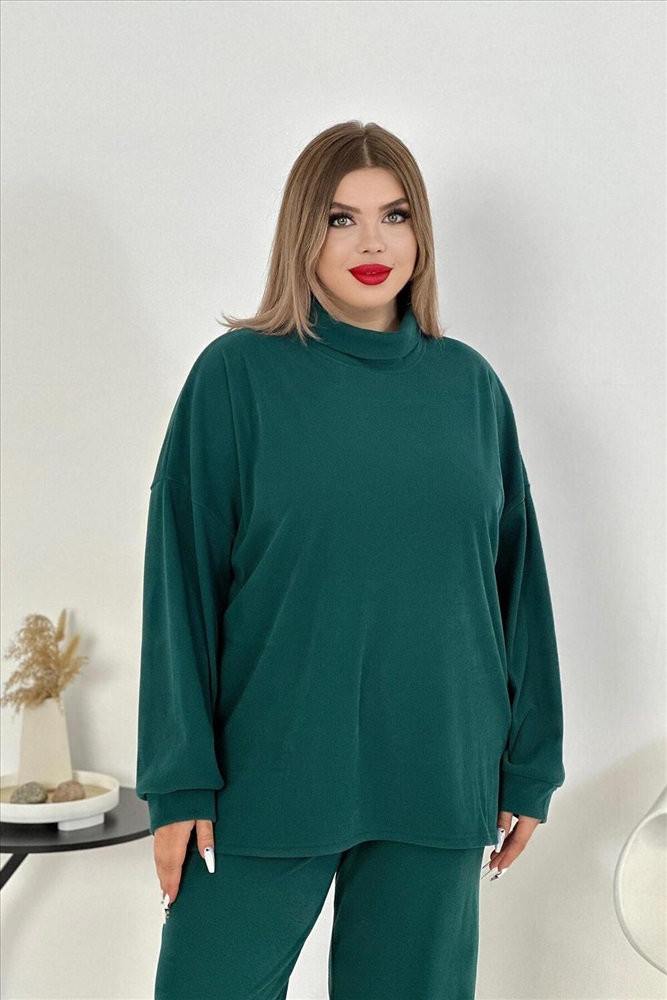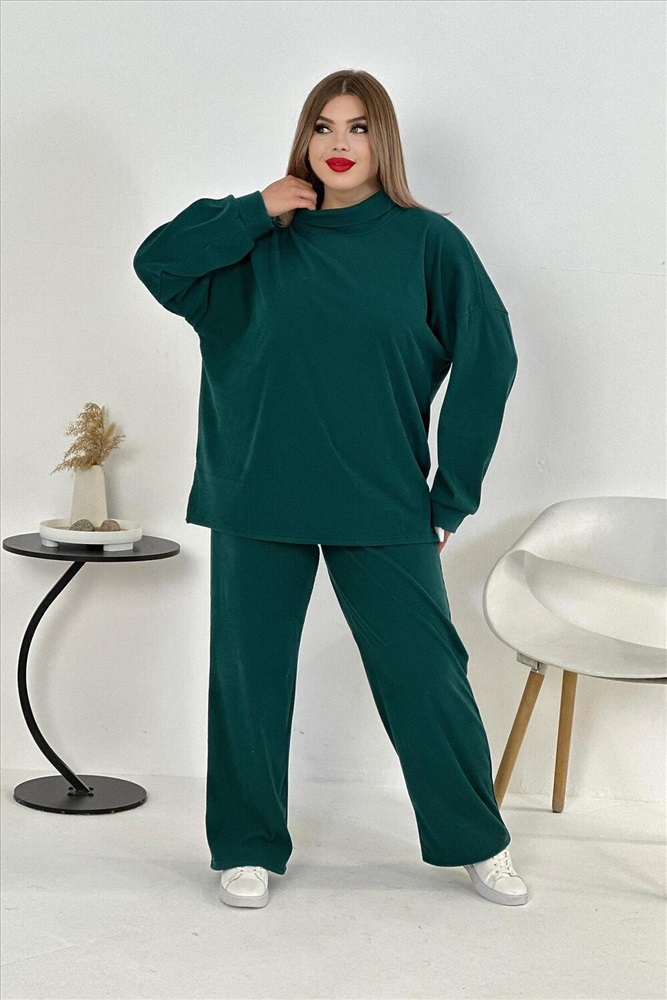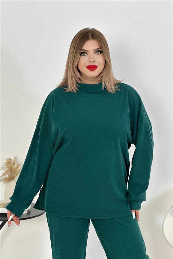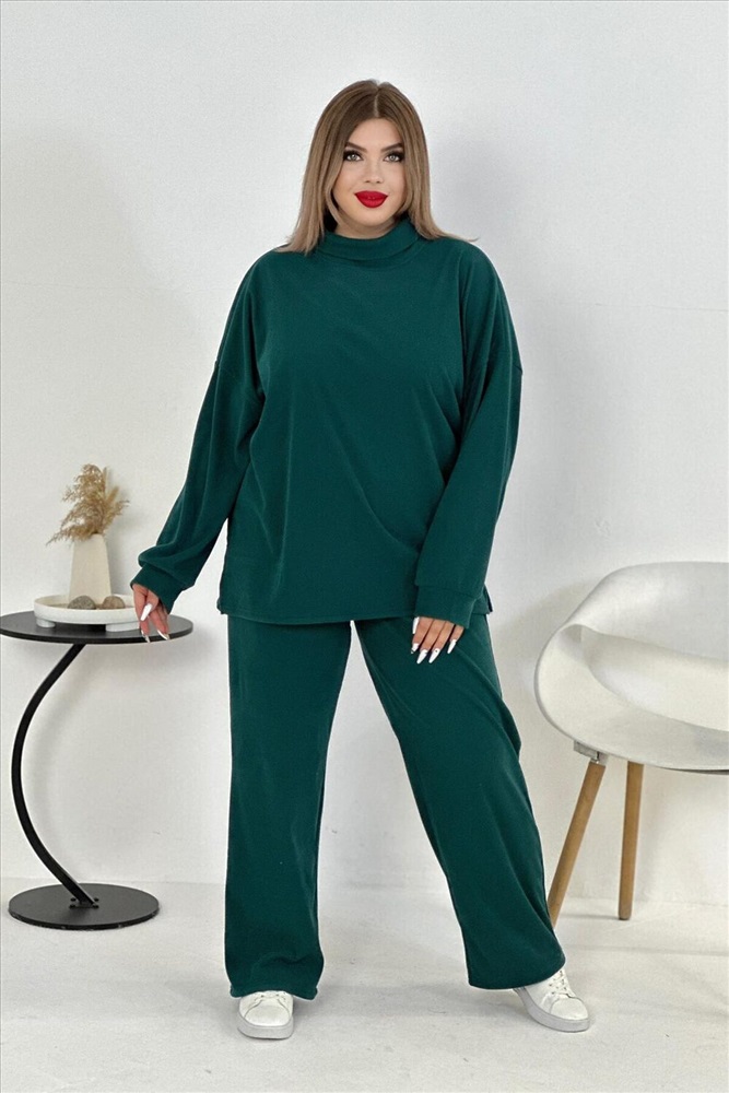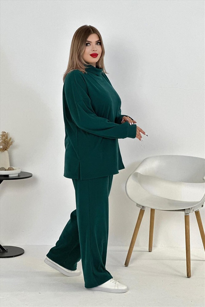 Женский костюм - двойка, выполнен из утепленной, мягкой, рельефной ткани. Верх - кофта, достаточно свободного кроя, рукав спущенный на манжете, горловина высокая, также можно носить раздельно от штанов, хорошо будет сочетаться с джинсами или с классическими брюками. Низ - свободные штаны палаццо, пояс на резинке, по бокам карманы. Костюм прекрасно подойдет для прогулок и работы, хорошо в прохладную погоду с жилеткой или пальто, идеально для вашего гардероба.
