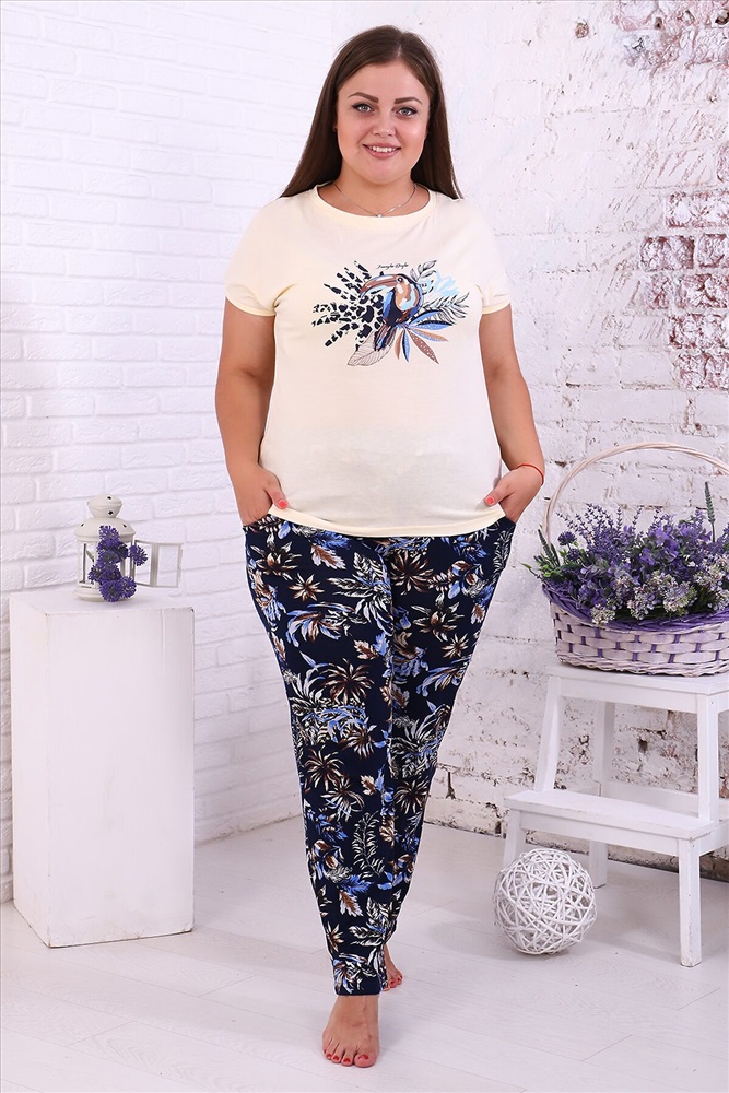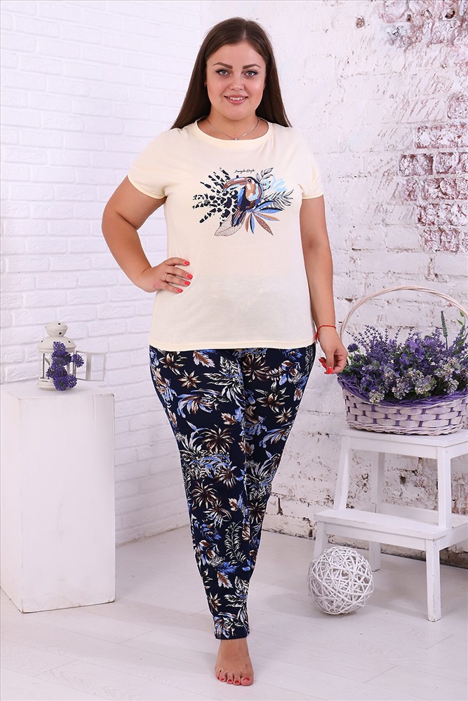 Страна производства: Россия Костюм женский и футболкой и брюками из натурального 100% хлопка, удобная и мягкая к телу ткань. Футболка со спущенным рукавом и стильным принтом. Комплект можно использовать как повседневную одежду, так и для прогулок на воздухе. Модель имеет широкий размерный ряд, может порадовать ваших родных и близких.
